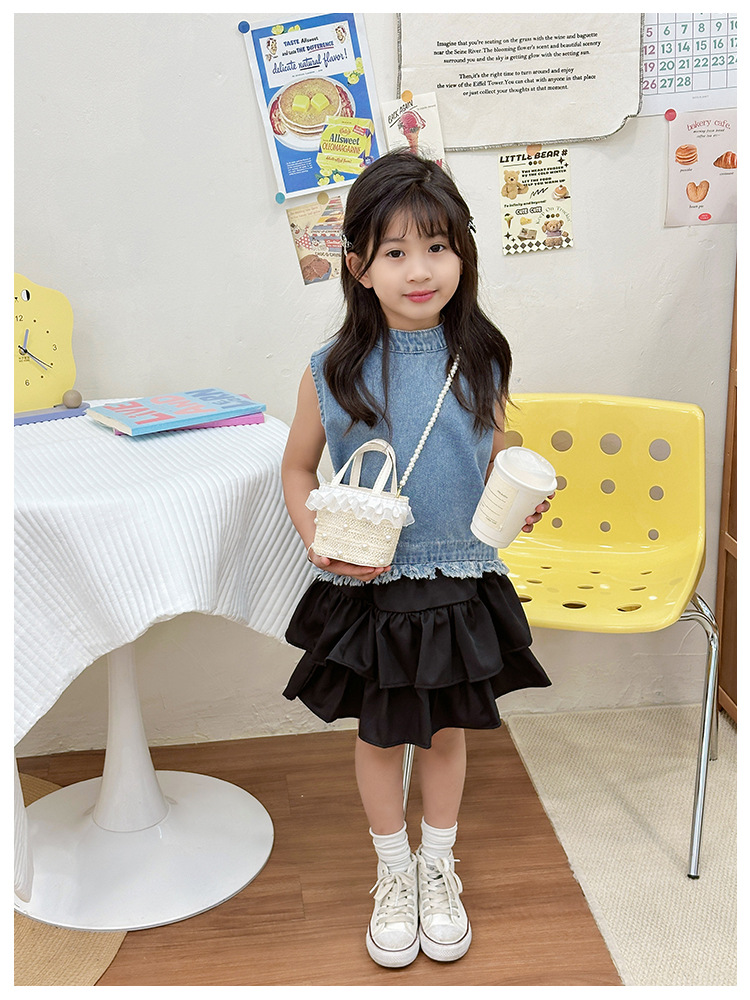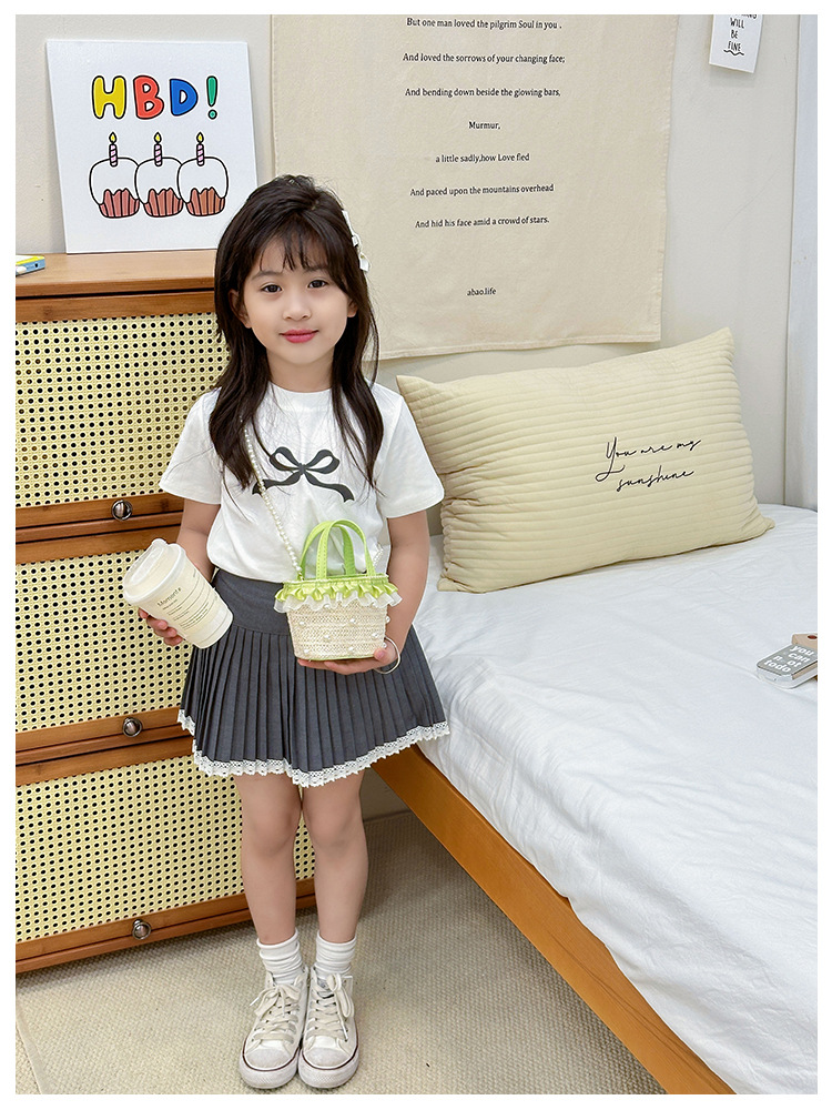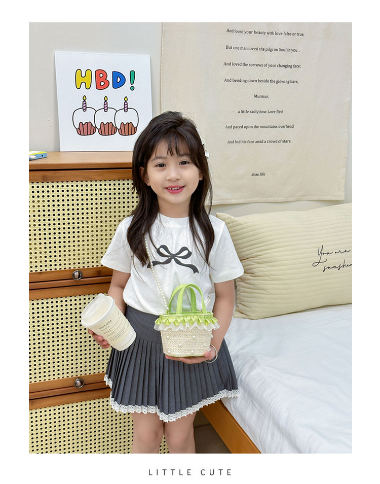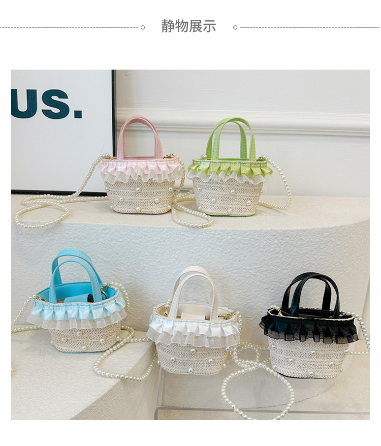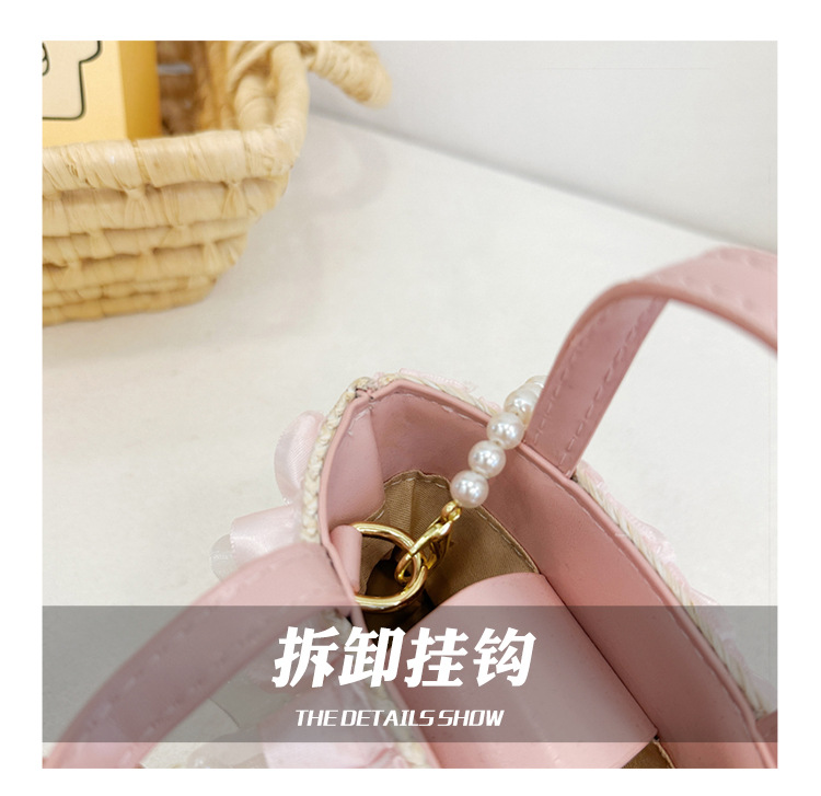 미니 콘트라스트 컬러 짠 가방 소녀의 서양식 어깨 크로스 바디 어린이 가방 해변 휴가 밀짚 바구니 가방스토어 가기