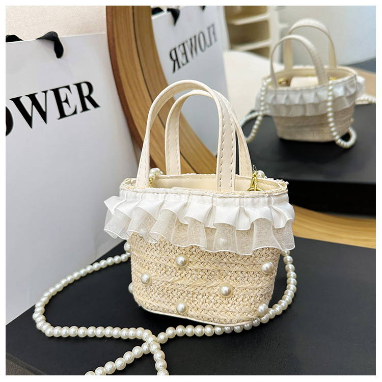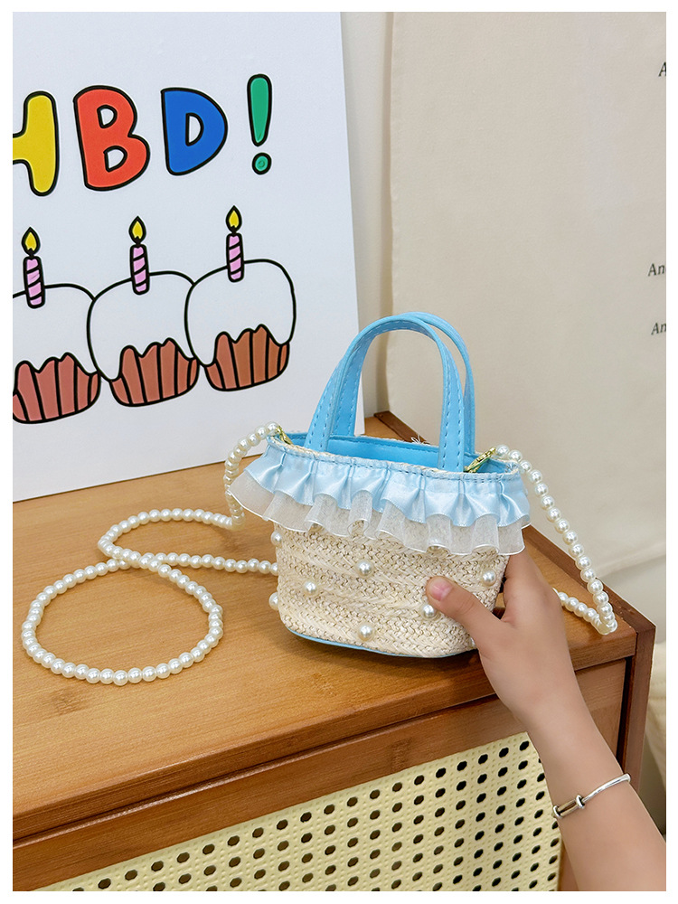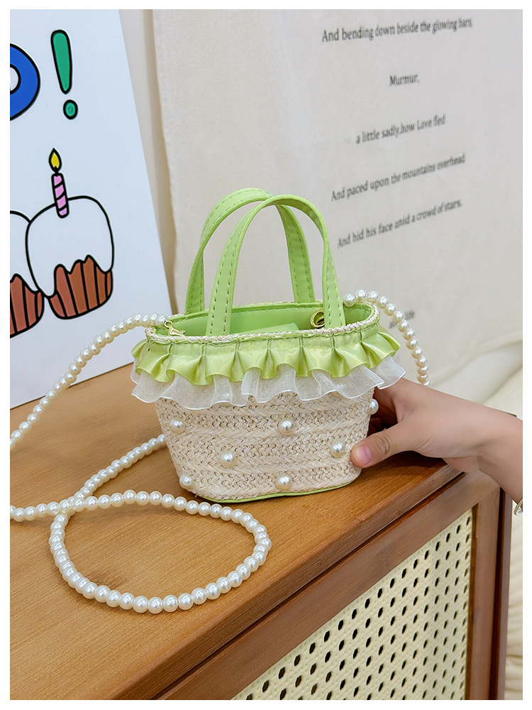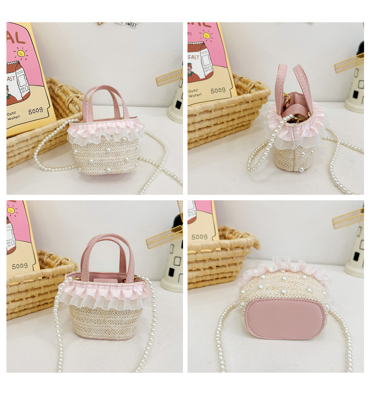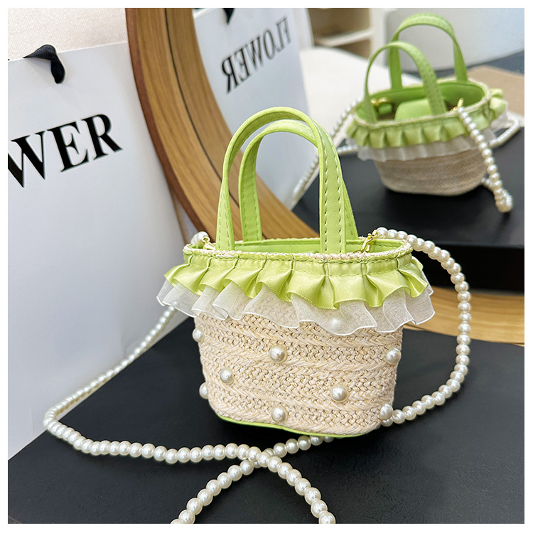 미니 콘트라스트 컬러 짠 가방 소녀의 서양식 어깨 크로스 바디 어린이 가방 해변 휴가 밀짚 바구니 가방