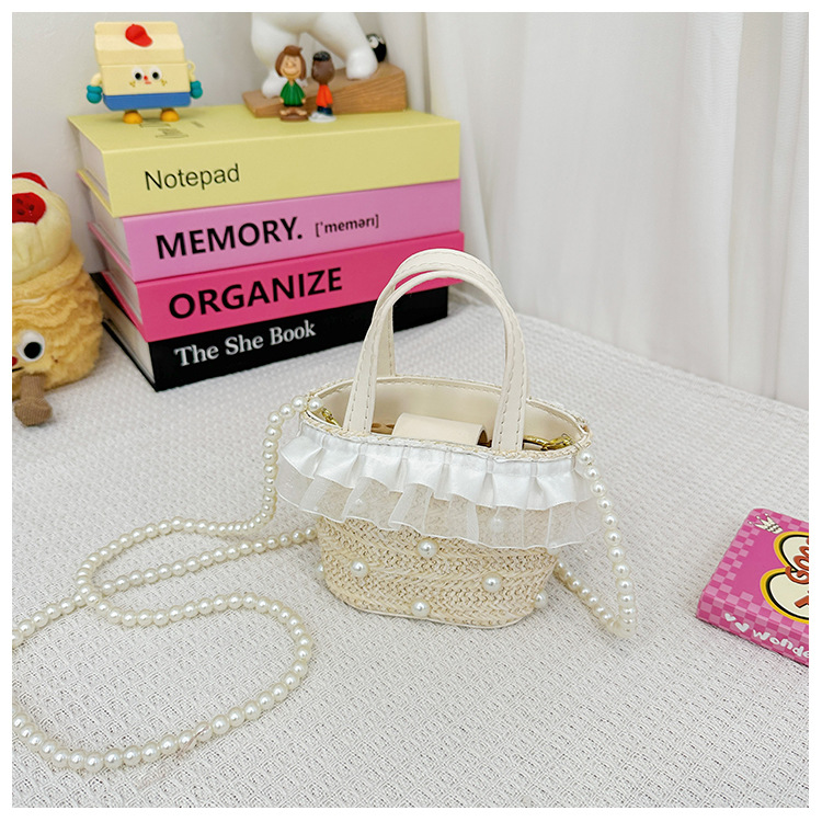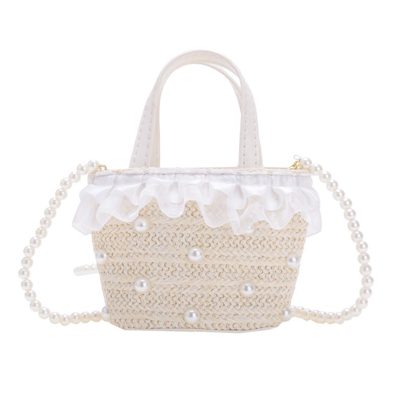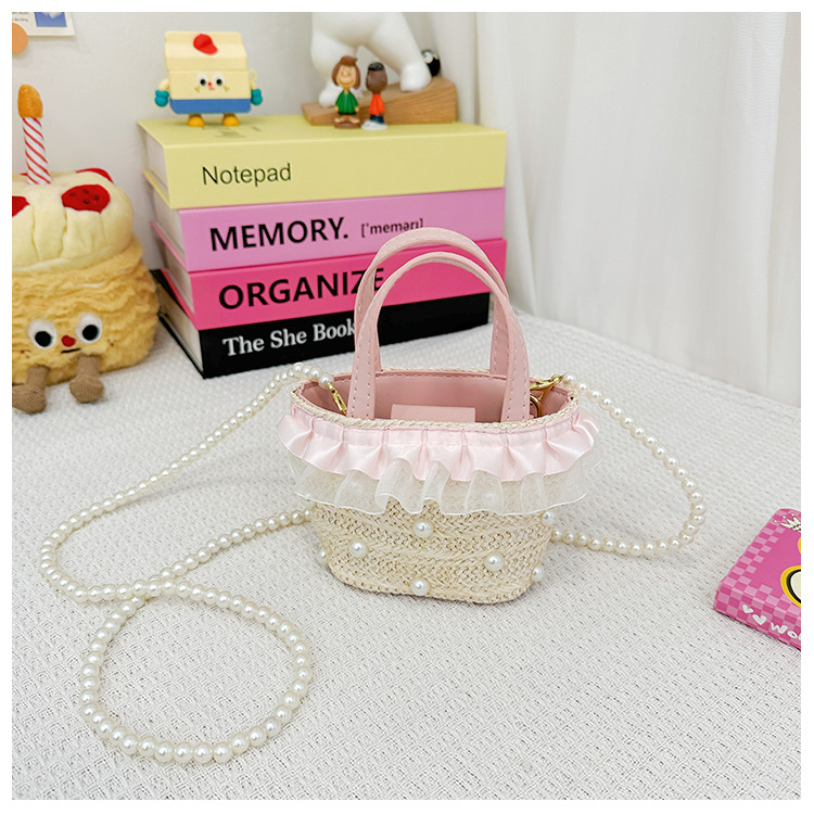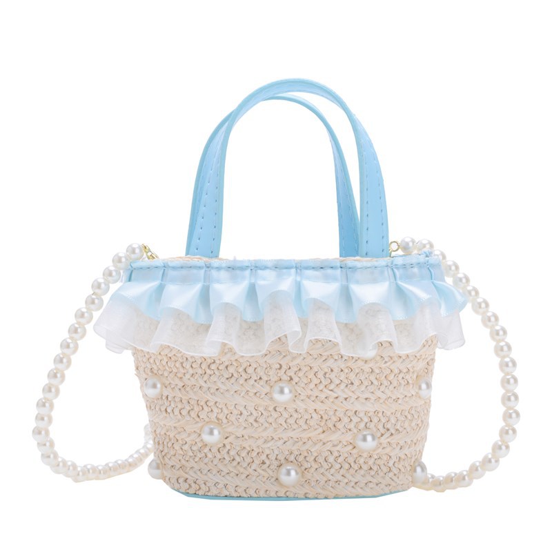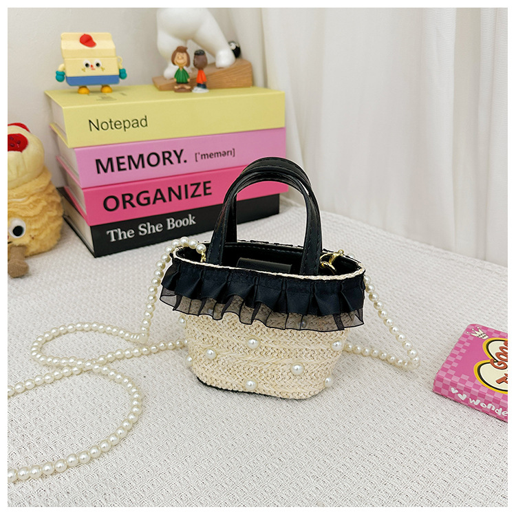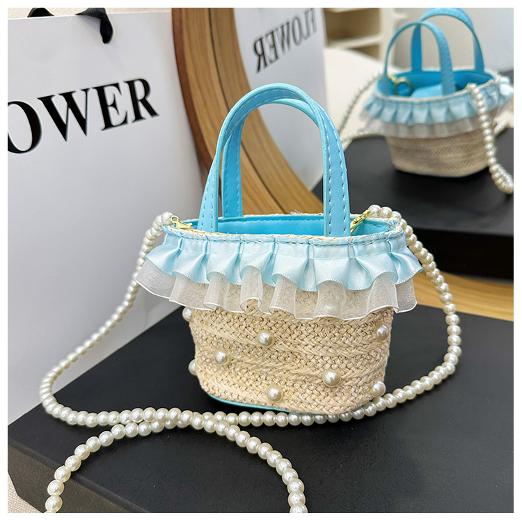 미니 콘트라스트 컬러 짠 가방 소녀의 서양식 어깨 크로스 바디 어린이 가방 해변 휴가 밀짚 바구니 가방