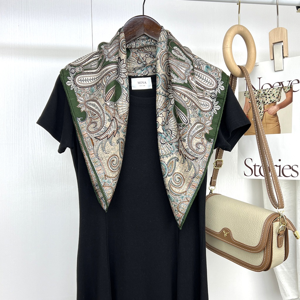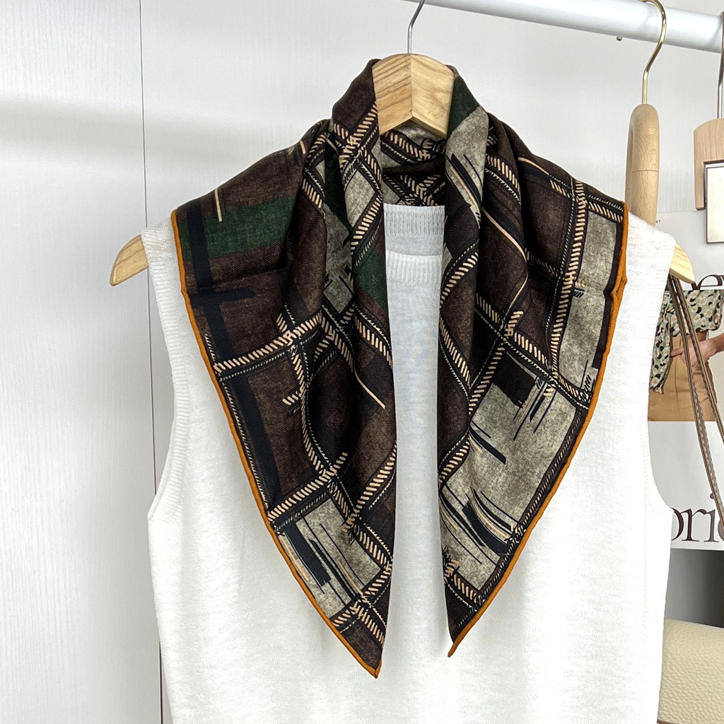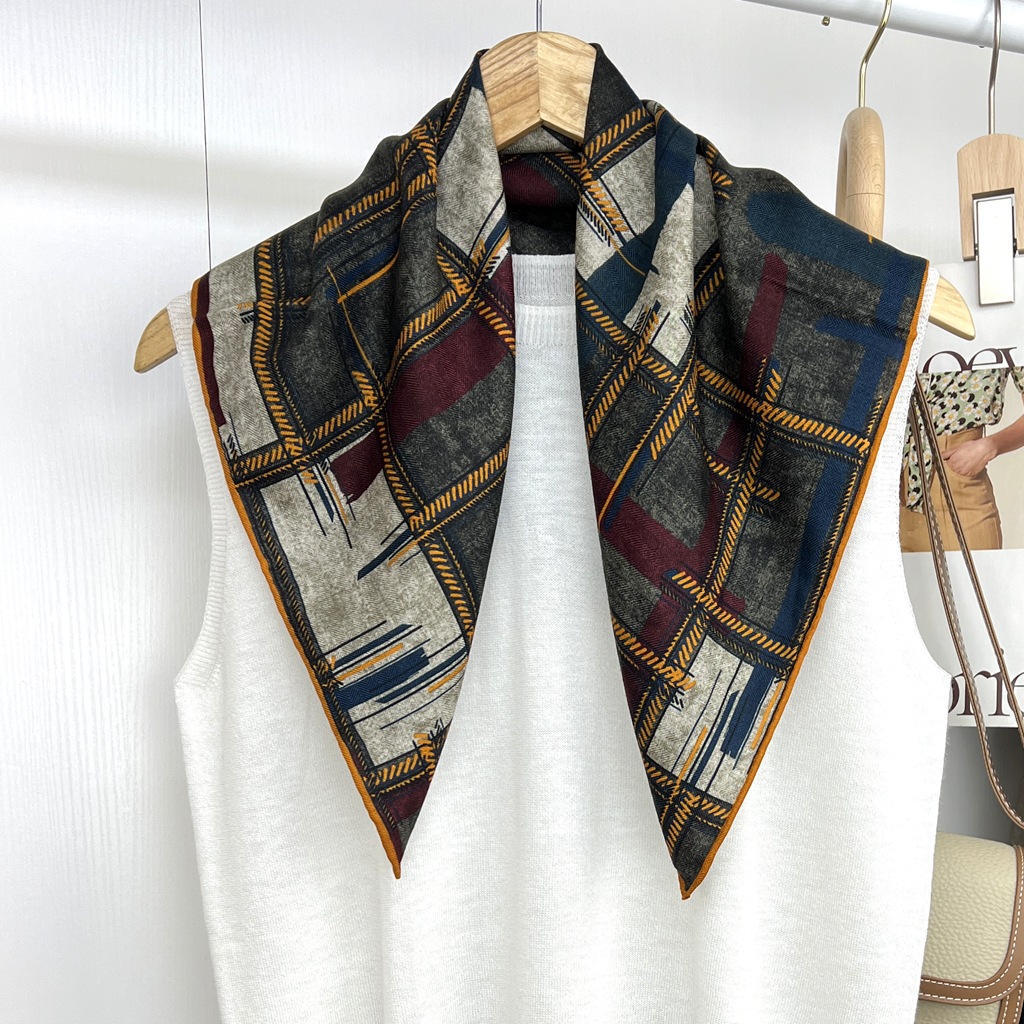 양면 다른 색상의 실크 울 스카프 숙녀 고급 실크 울 70cm 사각형 스카프 가을과 겨울 목도리 올매치 얇은스토어 가기