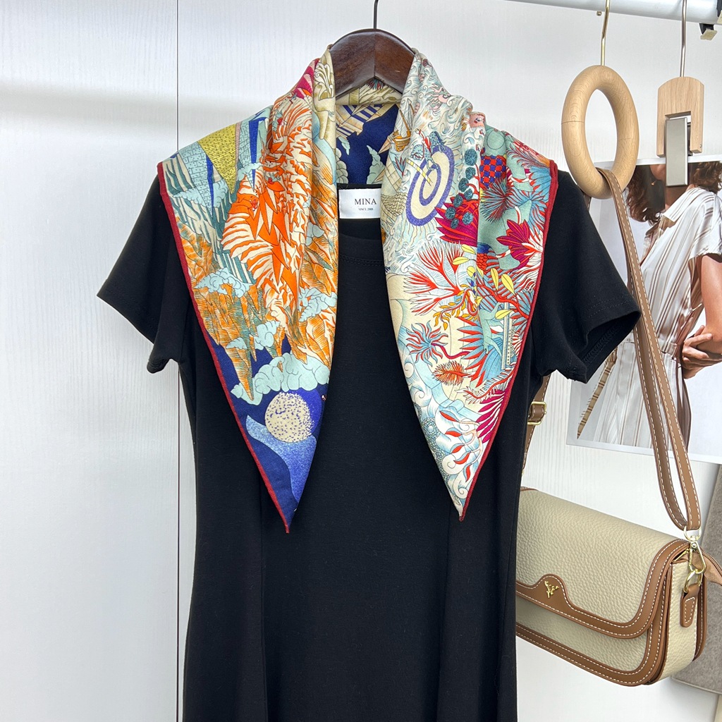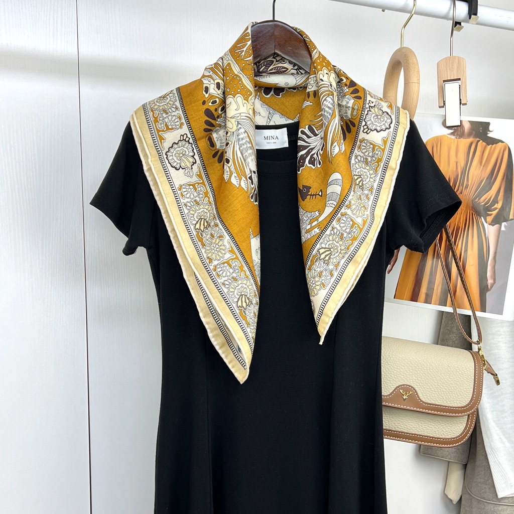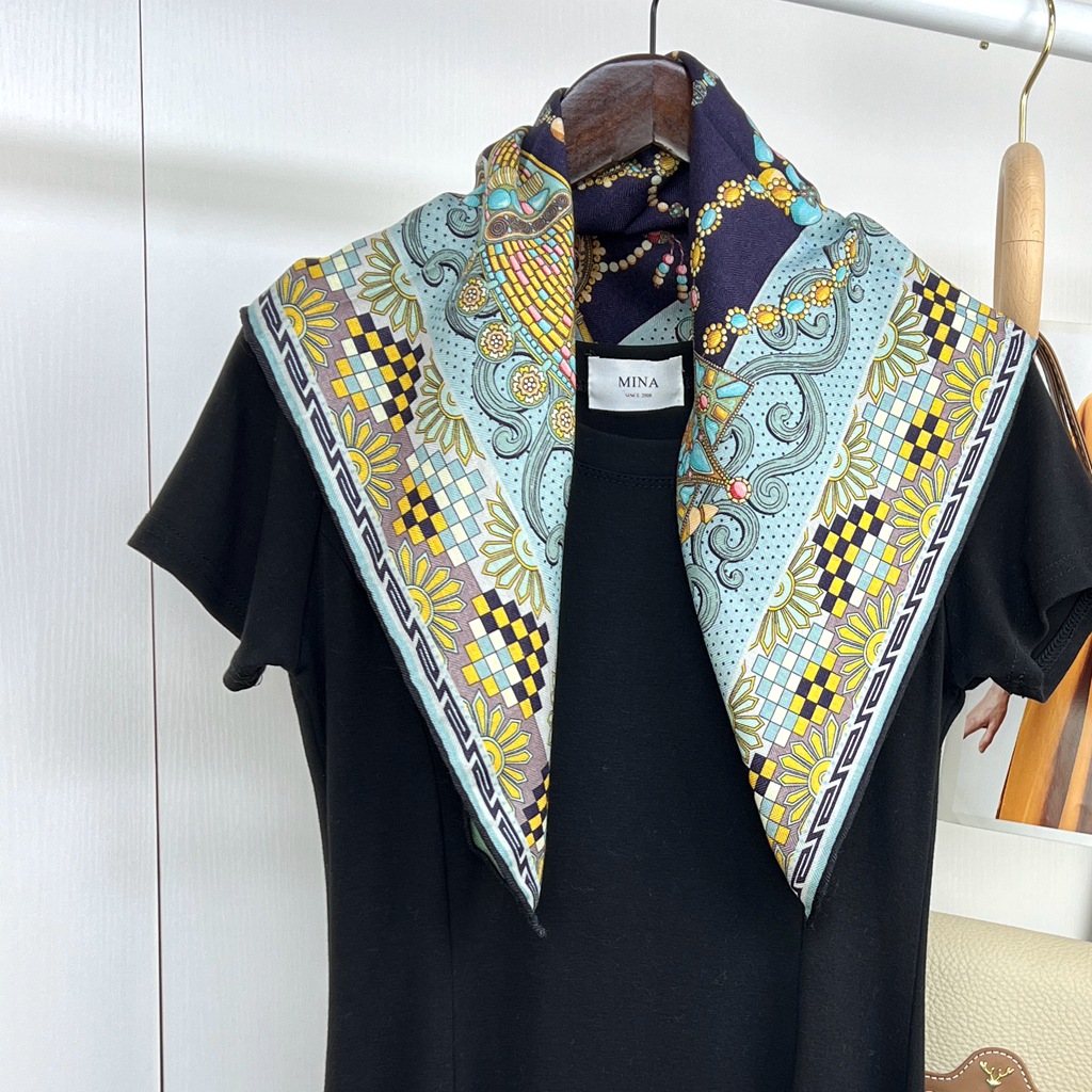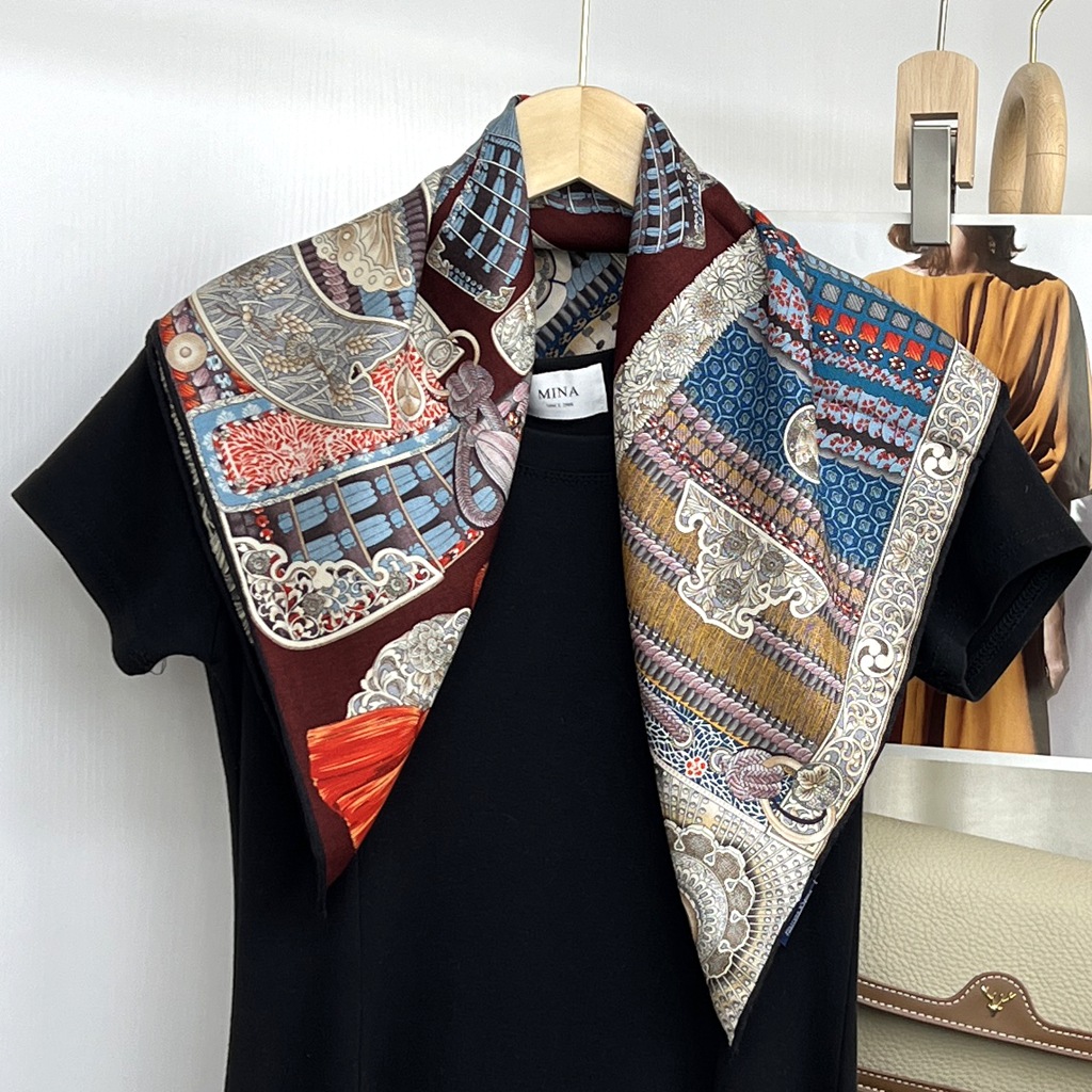 양면 다른 색상의 실크 울 스카프 숙녀 고급 실크 울 70cm 사각형 스카프 가을과 겨울 목도리 올매치 얇은스토어 가기
