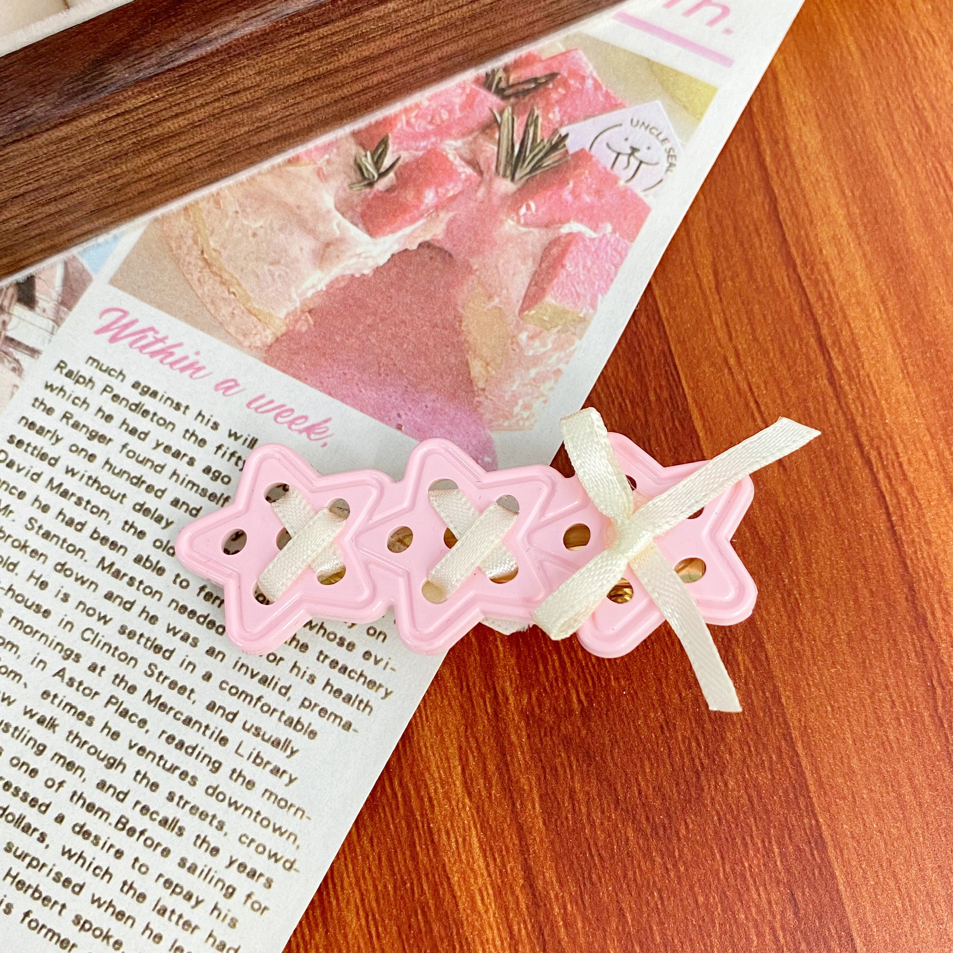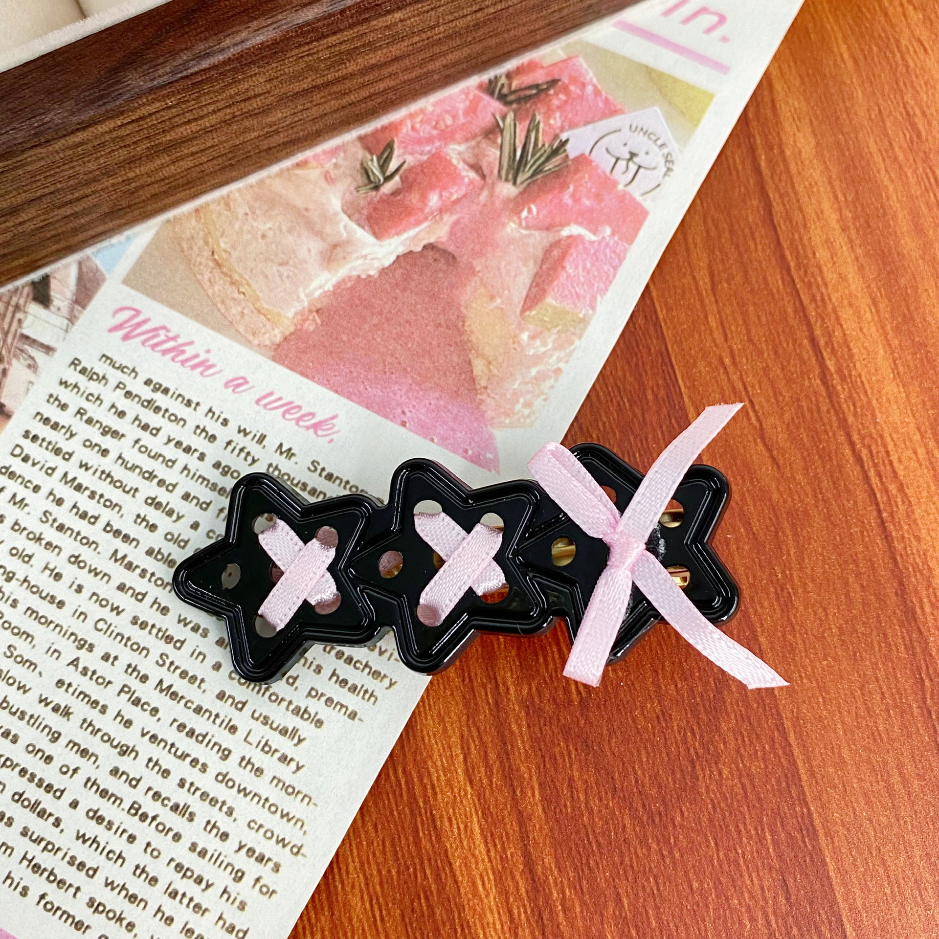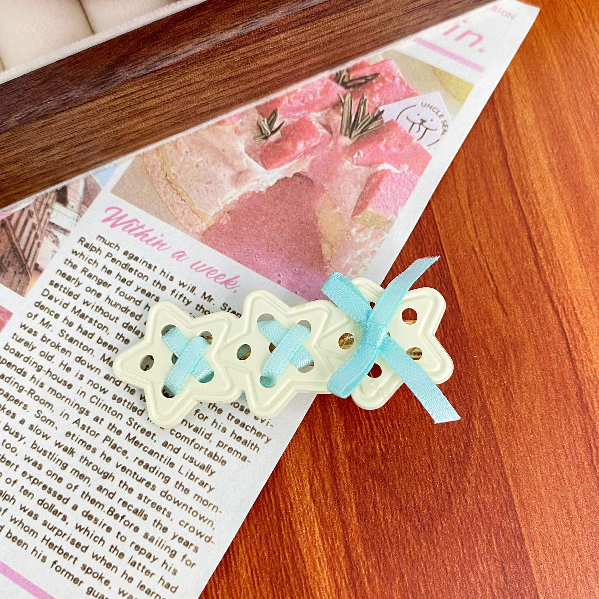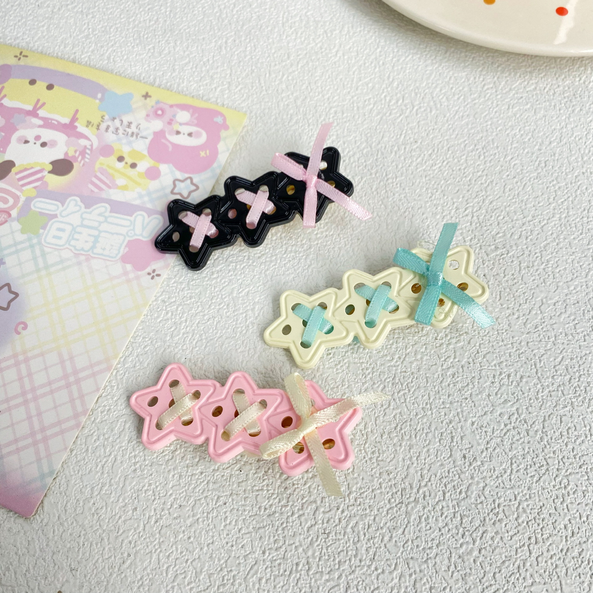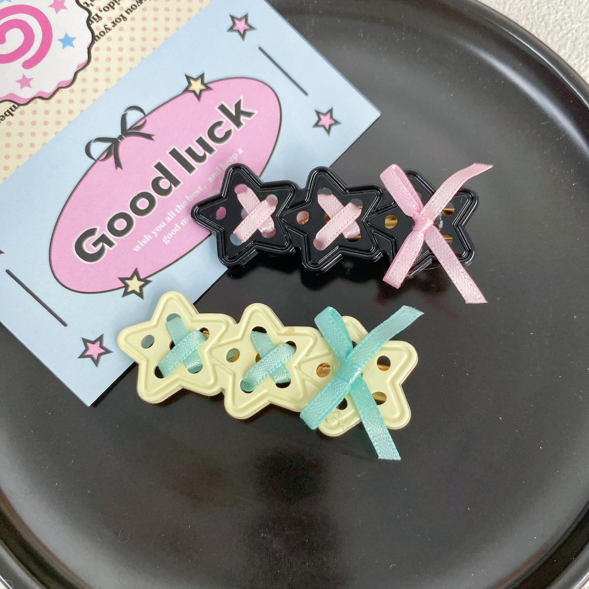 달콤한 리본 다섯개 별 헤어핀 소녀의 마음 일본식 높은 가치 올매치 사이드 덕빌 클립 3 스타 헤어 액세서리스토어 가기