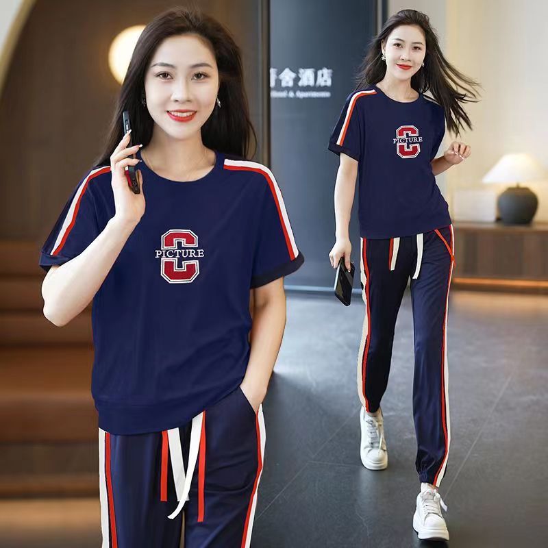 인터넷 연예인 플러스 사이즈 슈퍼 파이어 스포츠웨어 세트 여성의 2024 여름 하이 엔드 루즈 슬리밍 러닝 모닝 런 투피스 세트스토어 가기