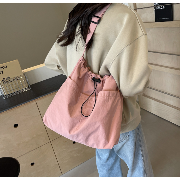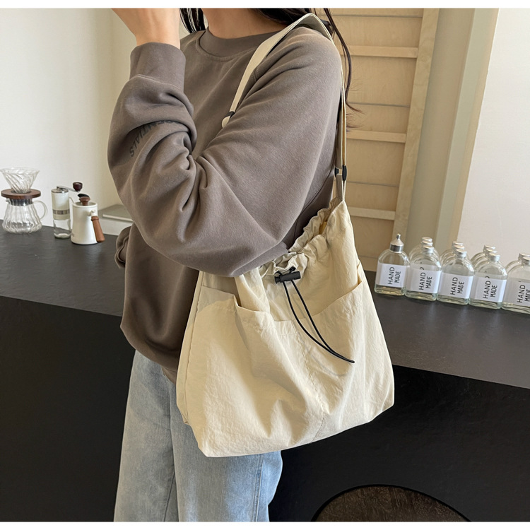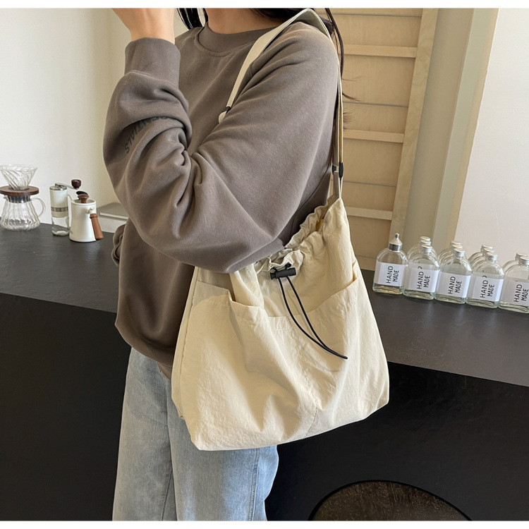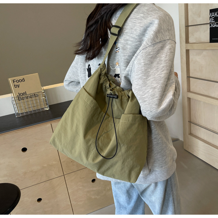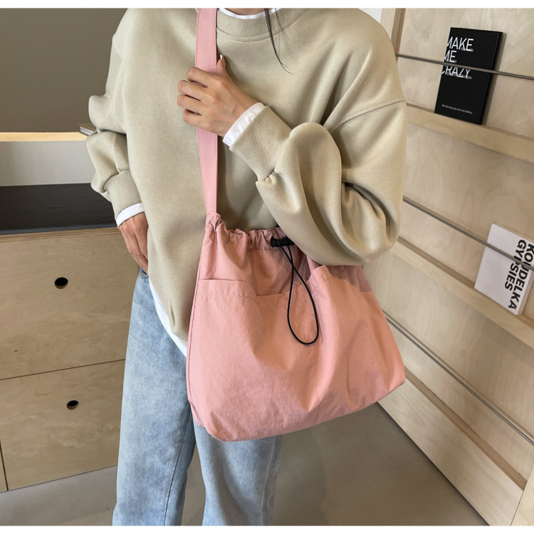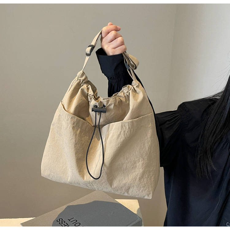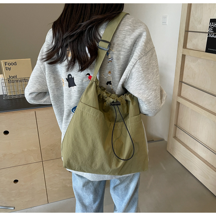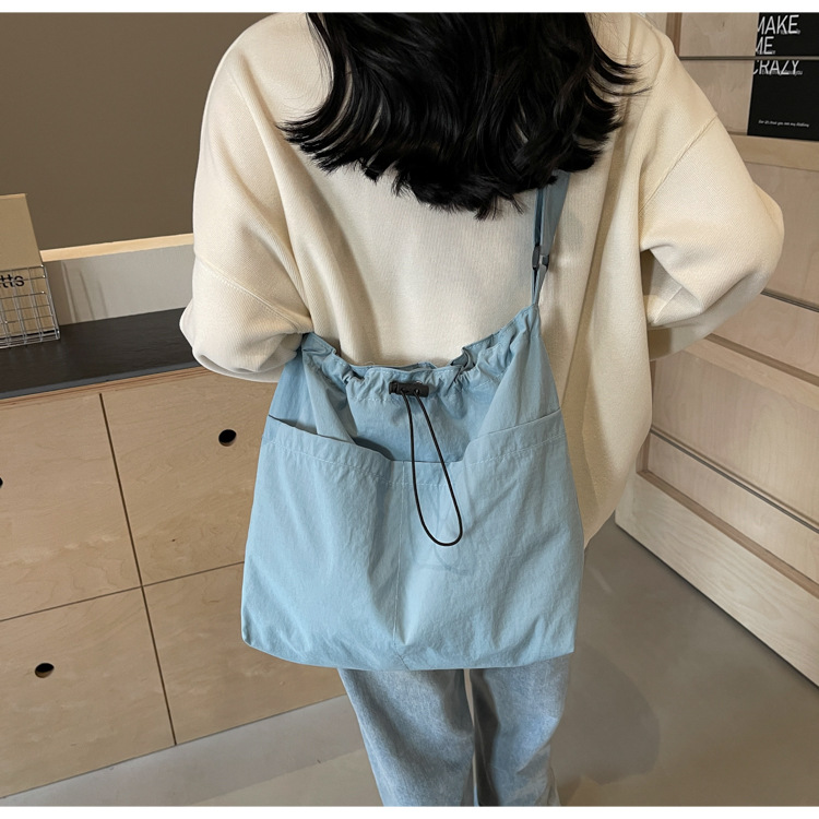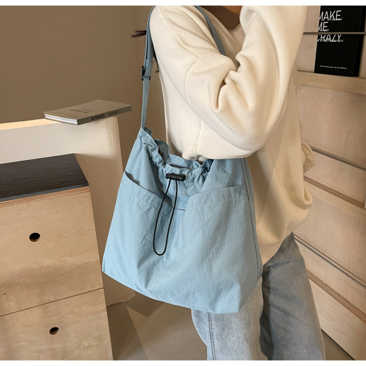 인즈 한국 스타일 유행 버킷 숄더 백 2024 새로운 스타일 독특한 작업복 스타일 버킷 백 올 매치 슬라이딩 스트랩 크로스 바디 백
