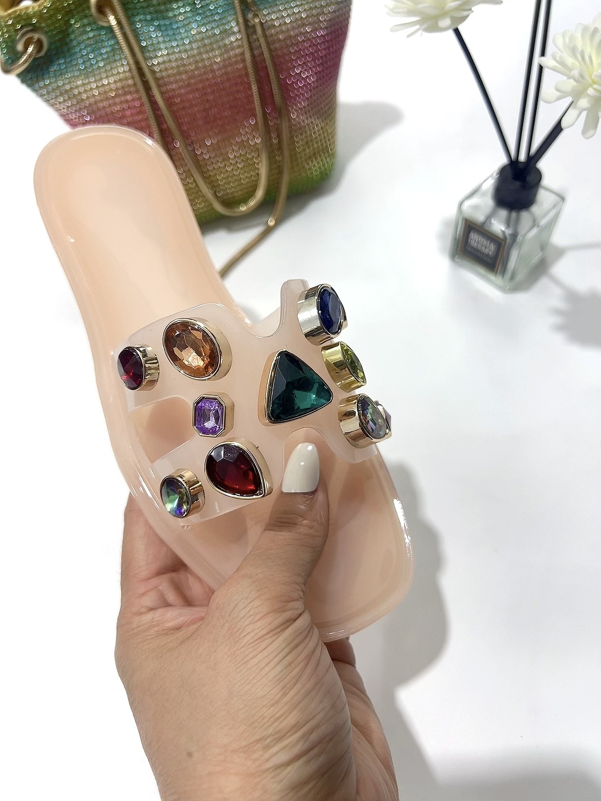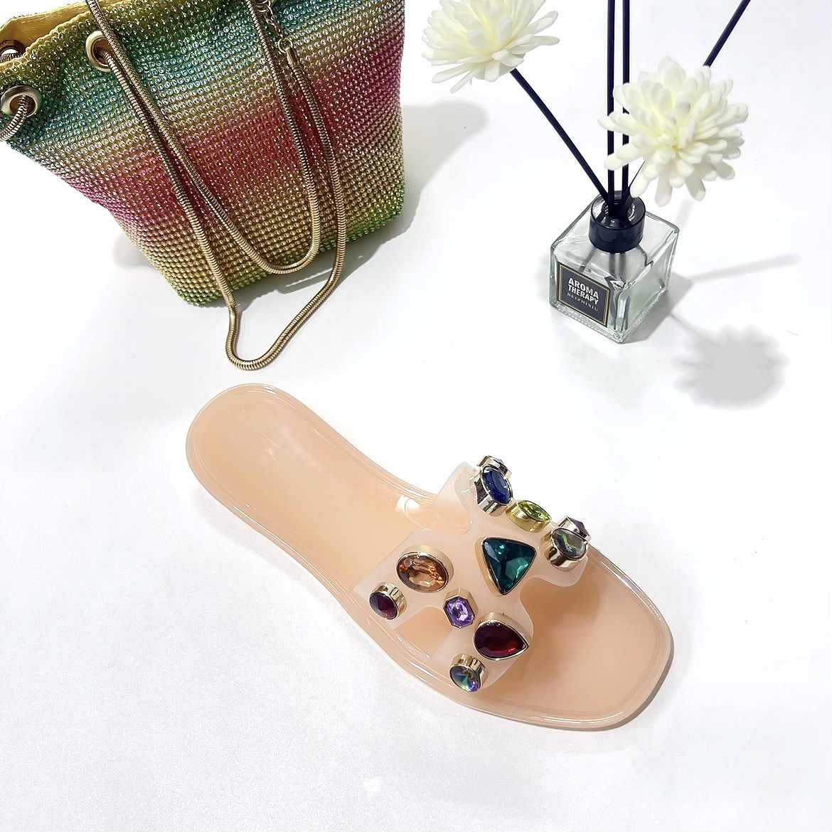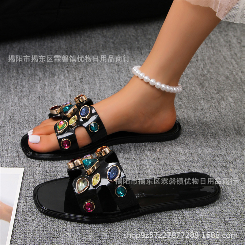 여름 새로운 컬러 대형 다이아몬드 슬리퍼 여성용 AliExpress 아마존 젤리 신발 크리스탈 슬리퍼 플랫 슬리퍼스토어 가기