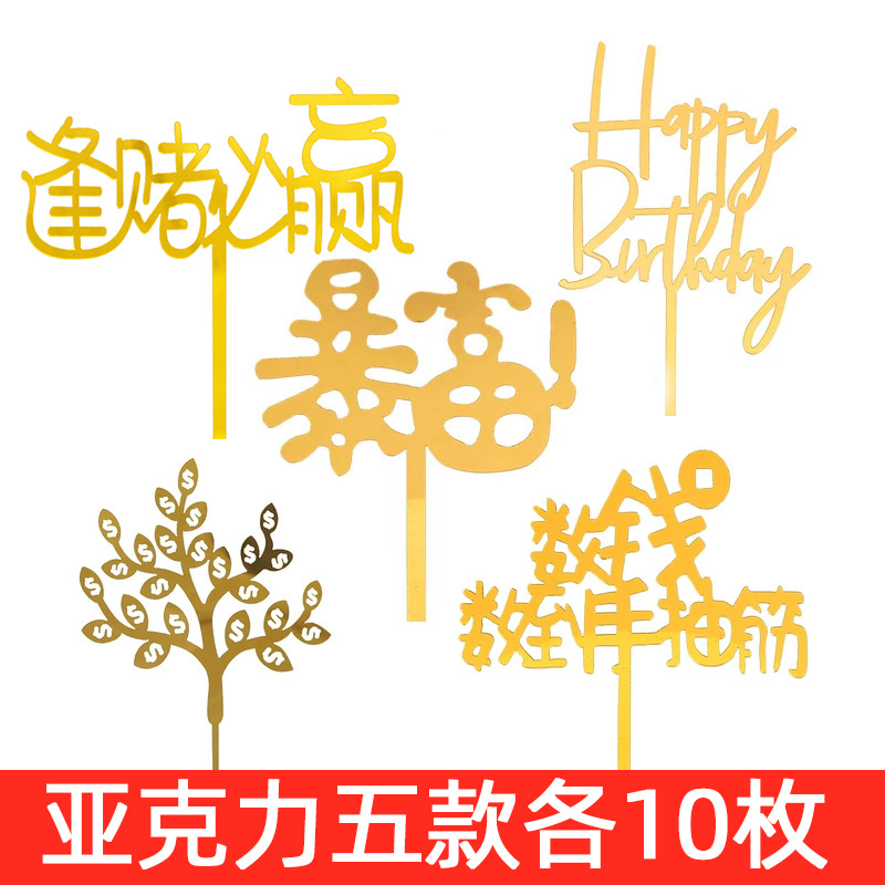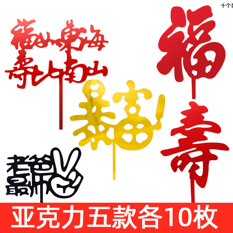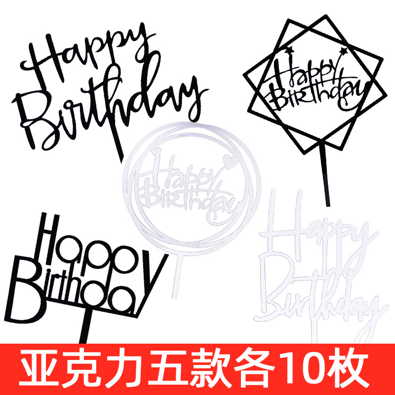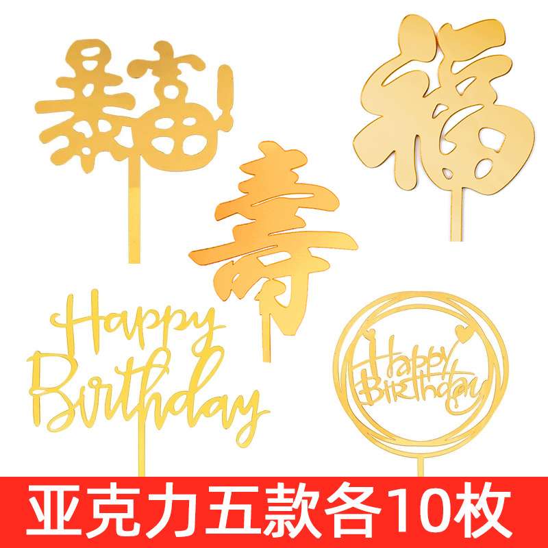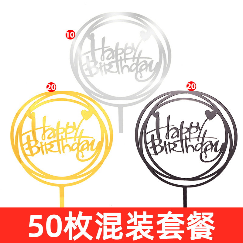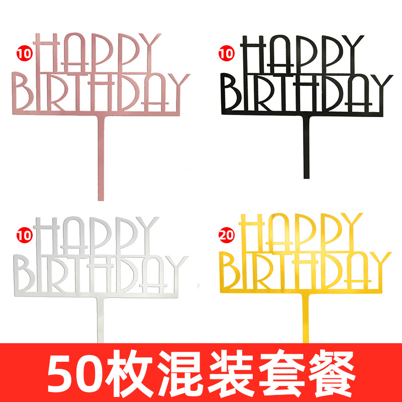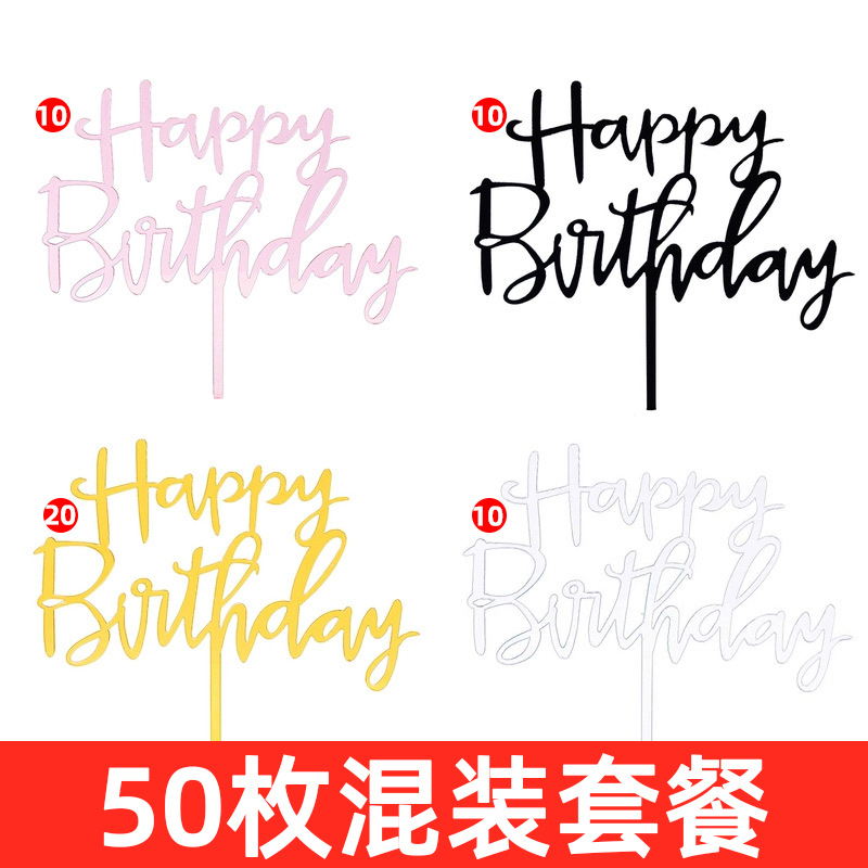 생일 케이크 플러그인 50 아크릴 카드 생일 케이크 장식 그물 빨간색 파티 디저트 테이블 플래그스토어 가기