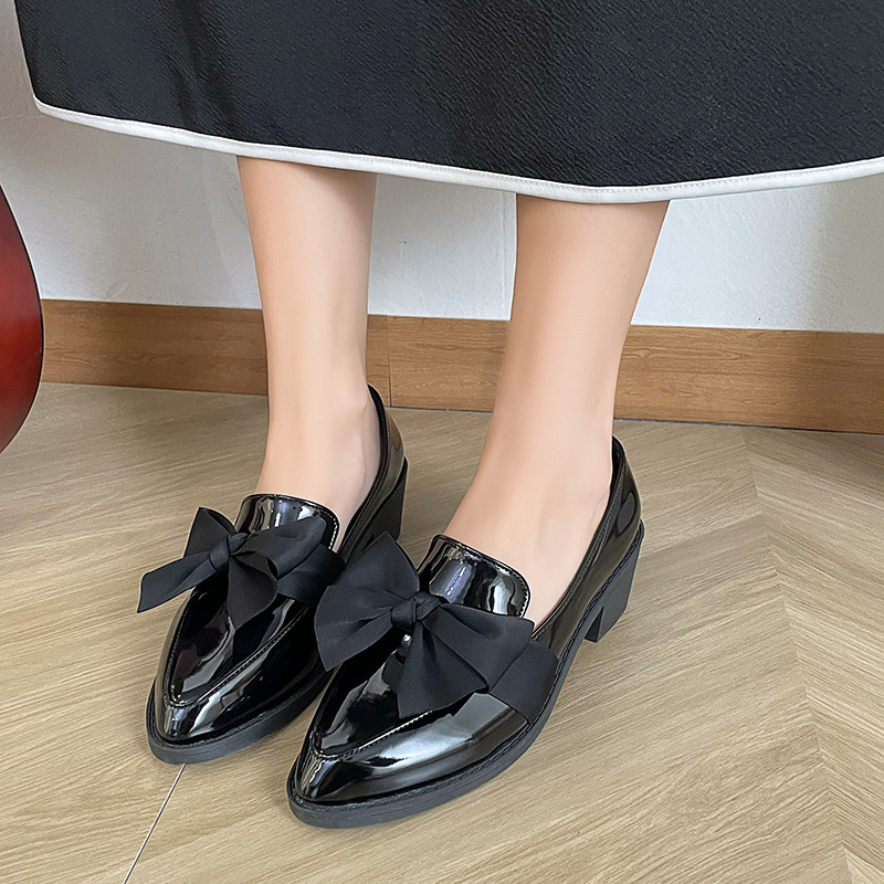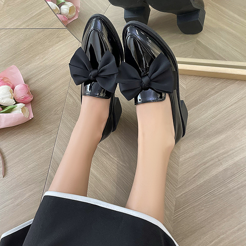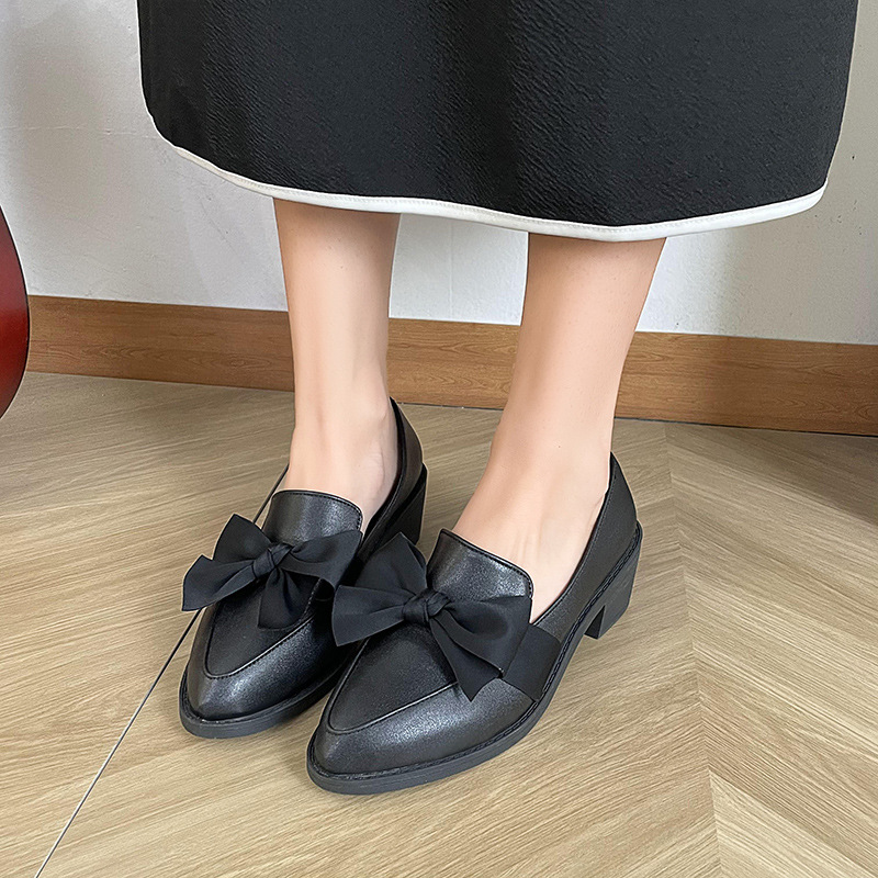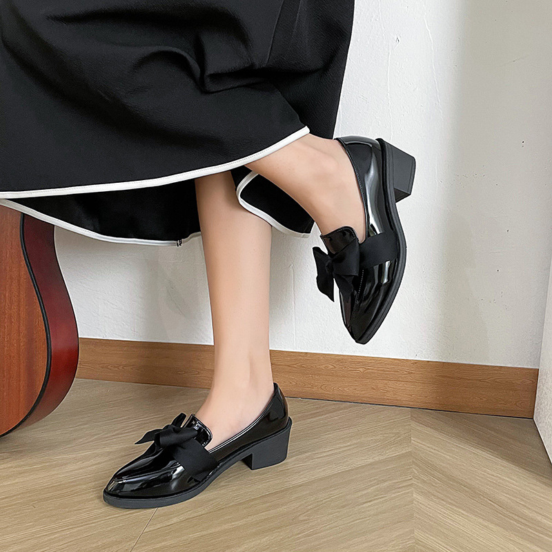 얕은 작은 가죽 신발 여성의 2024 봄과 가을 새로운 영국 스타일 부드러운 가죽 슬립-유행 청키 뒤꿈치 활 신발 트렌디스토어 가기