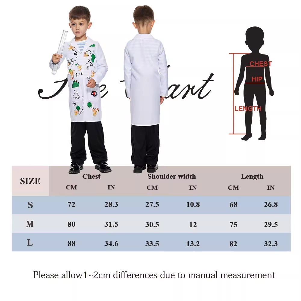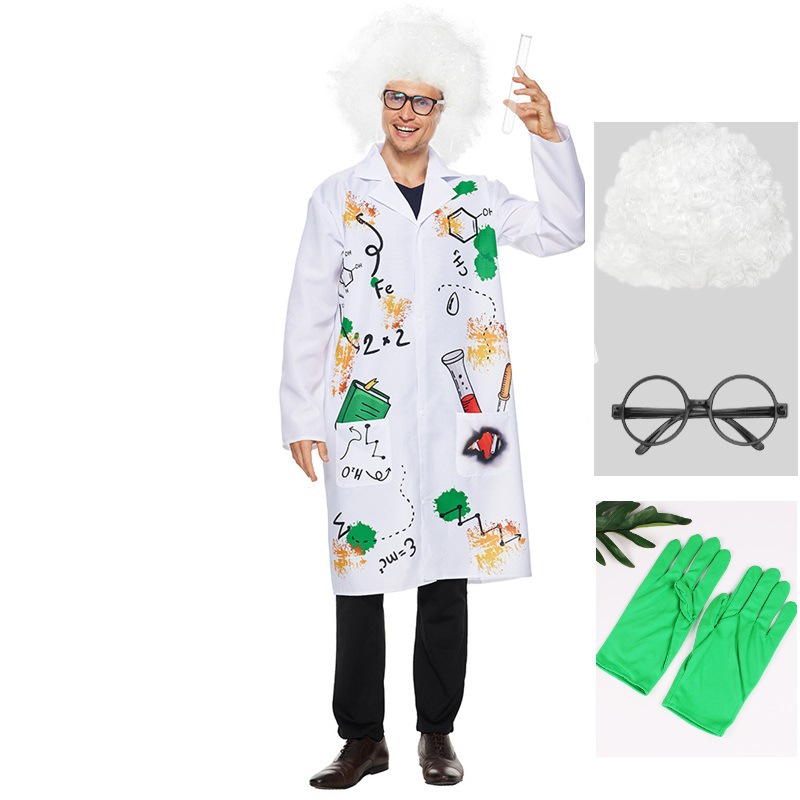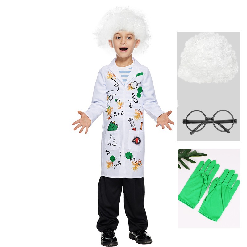 • 어린이 과학자 단일 옷 흰색 가발 안경 프레임