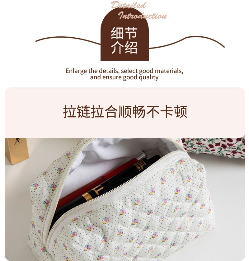 새로운 꽃무늬 퀼팅 화장품 가방 여행용 휴대용 세면도구 가방 여성용 대용량 립스틱 화장품 수납 가방