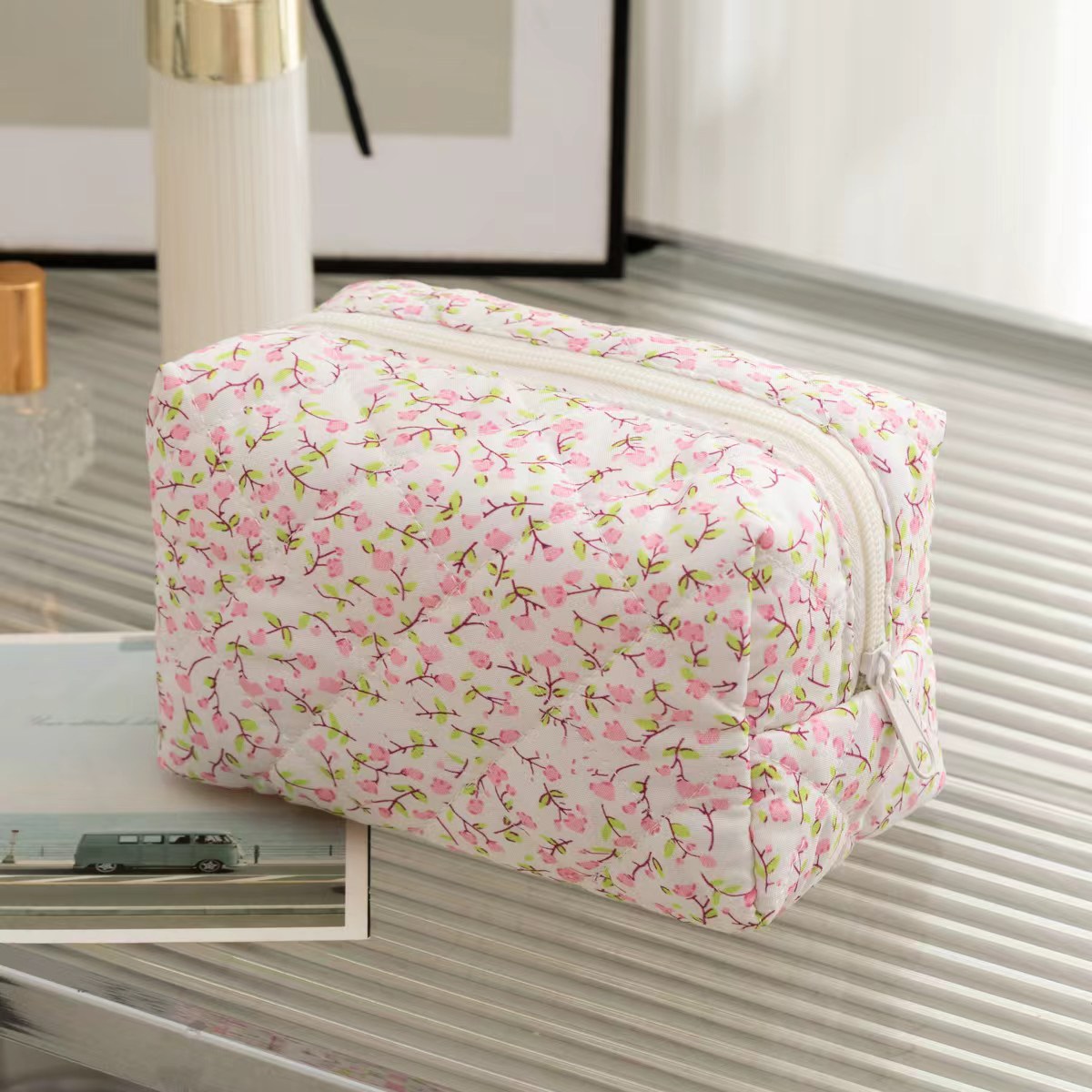 새로운 꽃무늬 퀼팅 화장품 가방 여행용 휴대용 세면도구 가방 여성용 대용량 립스틱 화장품 수납 가방스토어 가기