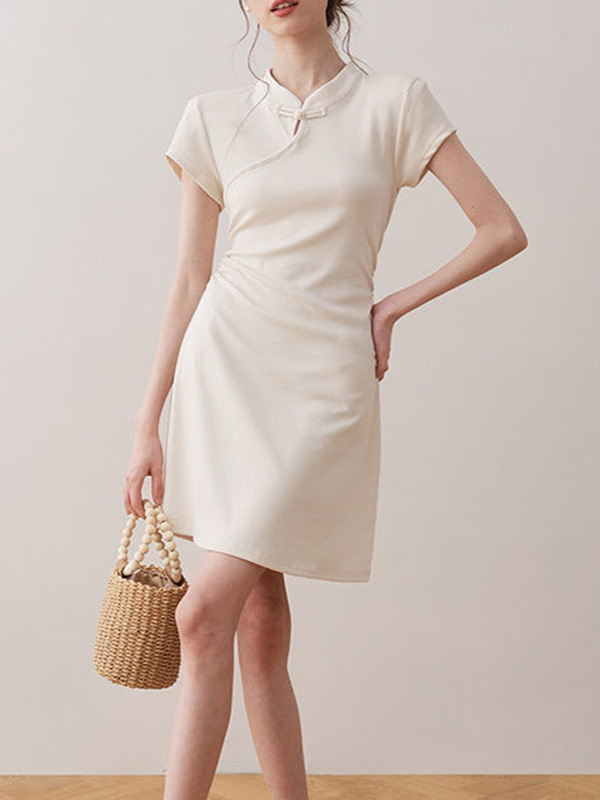 기질 국가 스타일 버클 티셔츠 원피스 2024 여름 새로운 중국 허리 슬리밍 스커트스토어 가기