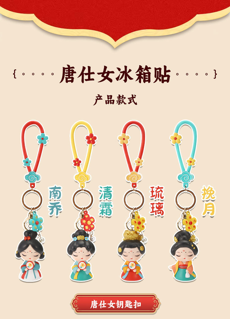 당나라 레이디 키 체인 매달려 체인 중국 액세서리 개인 선물 시안 관광 당나라 휴일 선물 부드러운 접착제 펜던트스토어 가기