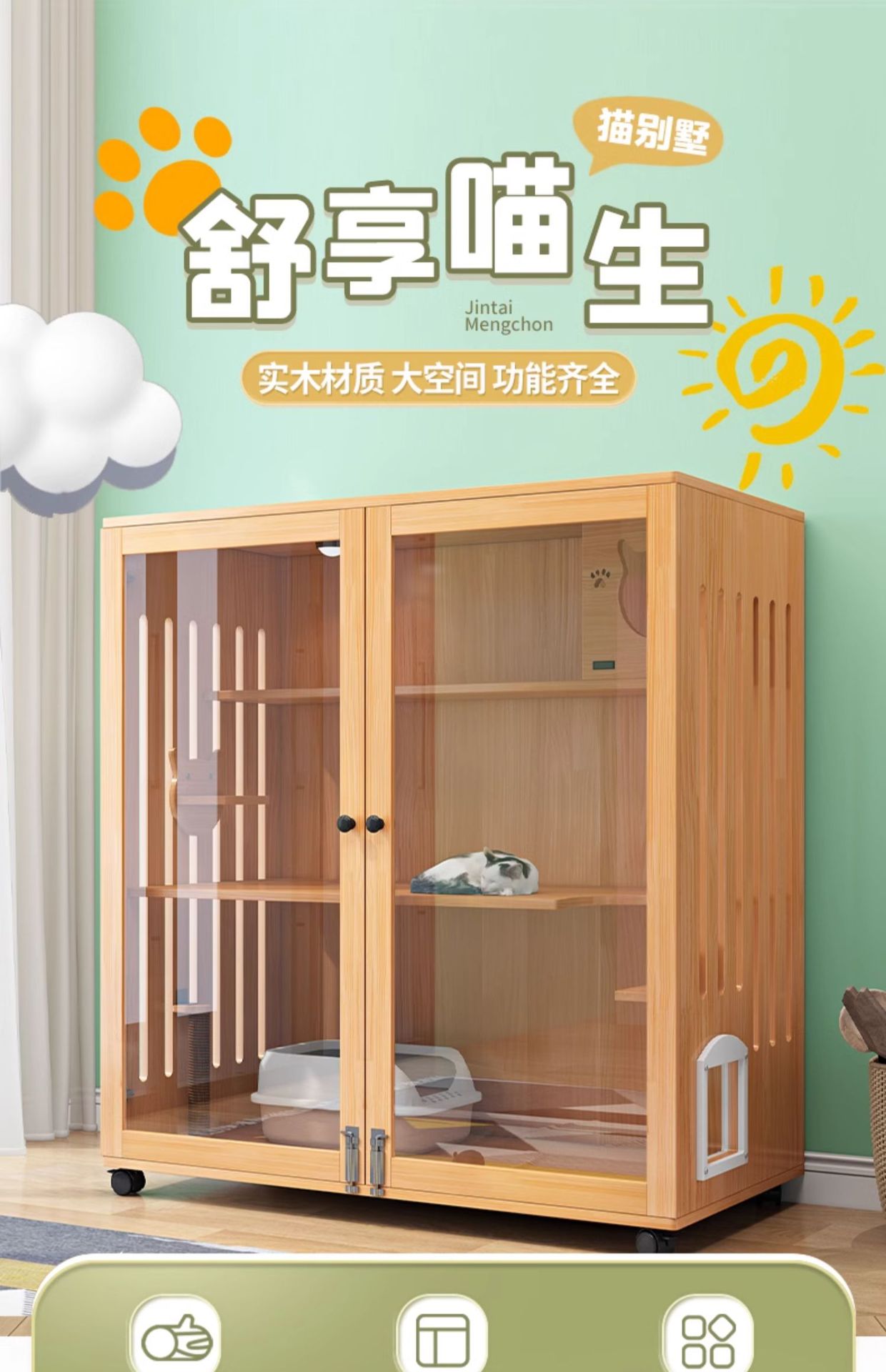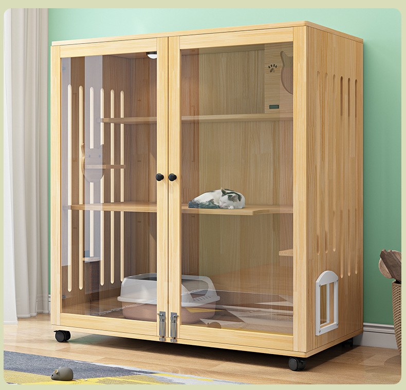 고양이 집 고양이 빌라 단단한 나무 가정 고급 고양이 집 파노라마 고양이 내각 둥지 등반 랙 통합 3 층 고양이 집 케이지스토어 가기