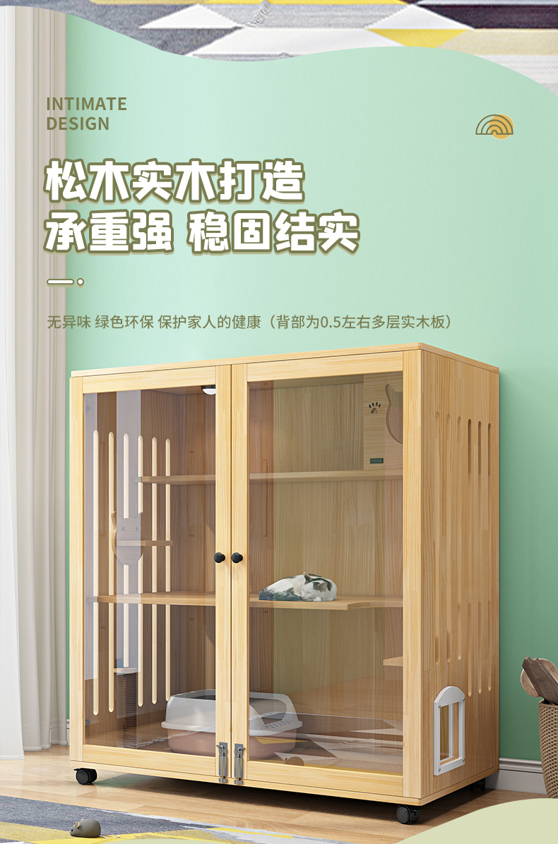 • 통나무 120*90*60 [3단유리모델] 옆문 + 고양이 긁는 기둥