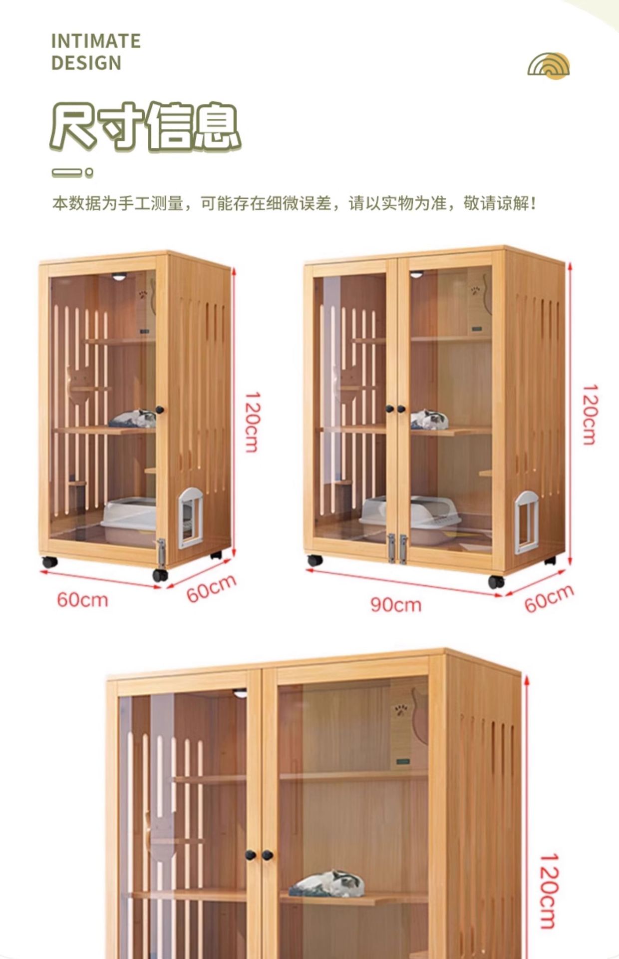 • 통나무 120*60*60 [3단 유리모델] 옆문 + 고양이 긁는 기둥