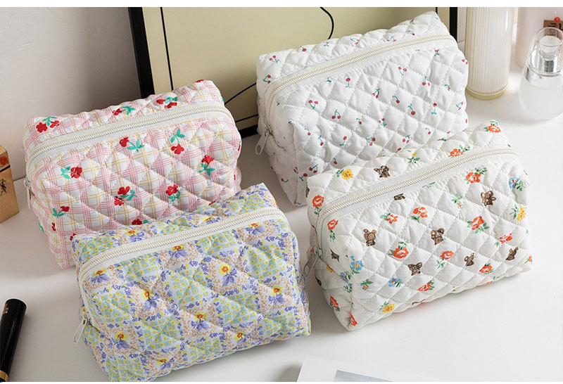 새로운 꽃 퀼트 립스틱 보관 가방 여성 화장품 보관 가방 헤드폰 데이터 케이블 메이크업 가방 지갑스토어 가기