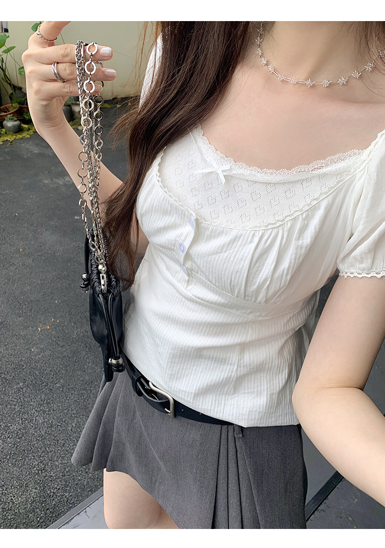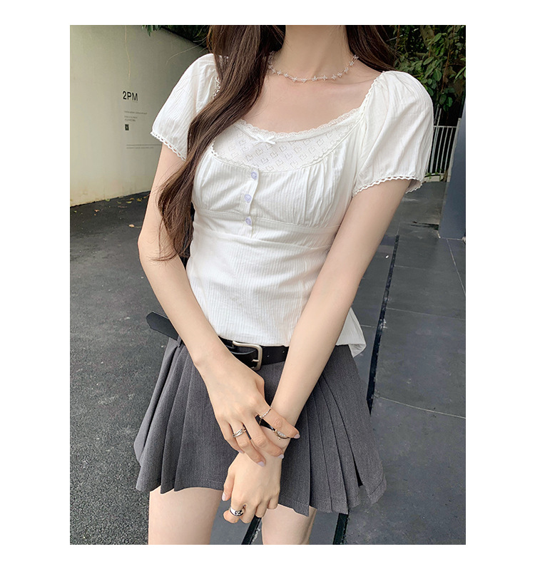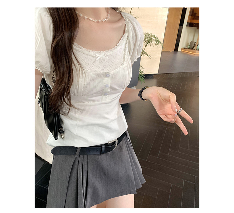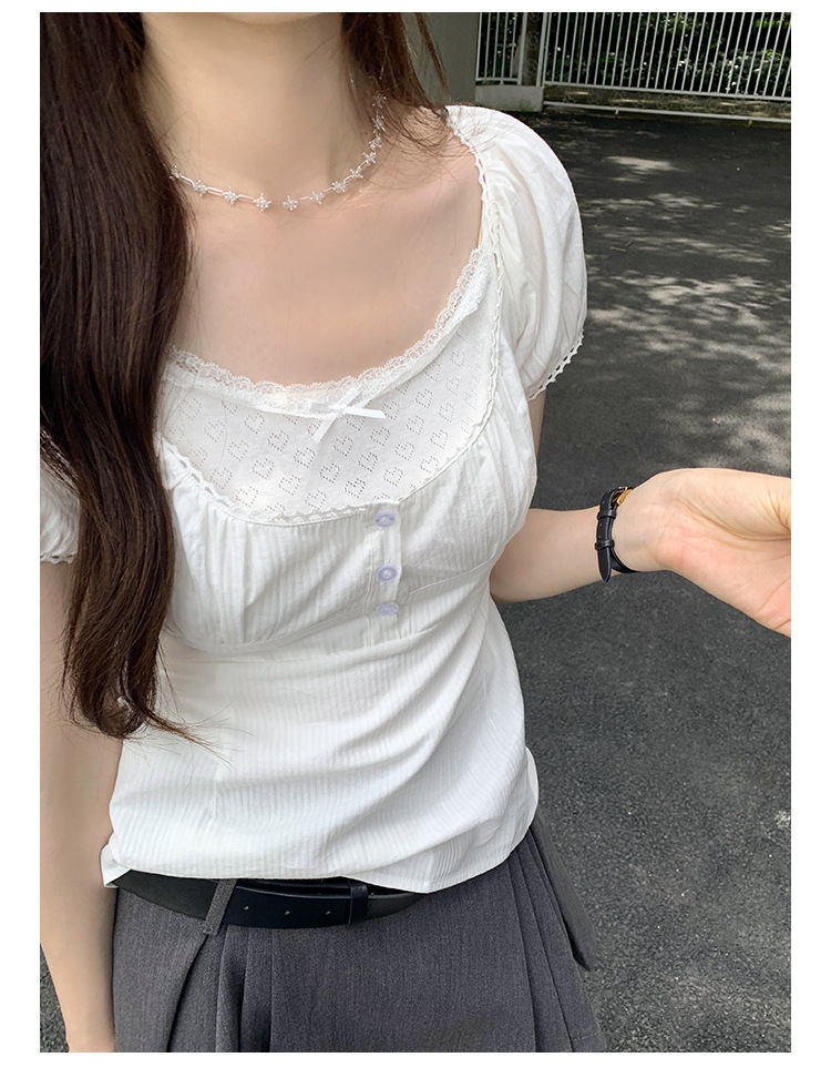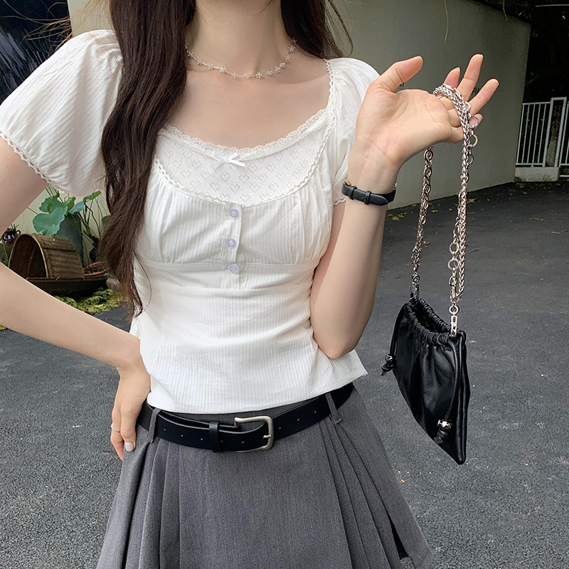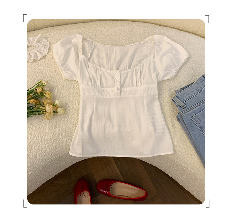 프랑스 달콤한 디자인 화이트 버블 반팔 셔츠 여성의 2024 여름 새로운 스타일 세련된 타이트 허리 우아한 탑스토어 가기