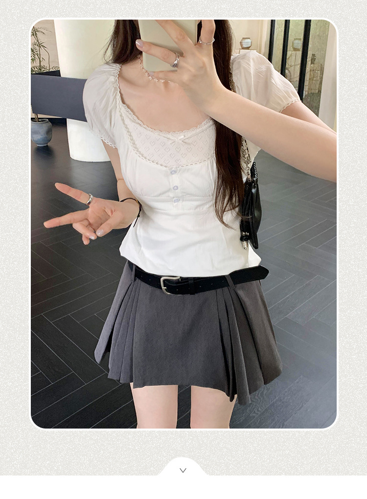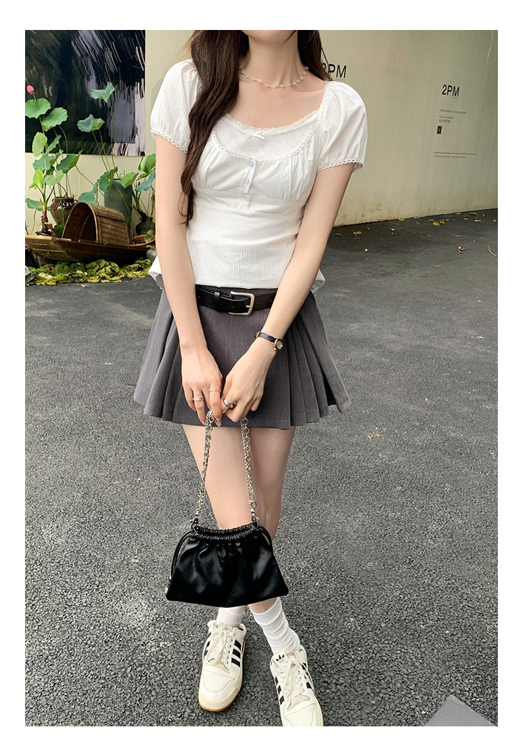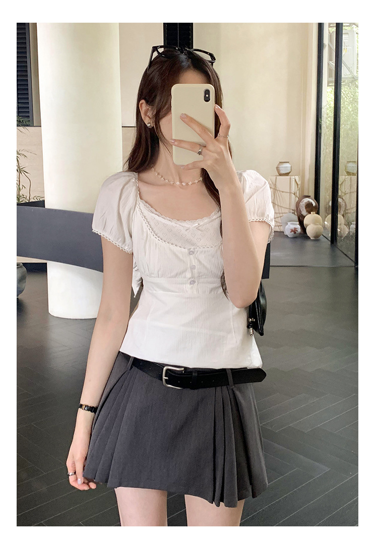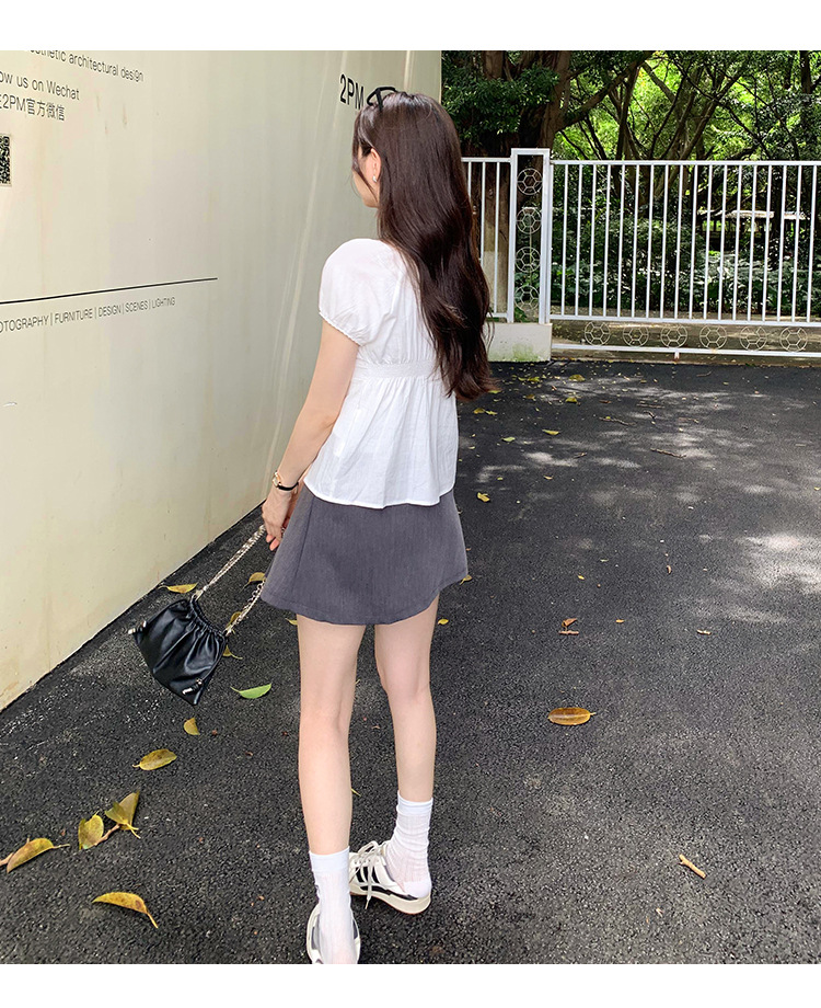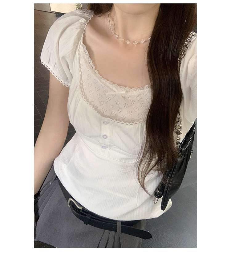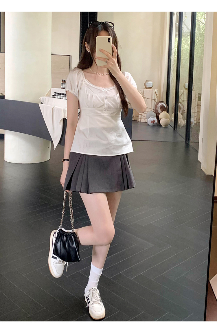 프랑스 달콤한 디자인 화이트 버블 반팔 셔츠 여성의 2024 여름 새로운 스타일 세련된 타이트 허리 우아한 탑스토어 가기