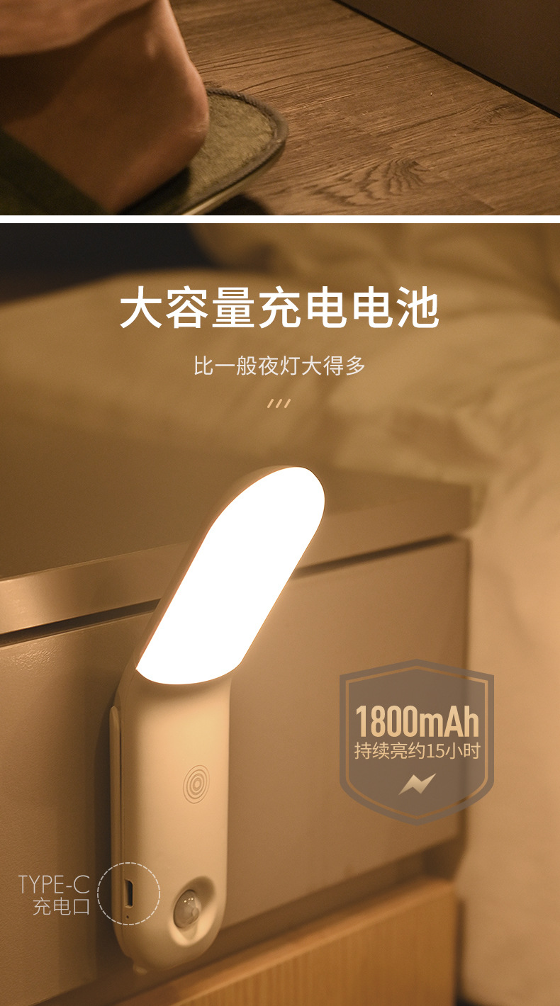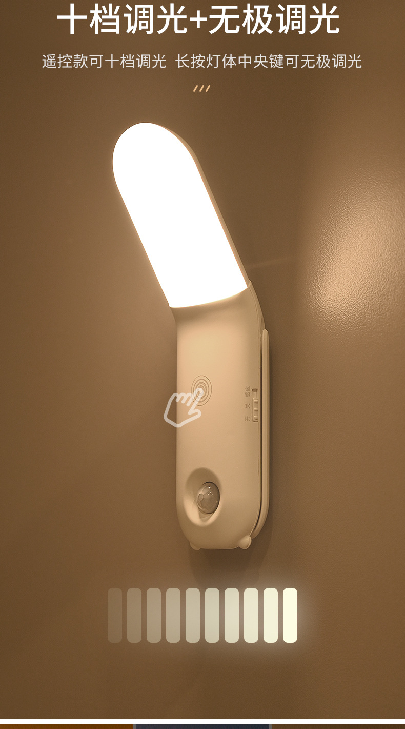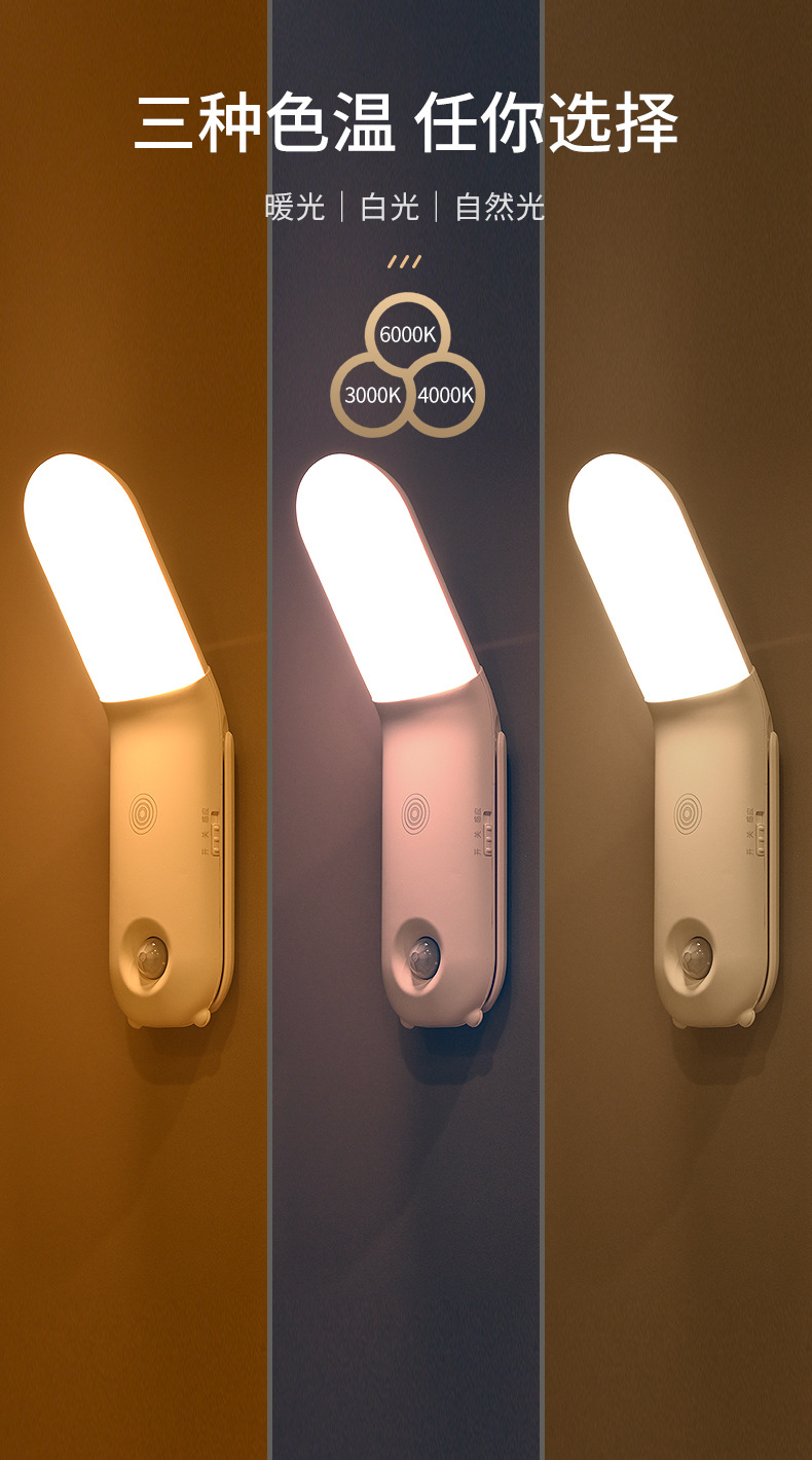 Led 야간 조명 인체 유도 옷장 통로 조명 3 색 조정 홈 주방 캐비닛 충전 센서 조명