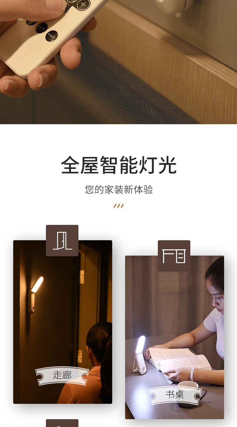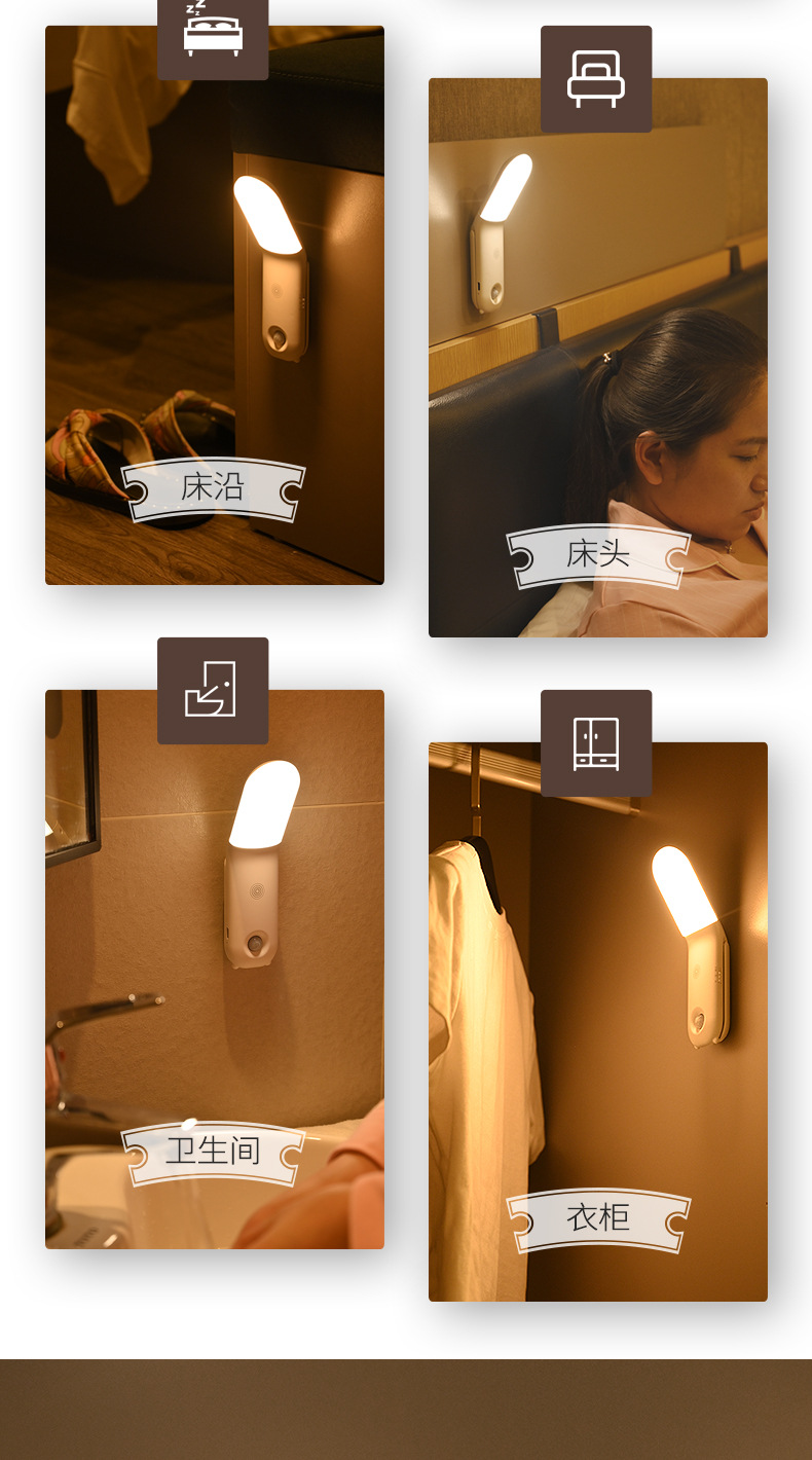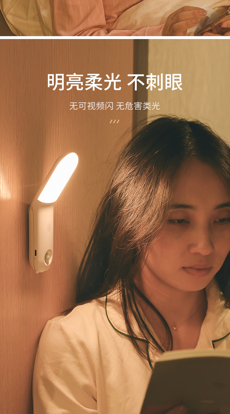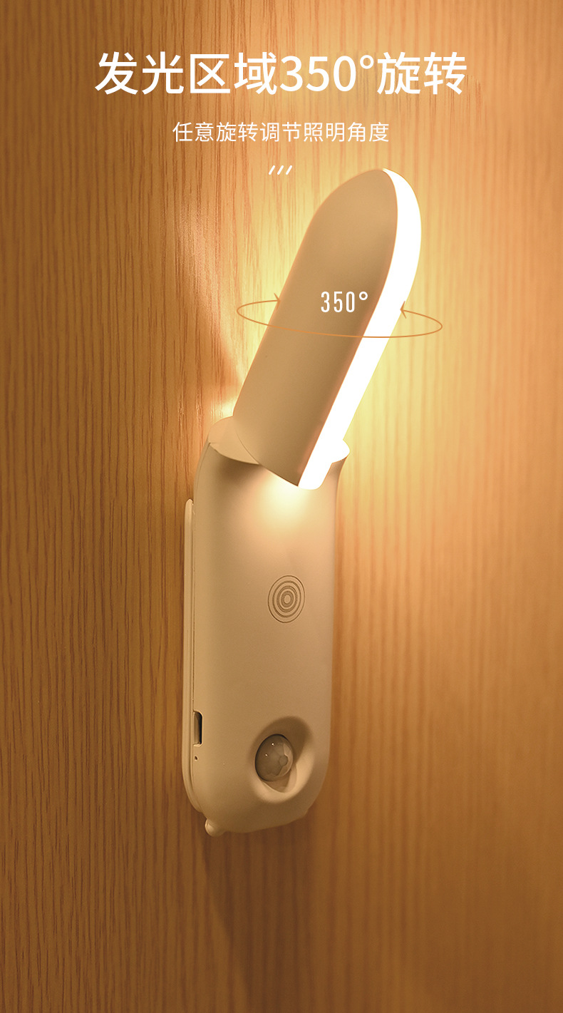 Led 야간 조명 인체 유도 옷장 통로 조명 3 색 조정 홈 주방 캐비닛 충전 센서 조명