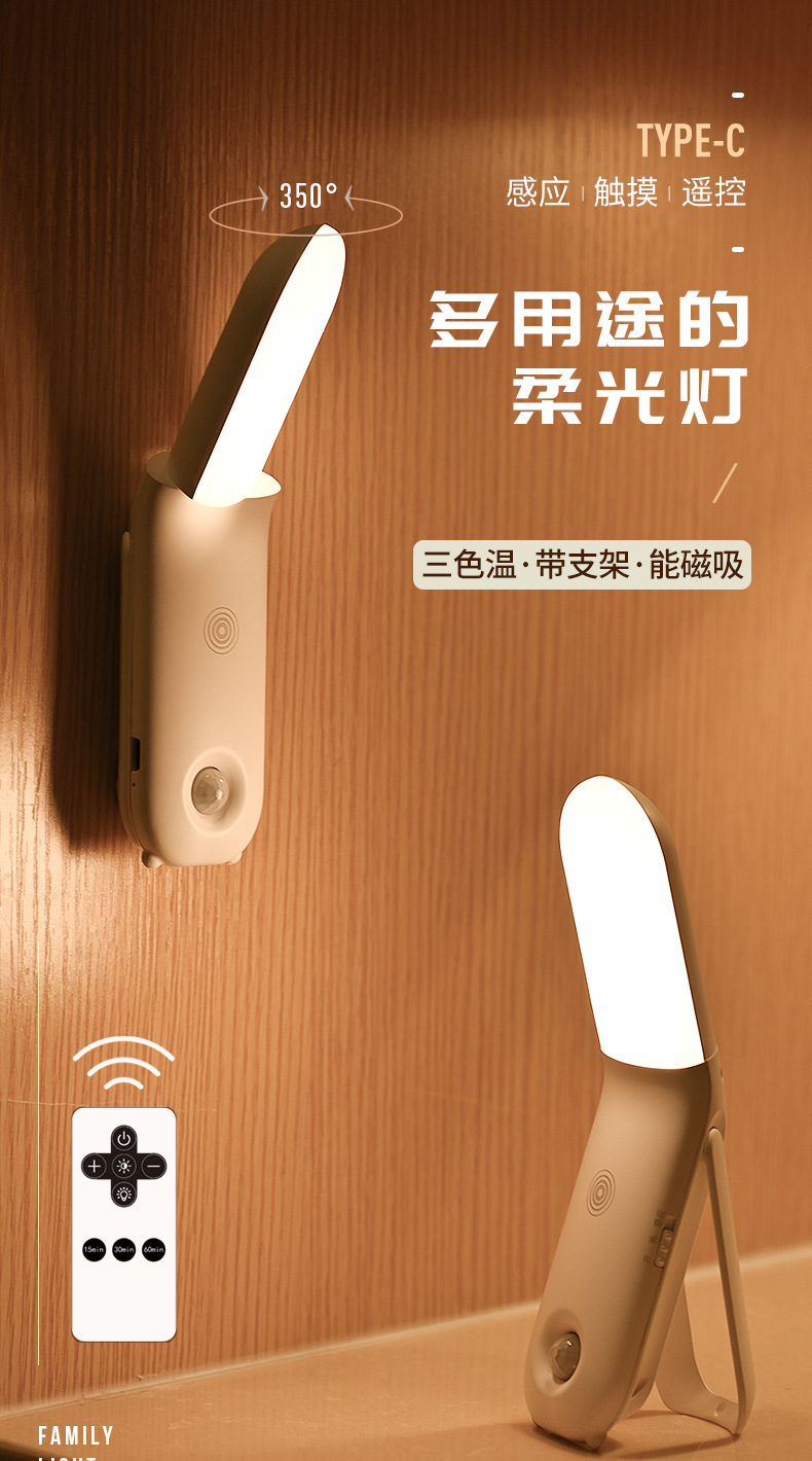 Led 야간 조명 인체 유도 옷장 통로 조명 3 색 조정 홈 주방 캐비닛 충전 센서 조명스토어 가기