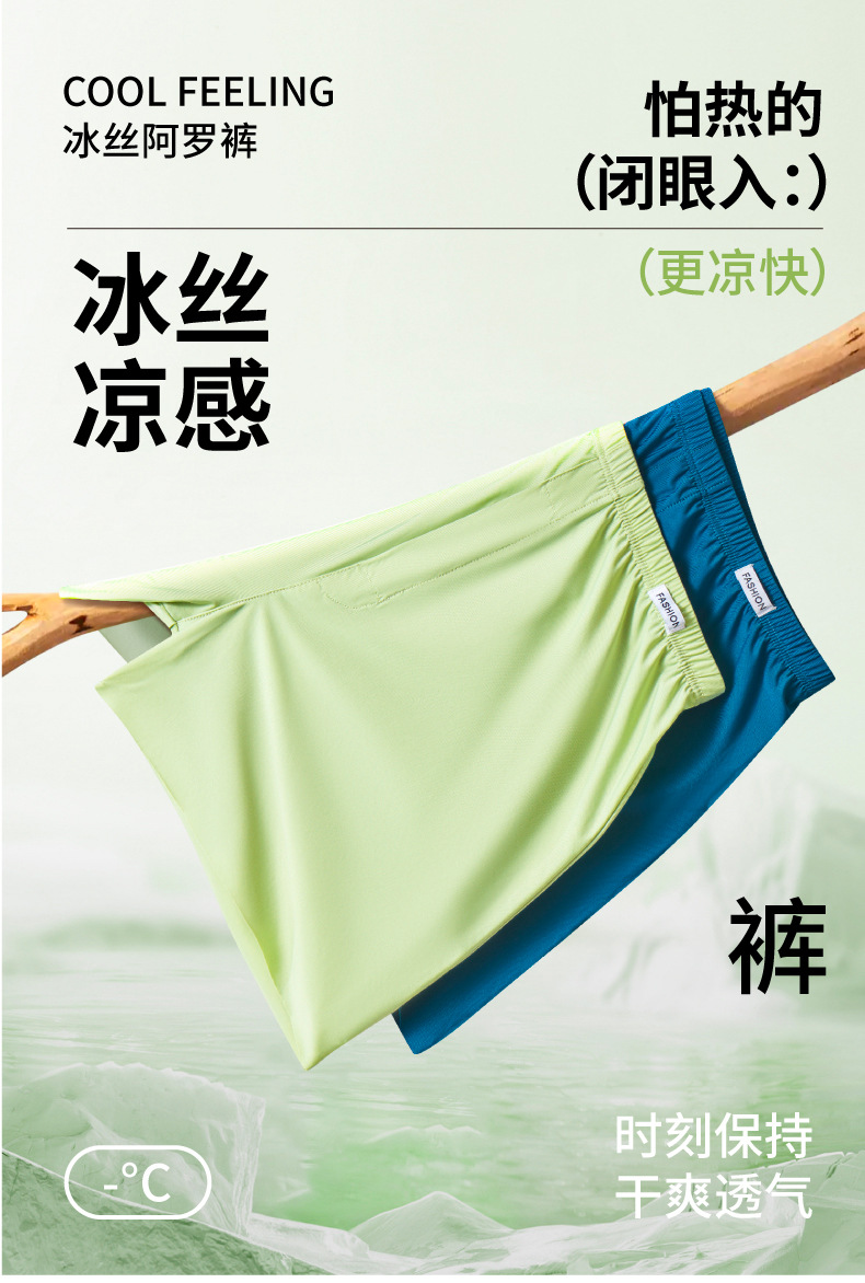 남성용 아이스 실크 속옷 아로 팬츠 캐주얼 대형 사이즈 홈웨어 잠옷 통기성 편안함 외출 가능 루즈핏 속건스토어 가기
