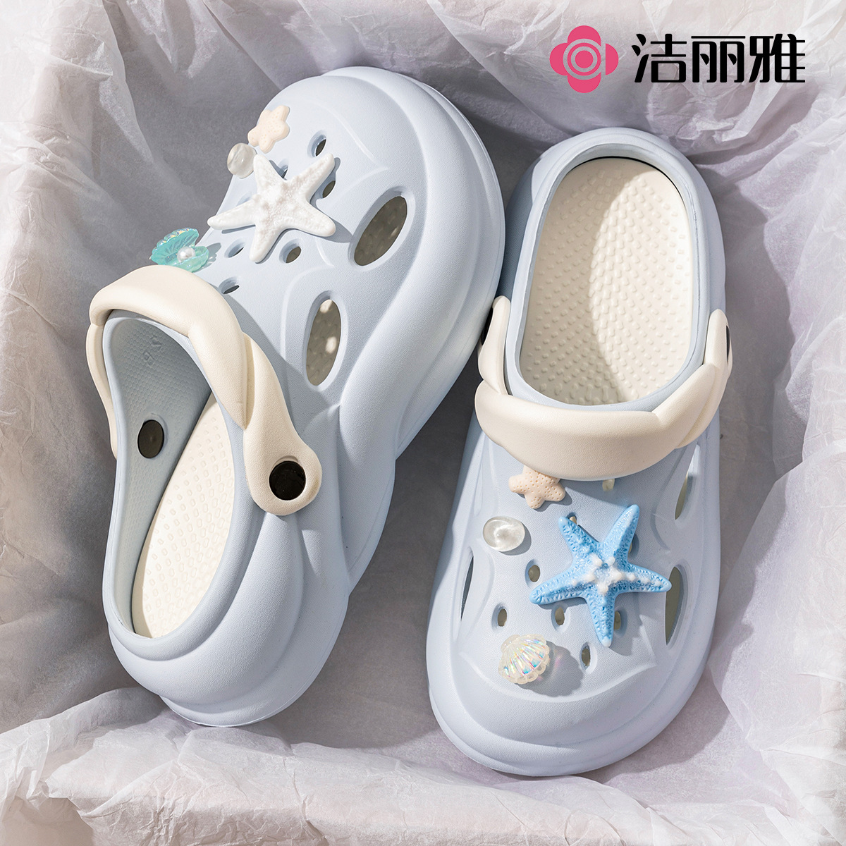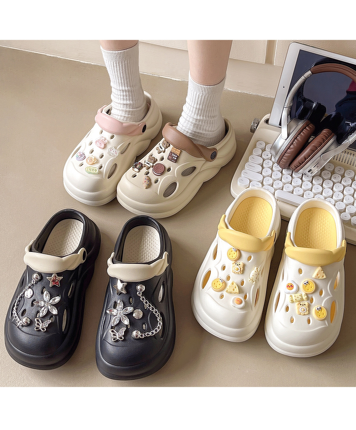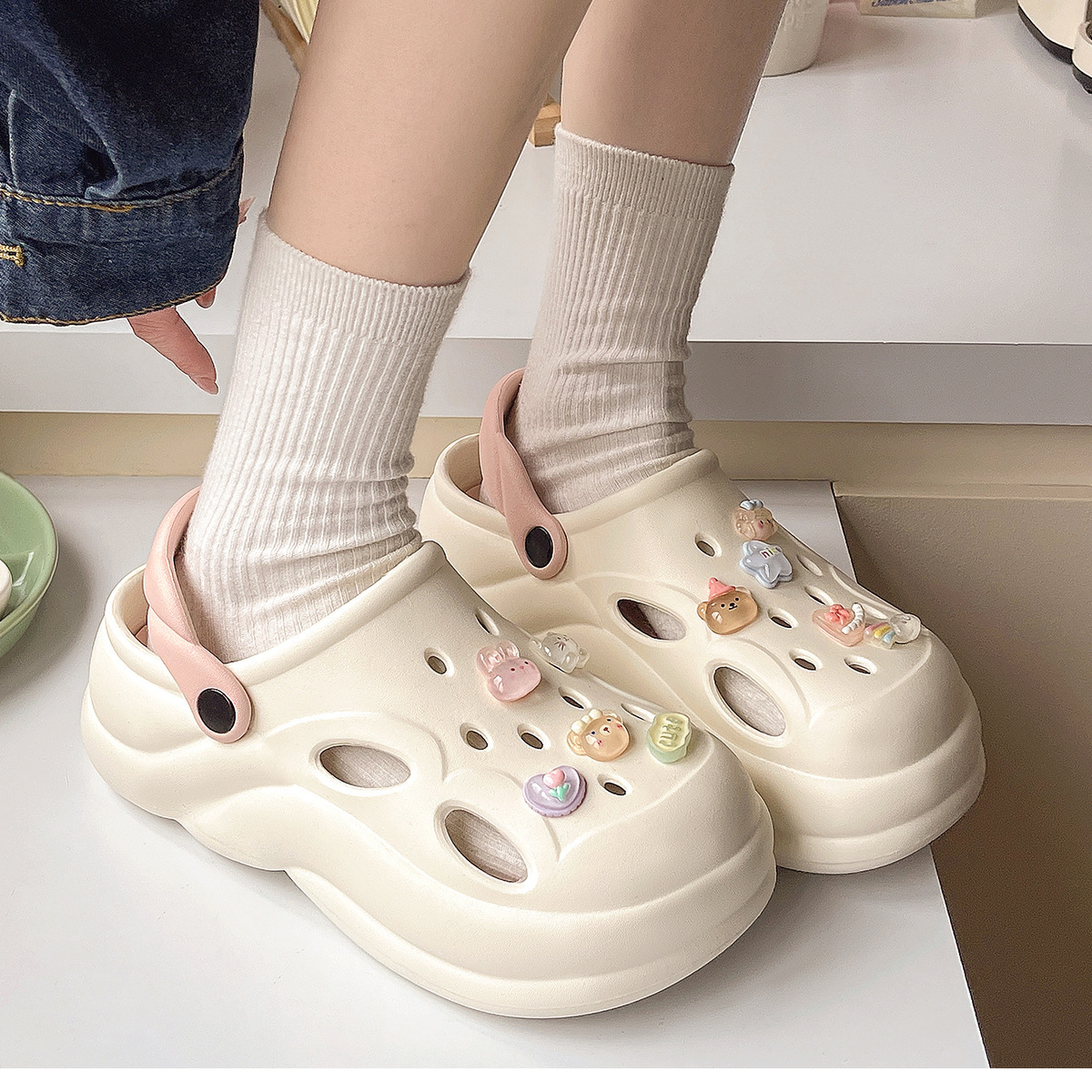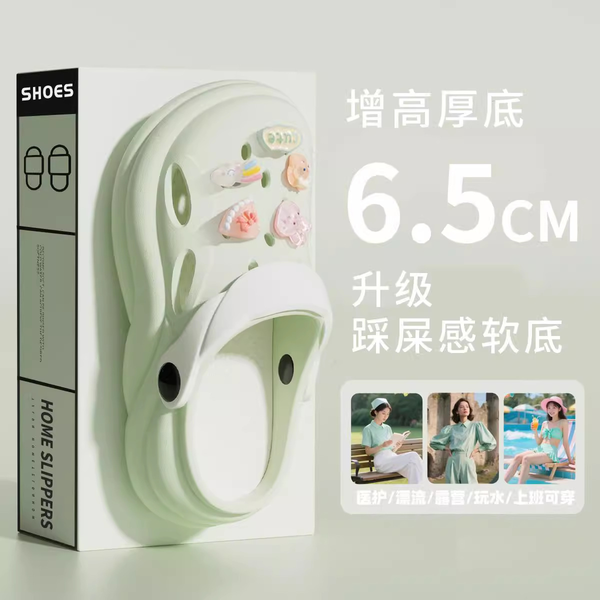 두꺼운 밑창 구멍 신발 여성의 2025 새로운 에바 미끄럼 방지 비치 신발 높이 샌들 여성 여름 야외 착용스토어 가기