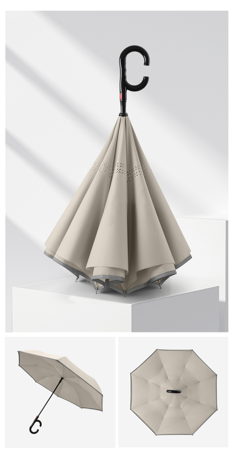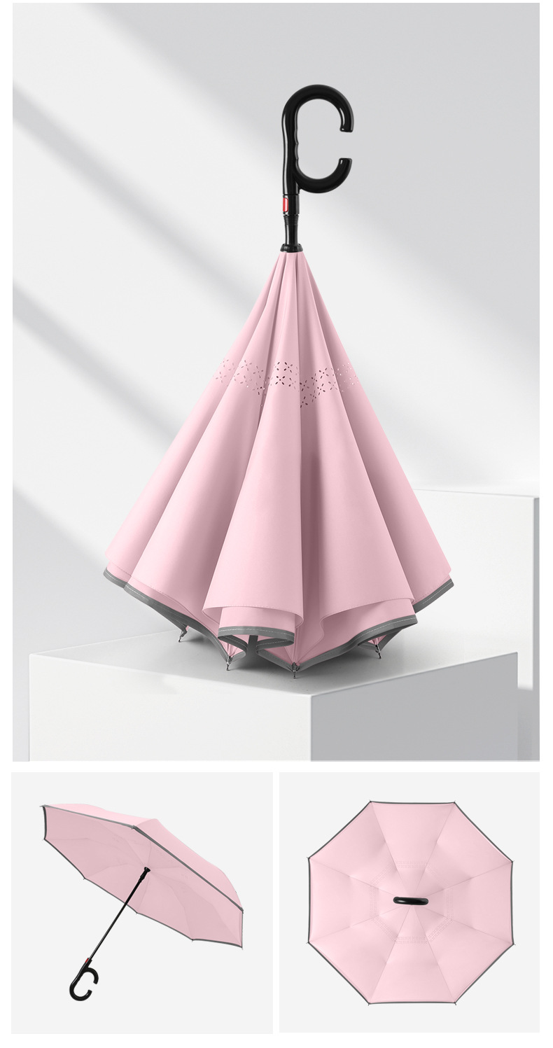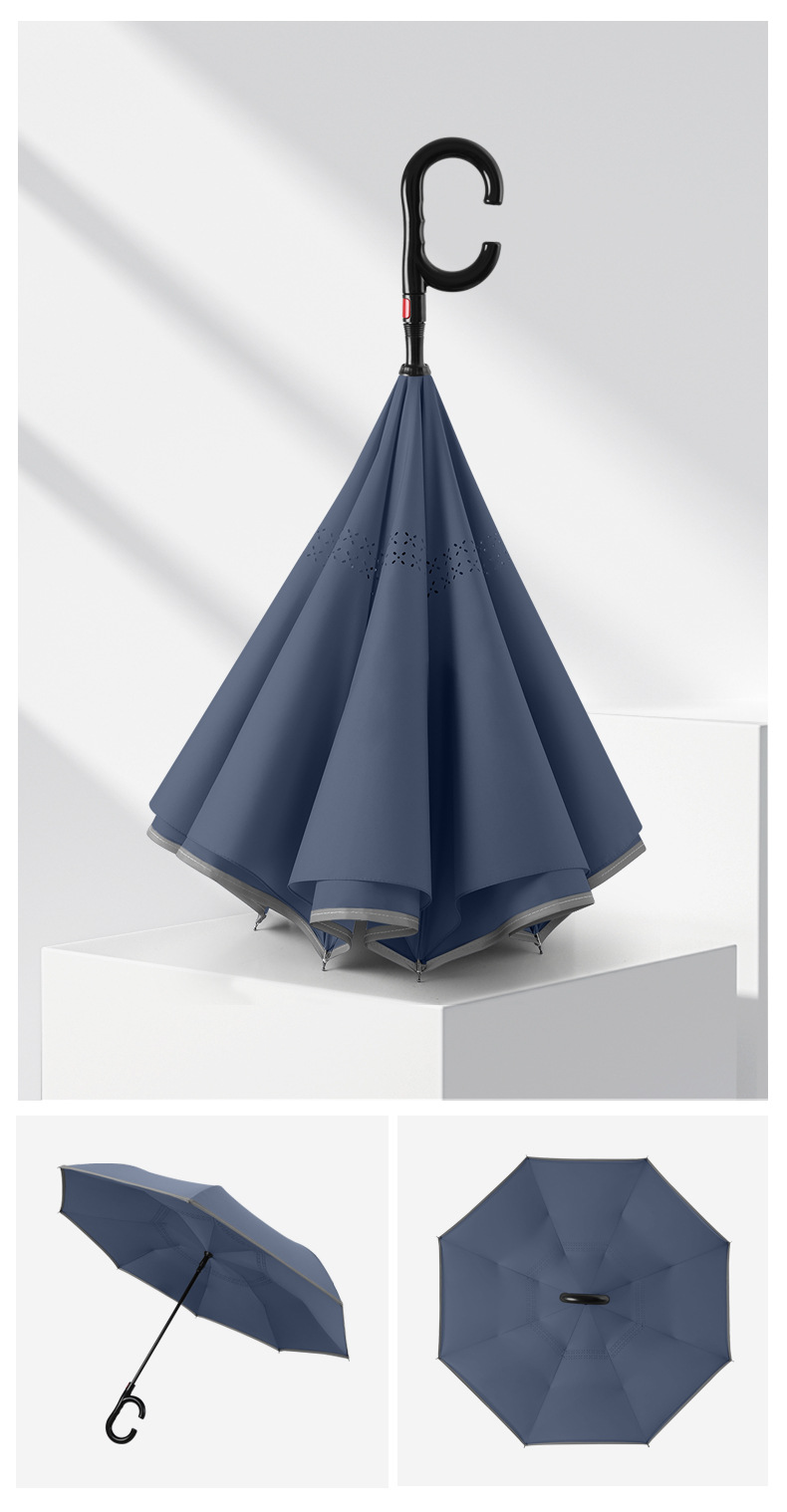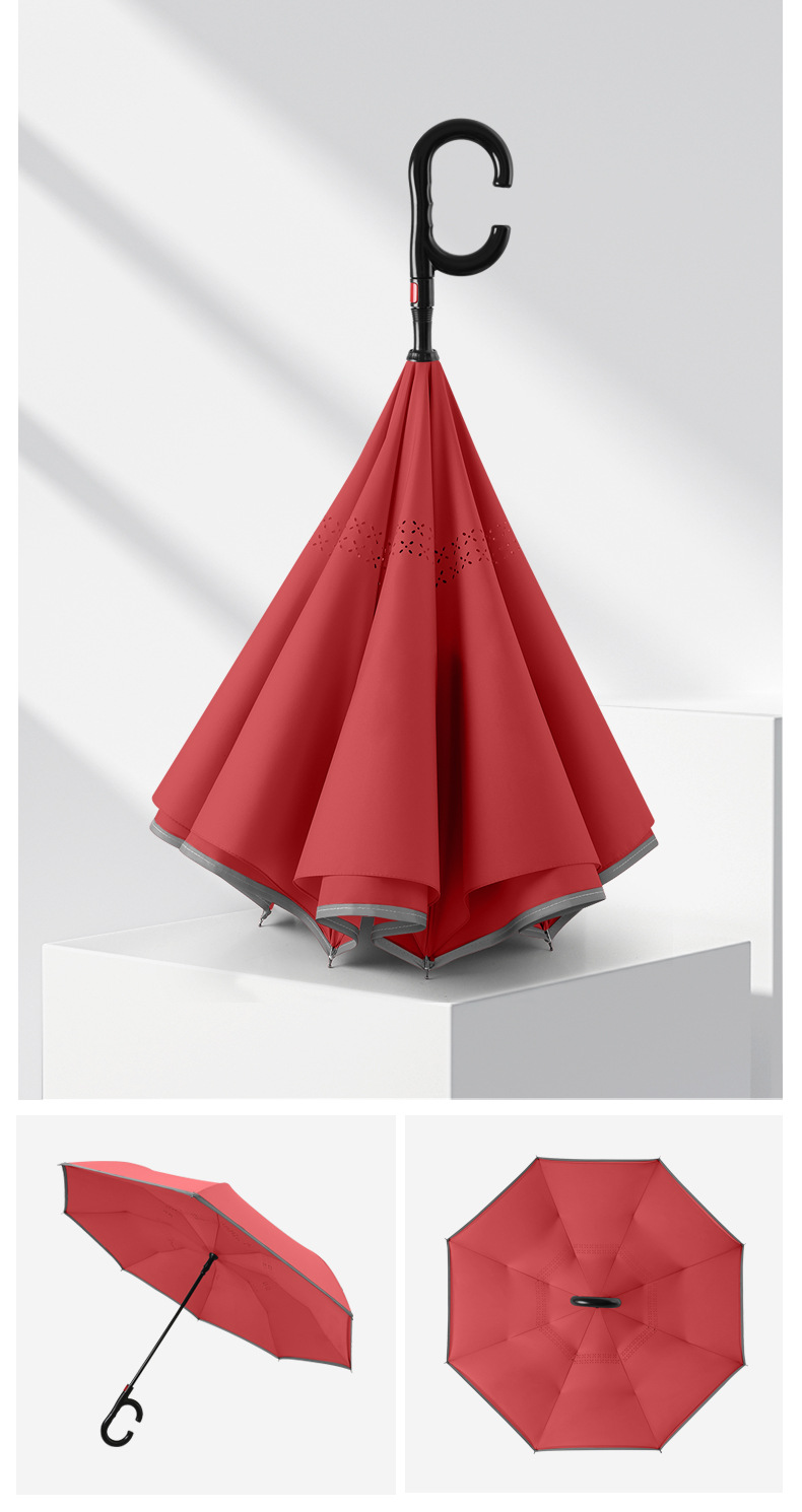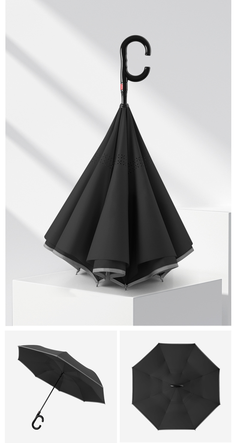 8본 긴 손잡이 C형 자동 역방향 우산 이중층 차양 역방향 우산 핸즈프리 광고 우산 비즈니스 우산스토어 가기