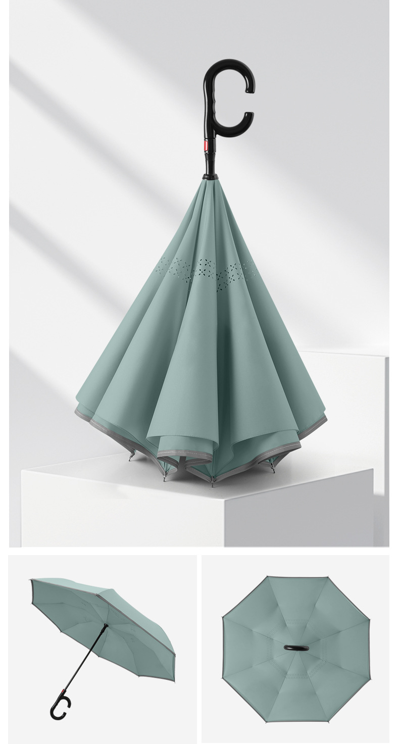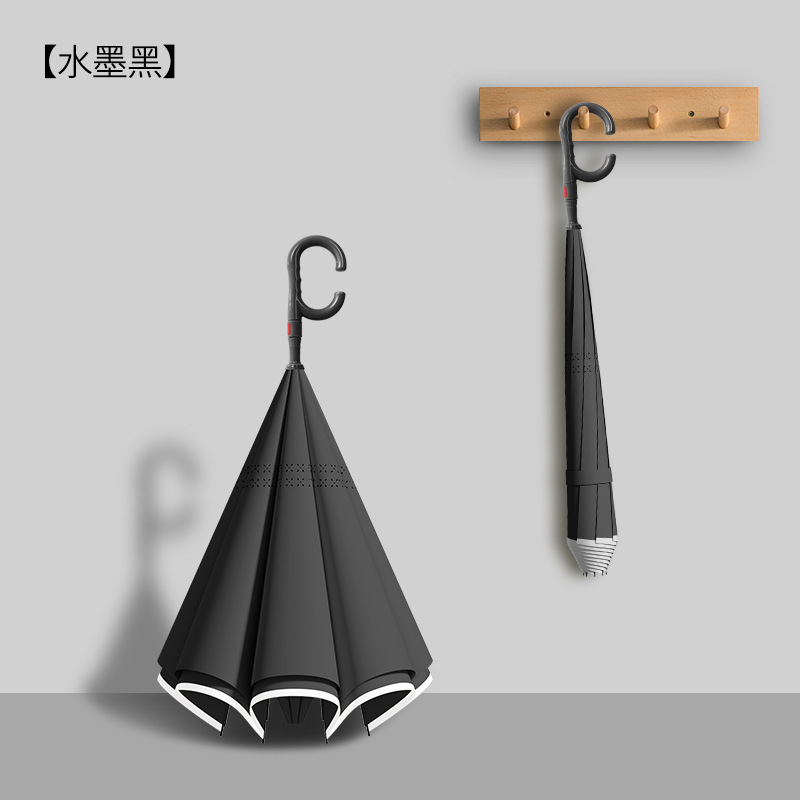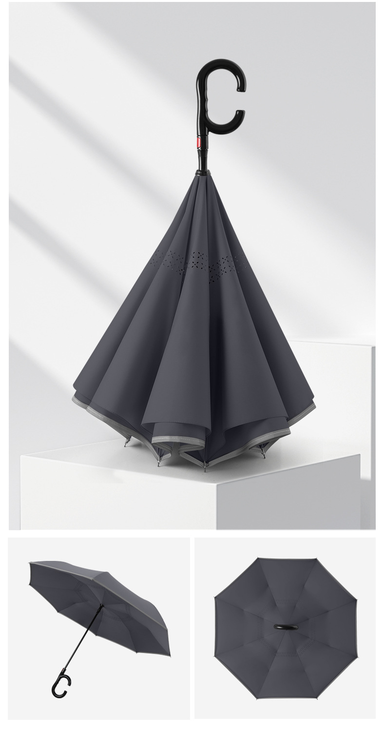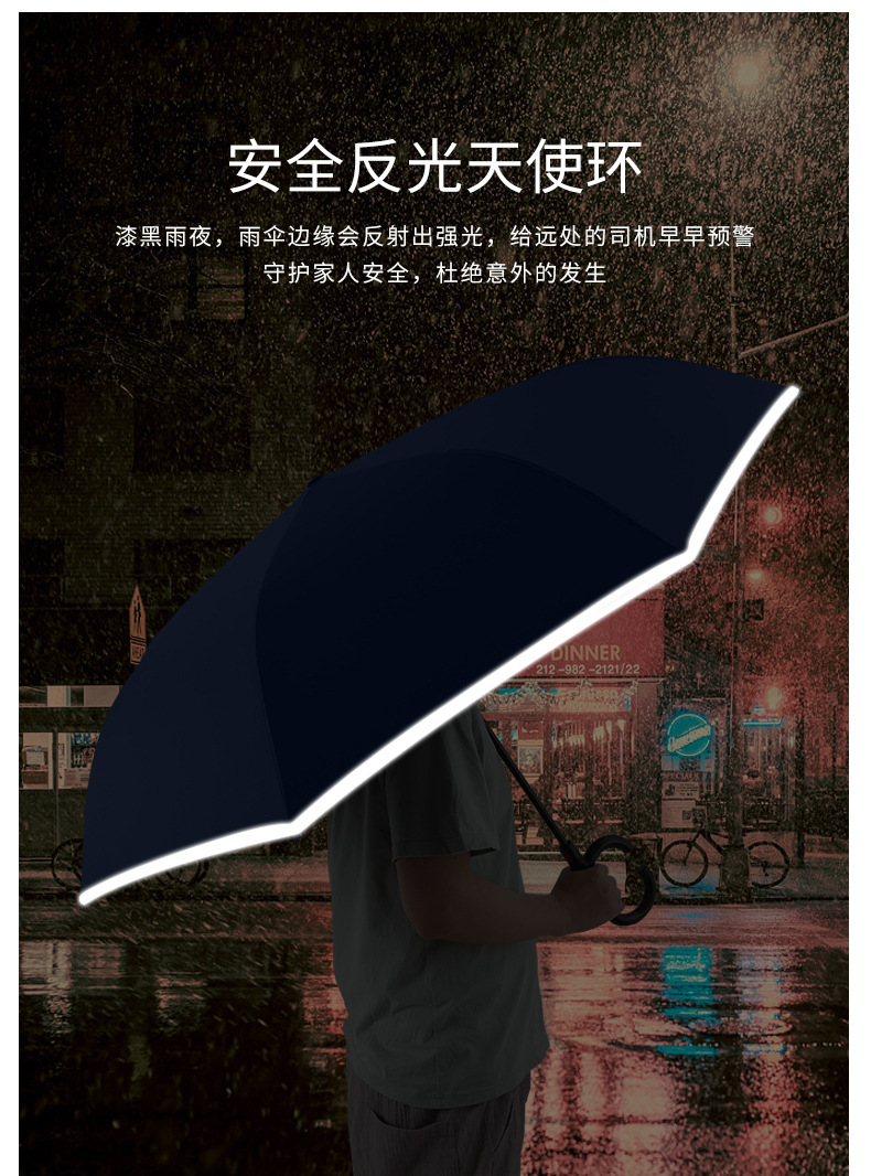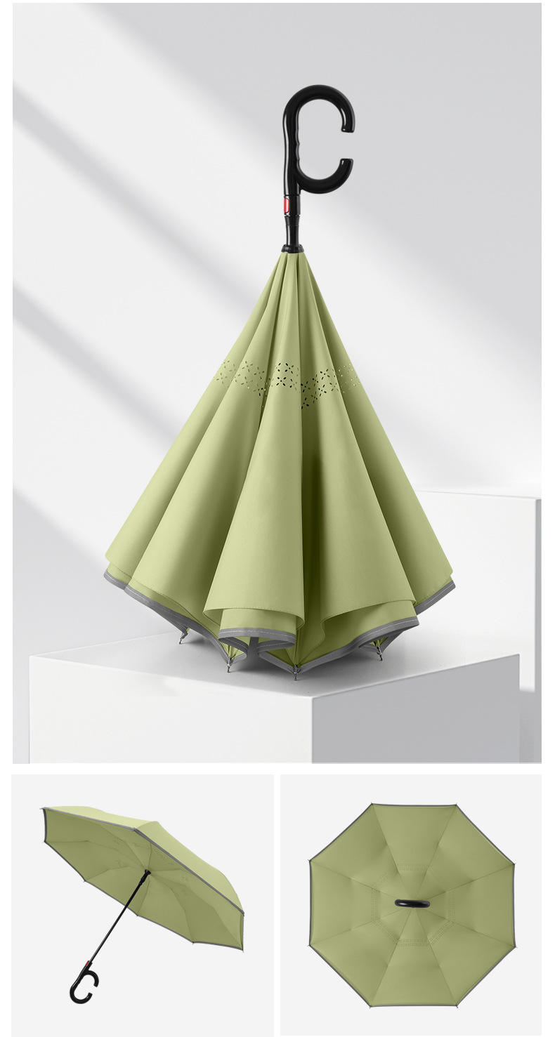 8본 긴 손잡이 C형 자동 역방향 우산 이중층 차양 역방향 우산 핸즈프리 광고 우산 비즈니스 우산스토어 가기