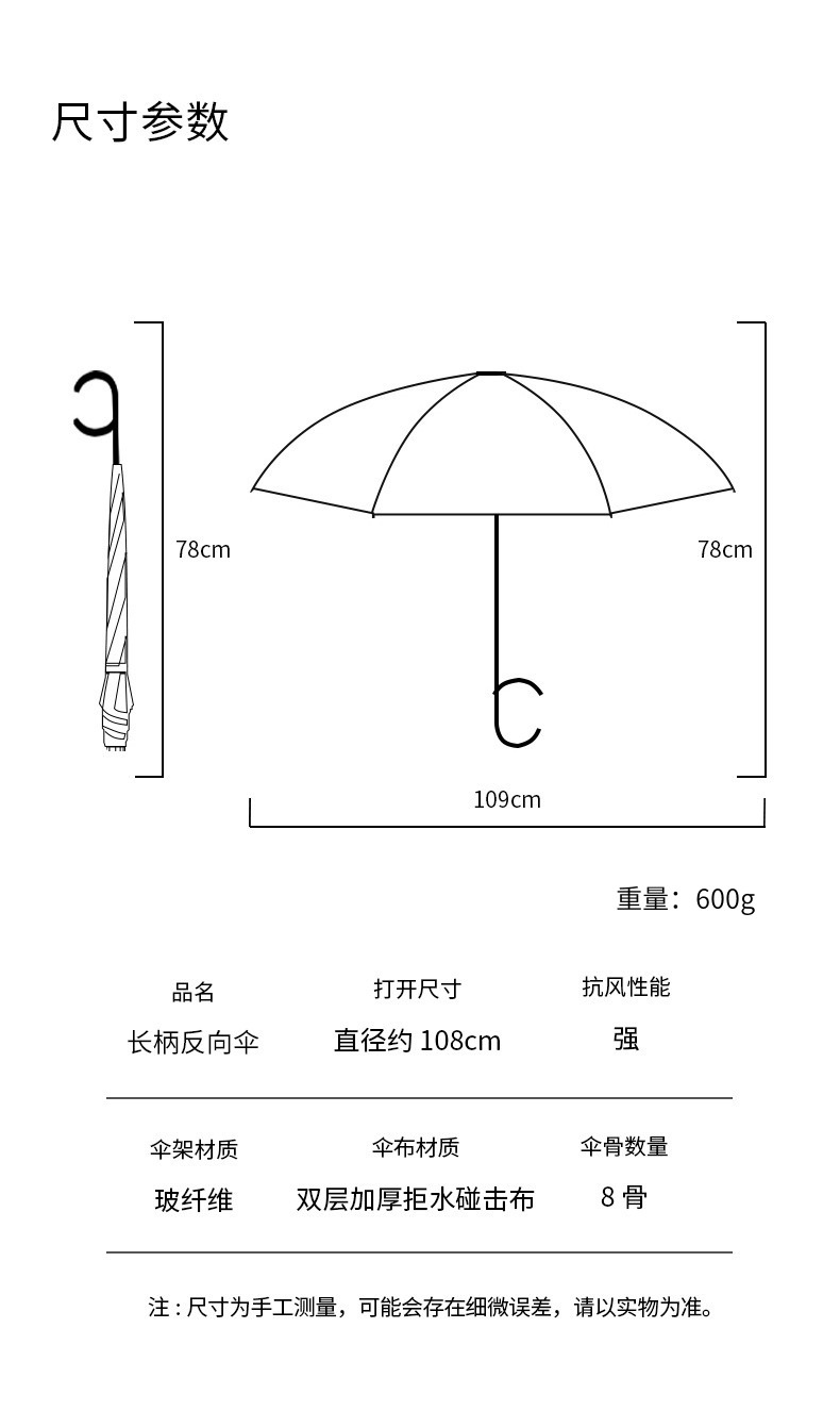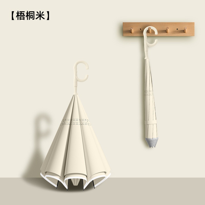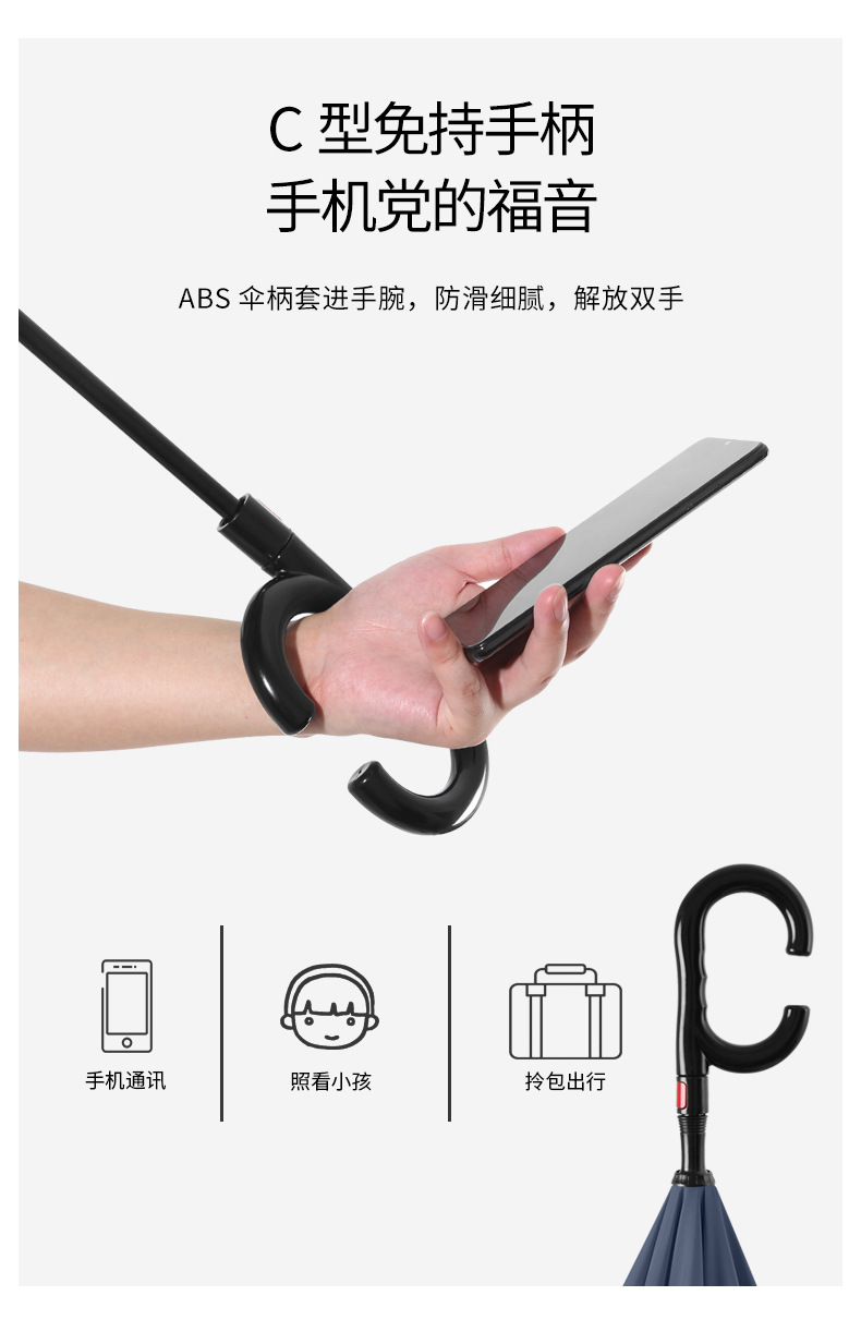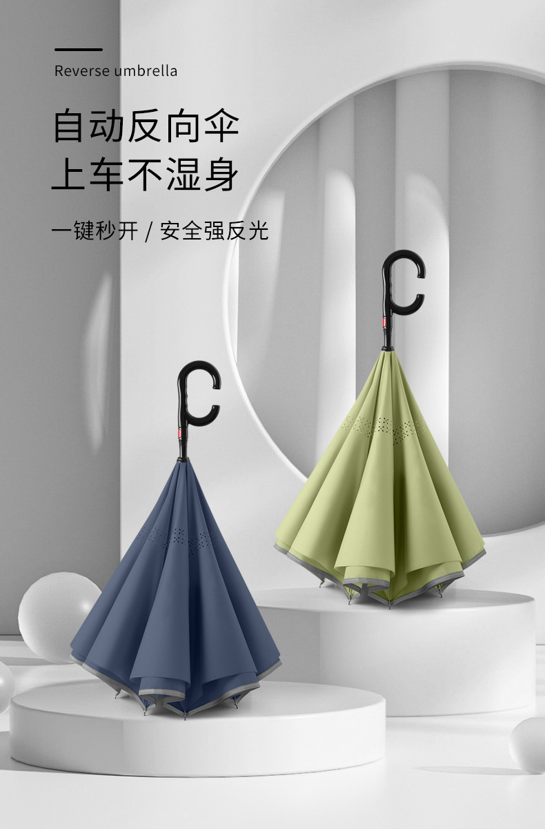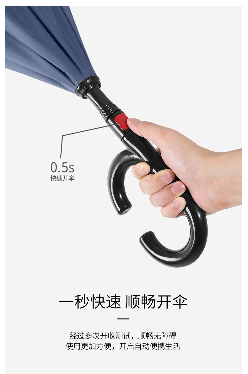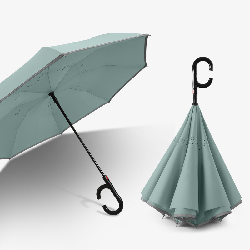 8본 긴 손잡이 C형 자동 역방향 우산 이중층 차양 역방향 우산 핸즈프리 광고 우산 비즈니스 우산스토어 가기