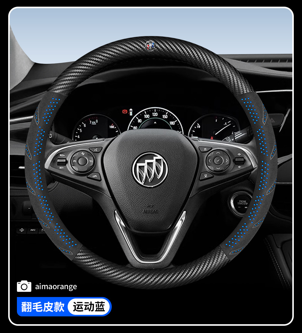 • 탄소 섬유 스웨이드 스포츠 블루 라운드 뷰익 로고