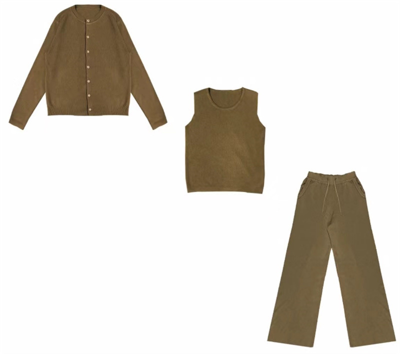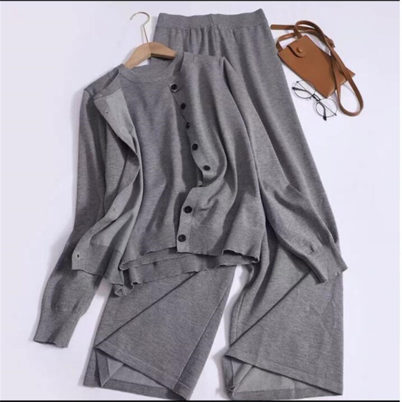 하이 엔드 패션 캐주얼 니트 세트 여성 가을 겨울 국경 간단한 우아한 조끼 카디건 와이드 레그 팬츠 3 피스 세트스토어 가기