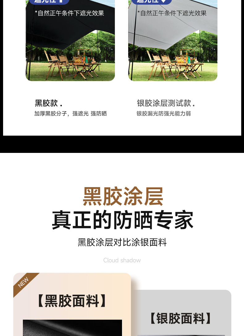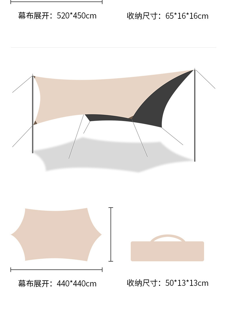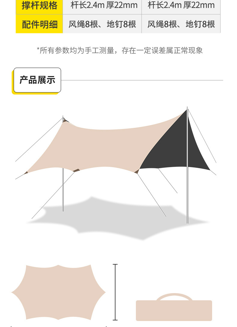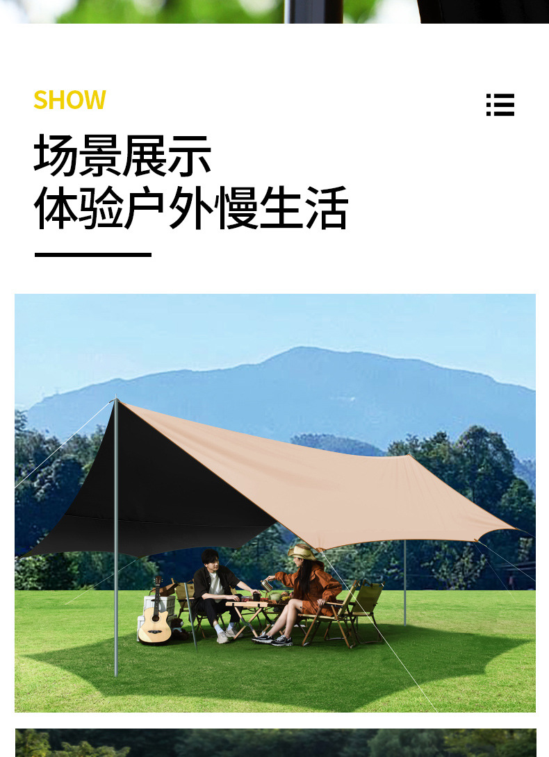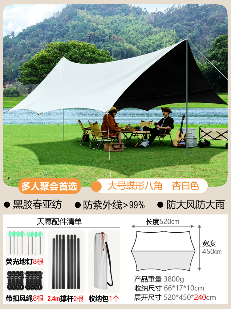 새로운 티타늄 콜드 블랙 접착제 캐노피 확대 8 면 나비 모양의 야외 캐노피 캠핑 방수 방비 차양 캐노피