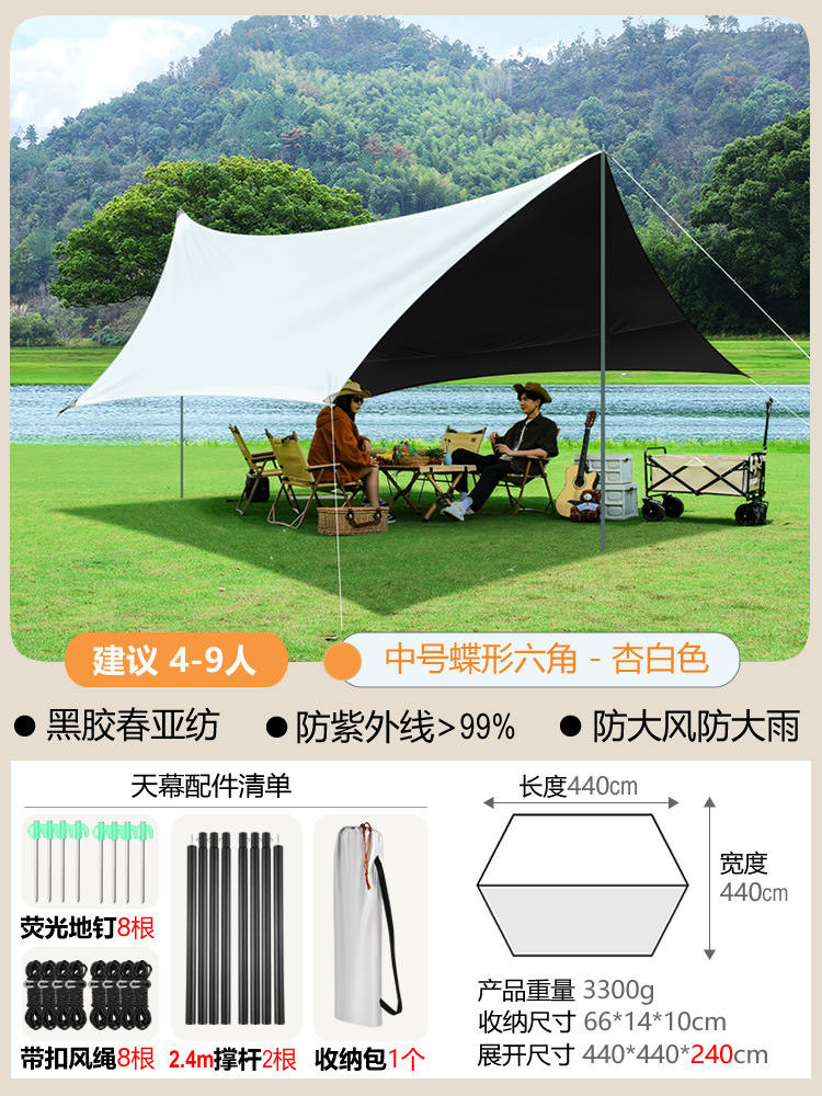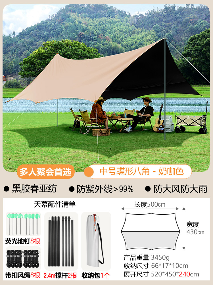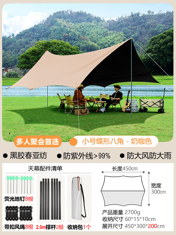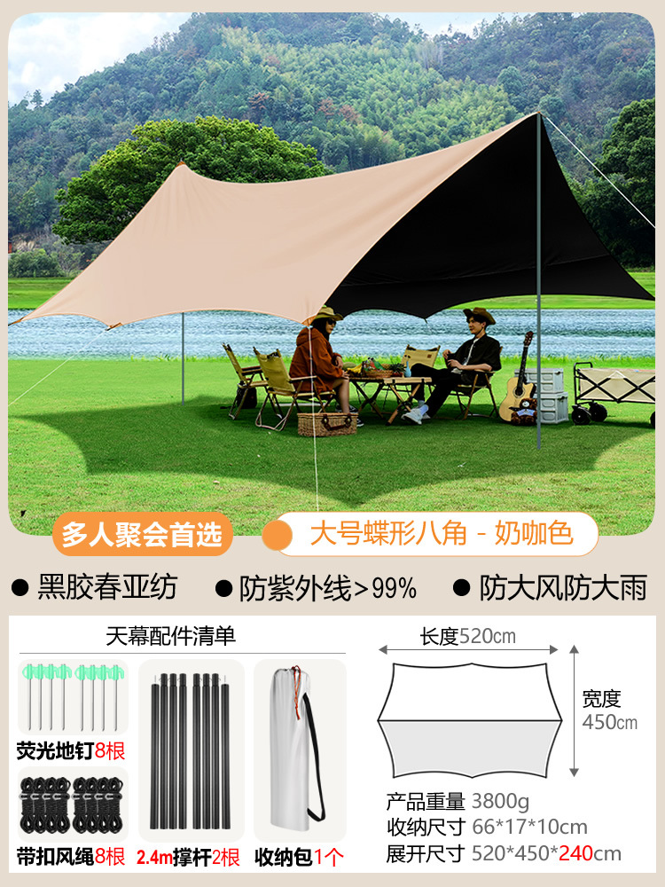 새로운 티타늄 콜드 블랙 접착제 캐노피 확대 8 면 나비 모양의 야외 캐노피 캠핑 방수 방비 차양 캐노피스토어 가기