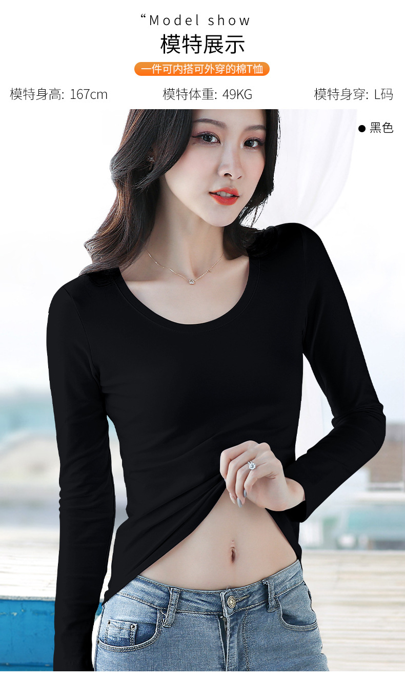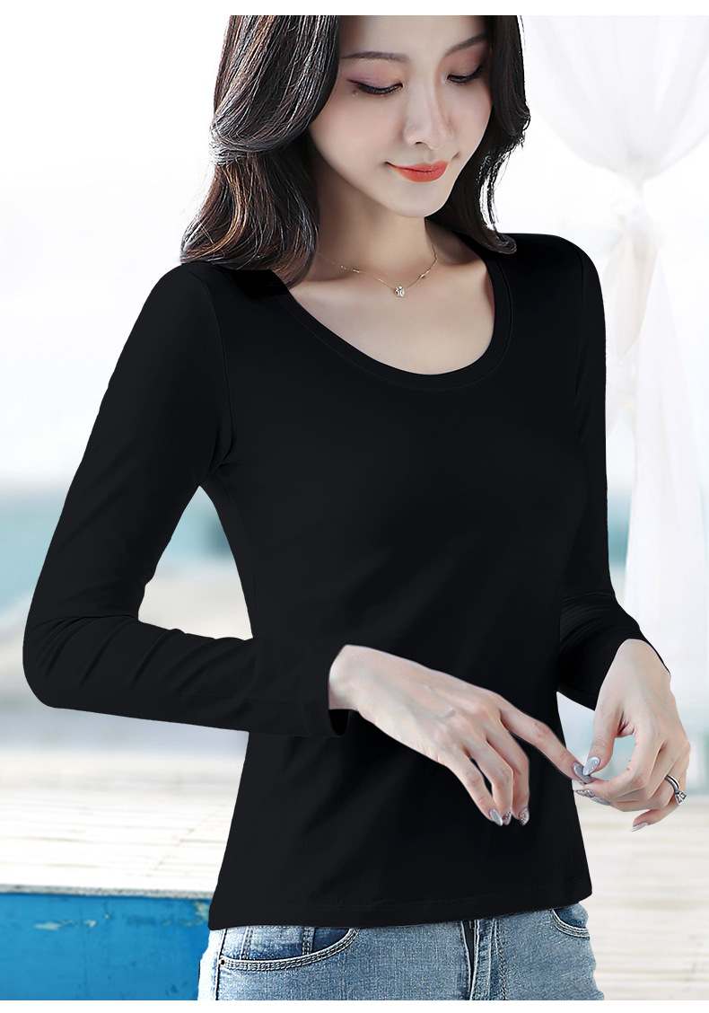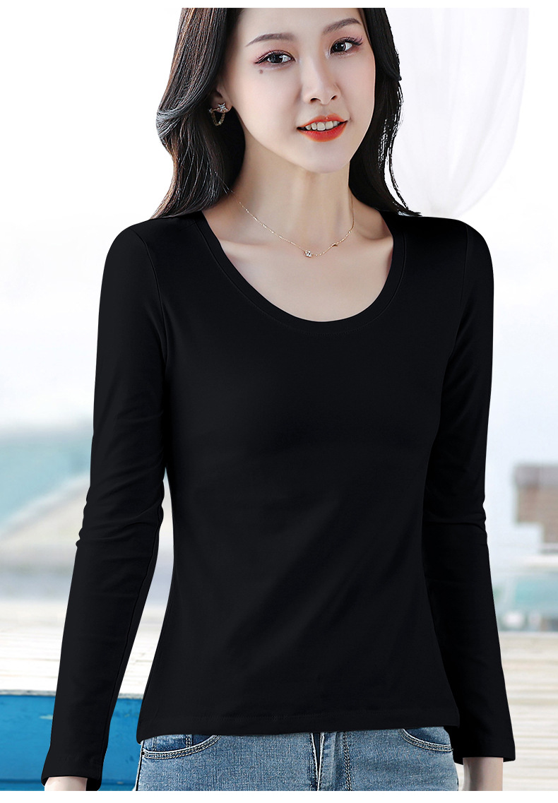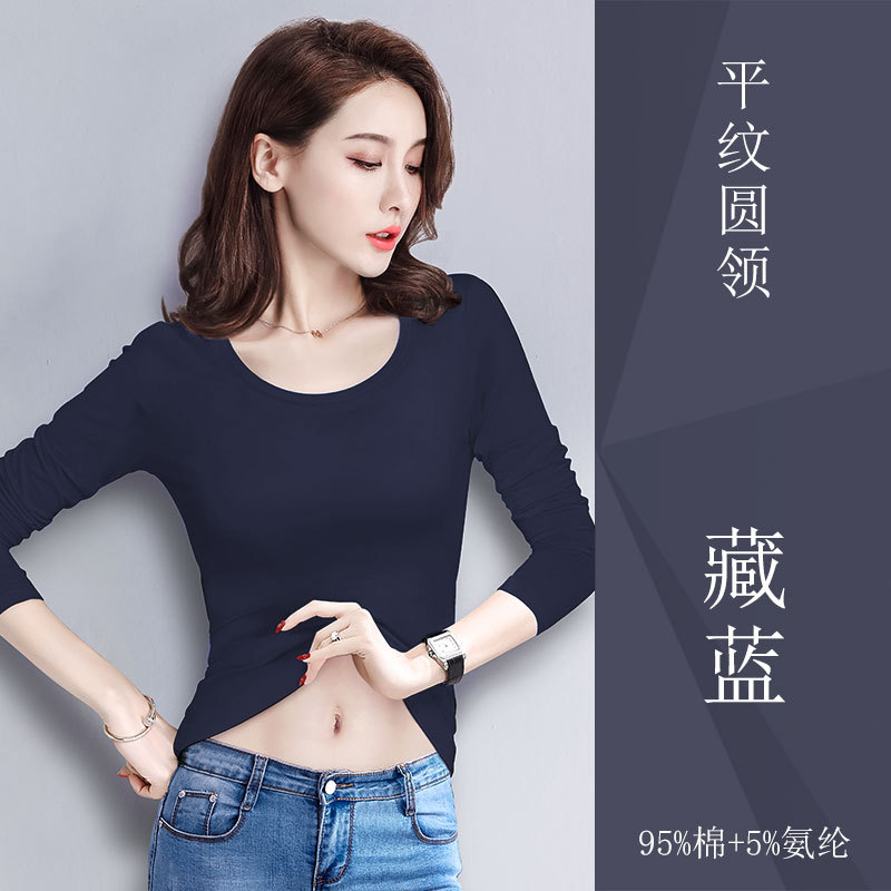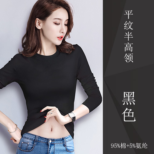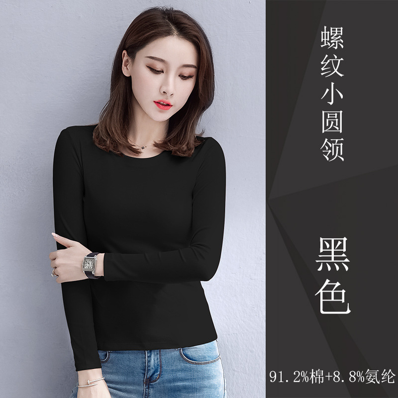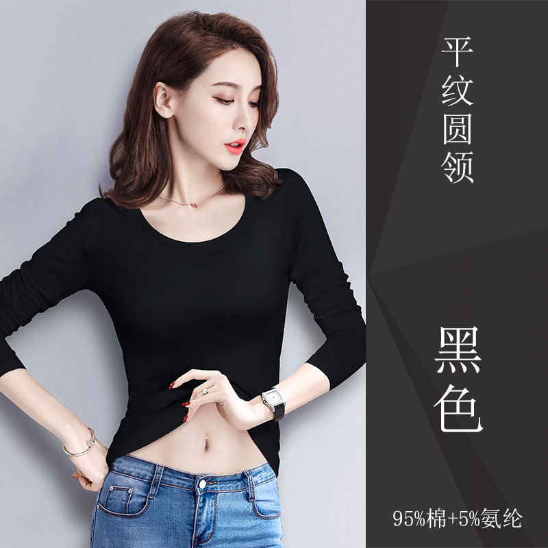 검은 색 면 긴 소매 티셔츠베이스 셔츠 여성용 내부 낮은 둥근 목 슬림 플러스 사이즈 봄과 가을 탄성 티셔츠