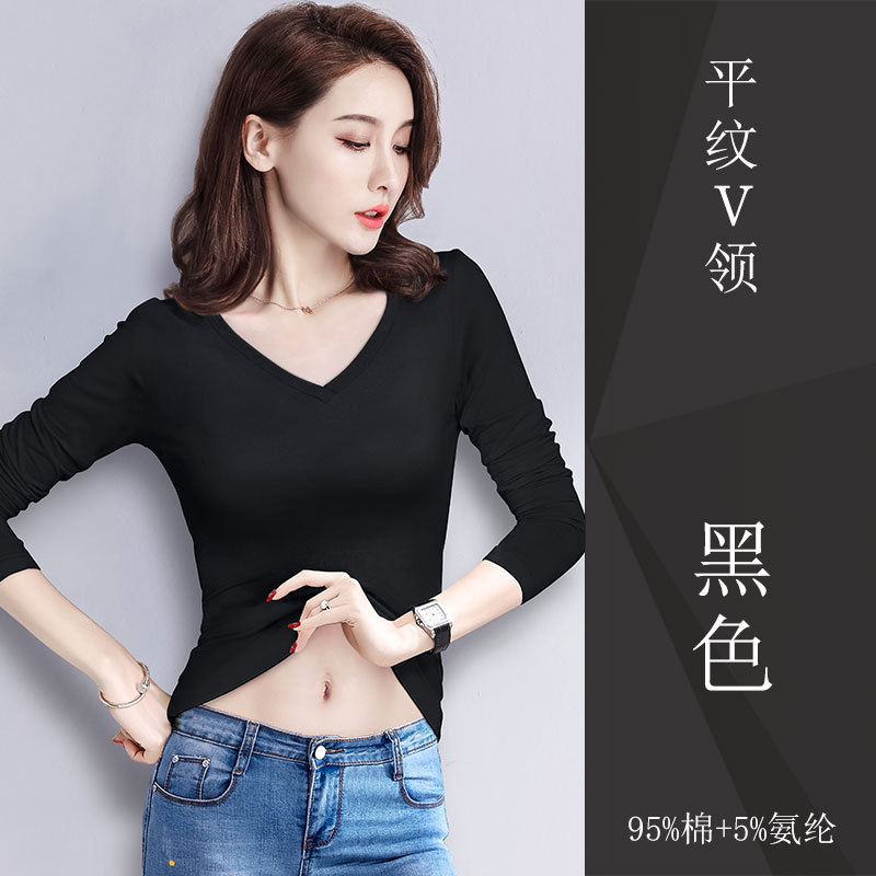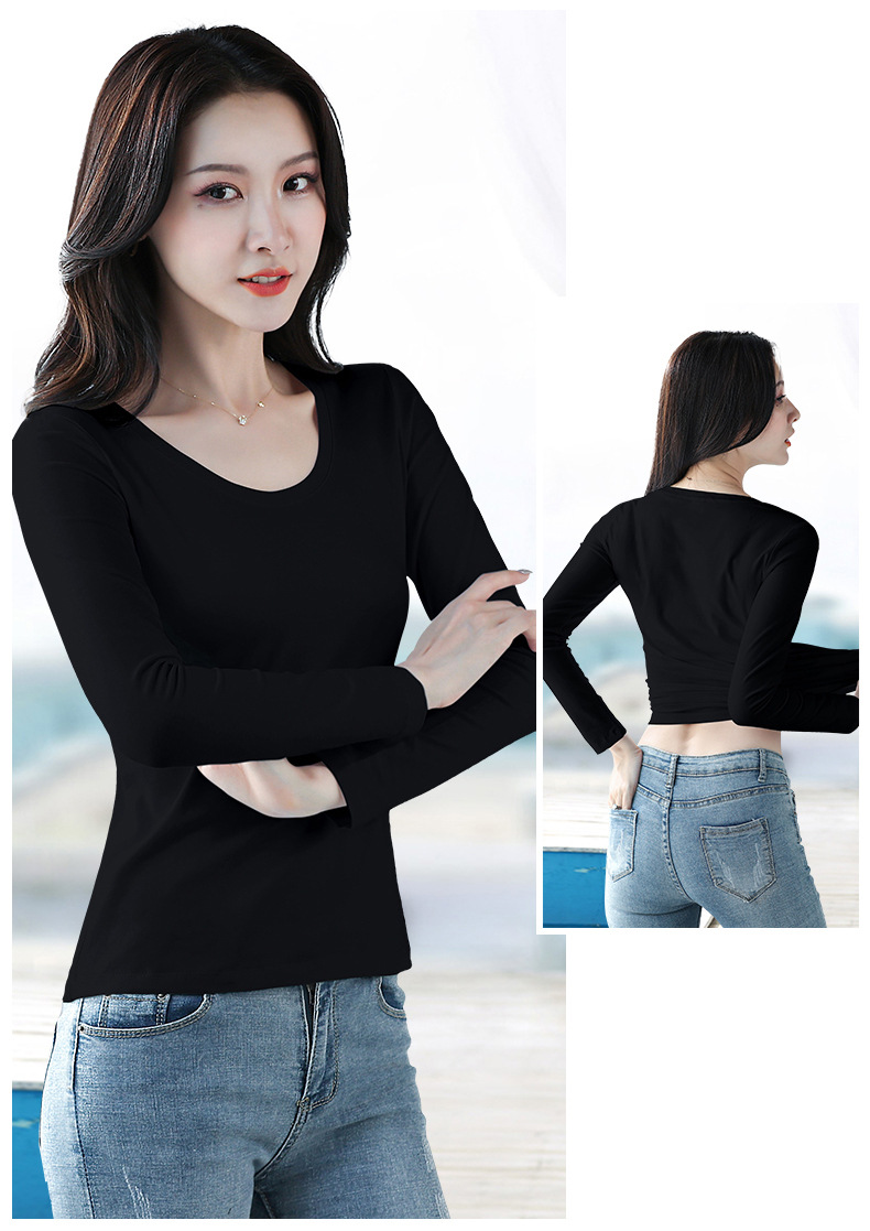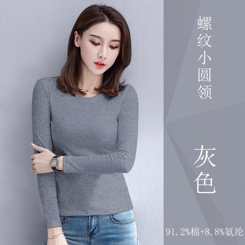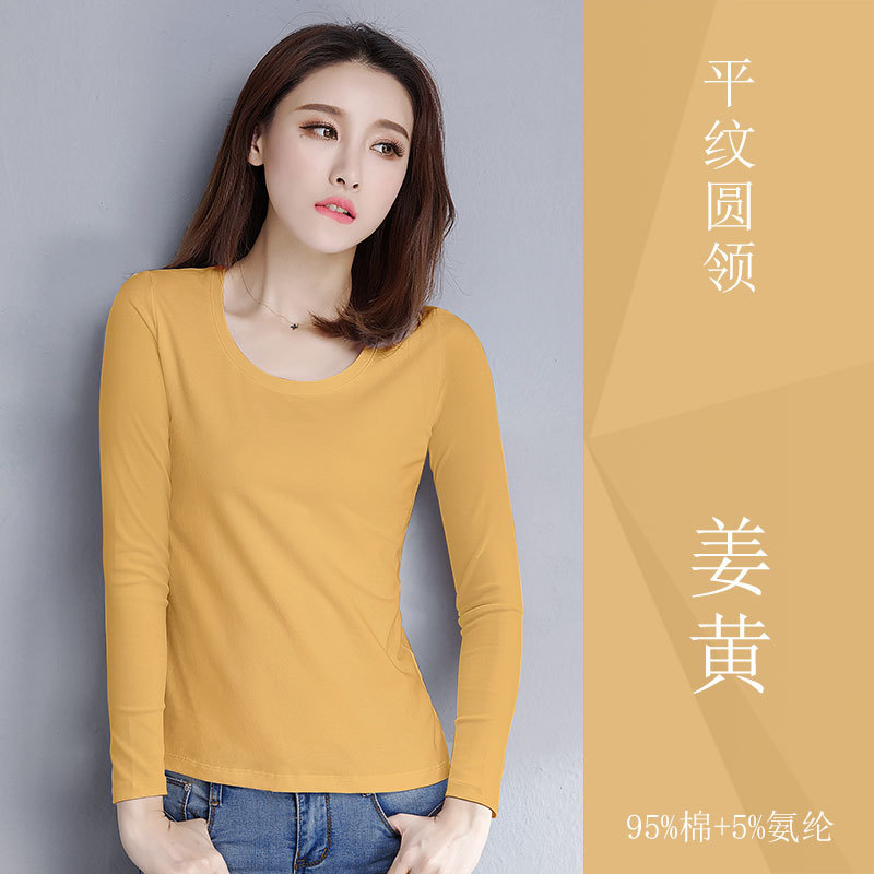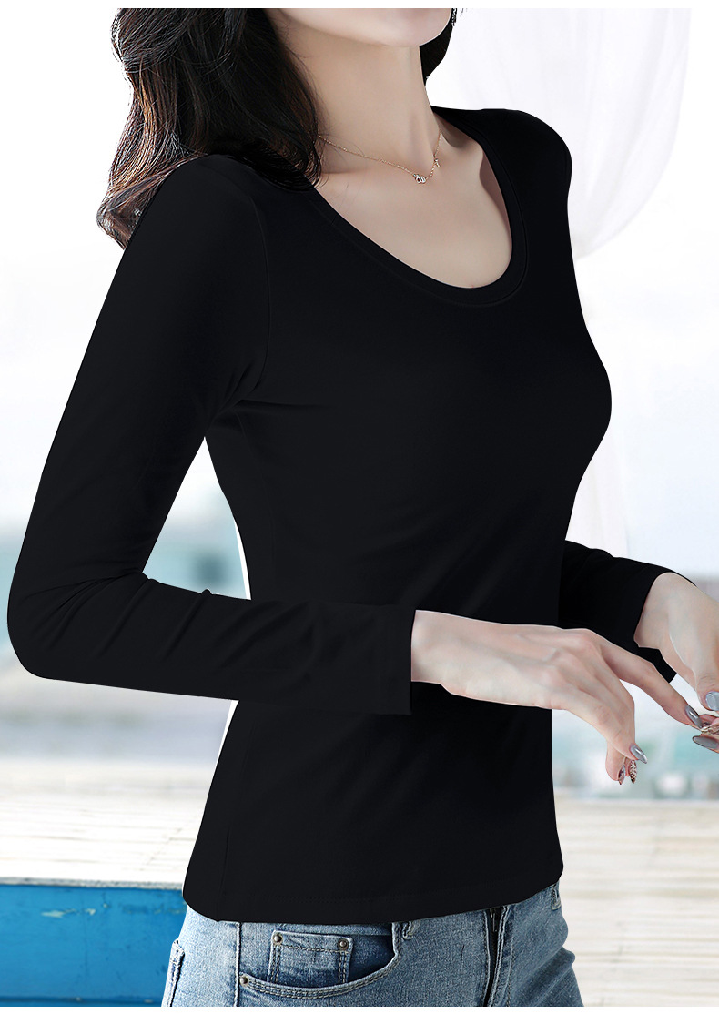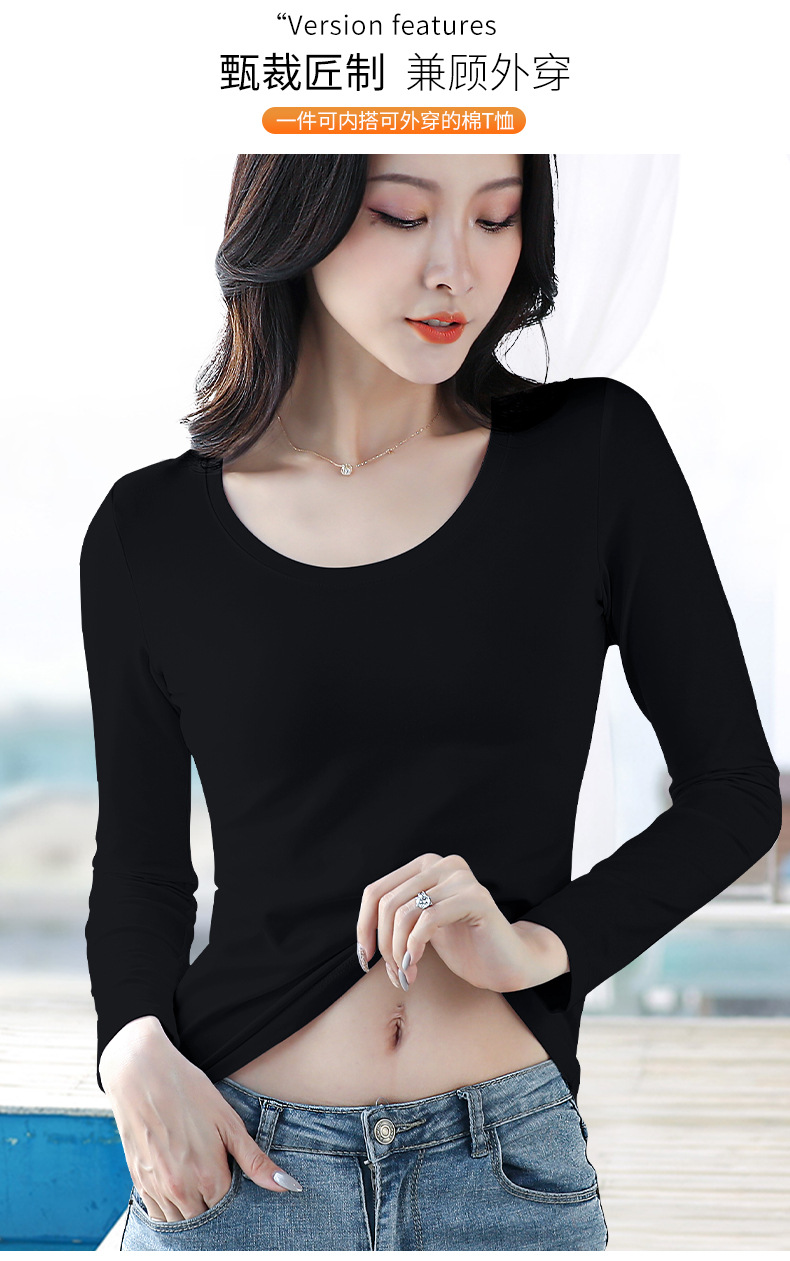 검은 색 면 긴 소매 티셔츠베이스 셔츠 여성용 내부 낮은 둥근 목 슬림 플러스 사이즈 봄과 가을 탄성 티셔츠