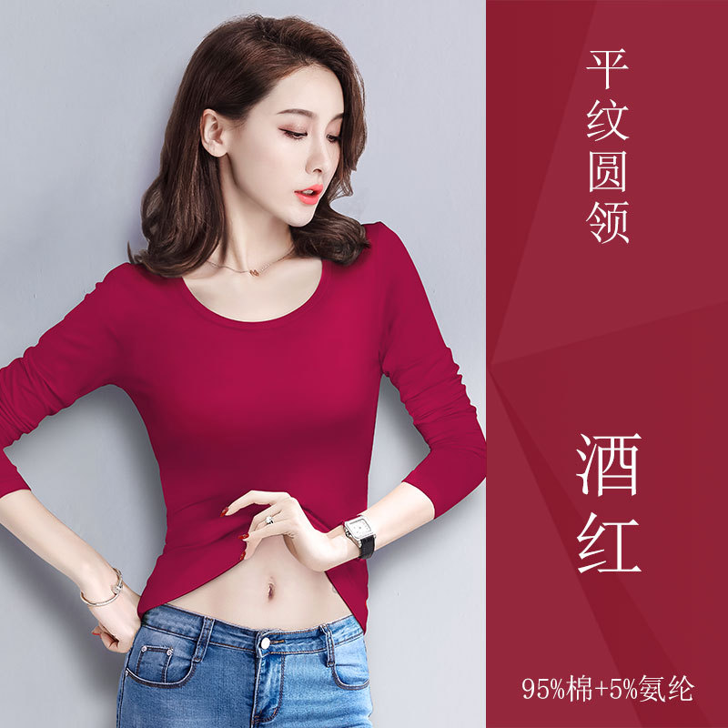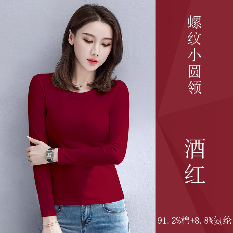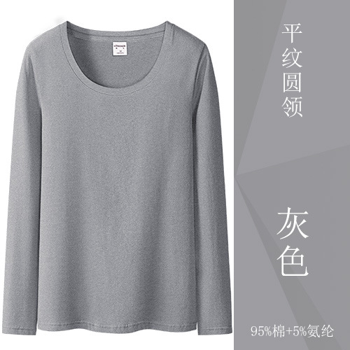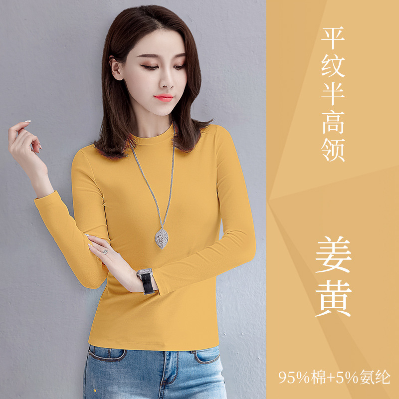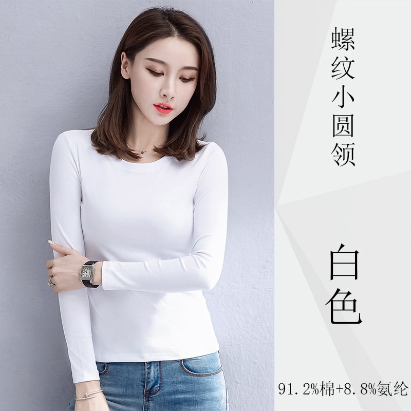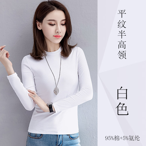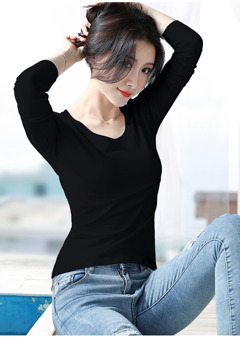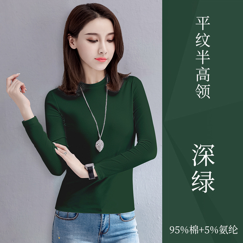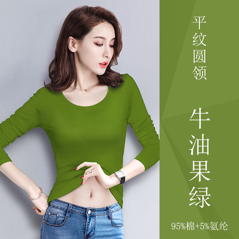 검은 색 면 긴 소매 티셔츠베이스 셔츠 여성용 내부 낮은 둥근 목 슬림 플러스 사이즈 봄과 가을 탄성 티셔츠