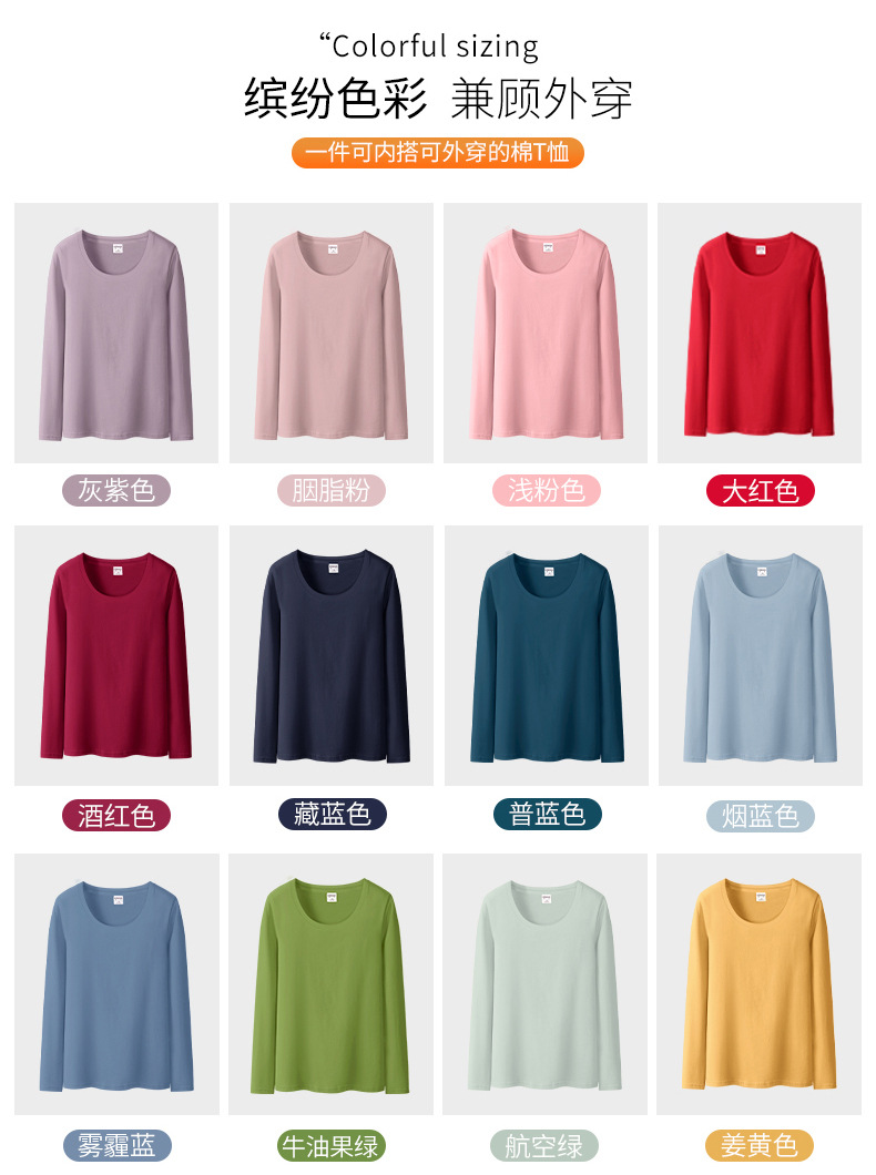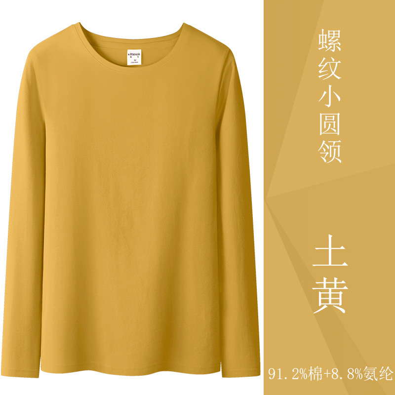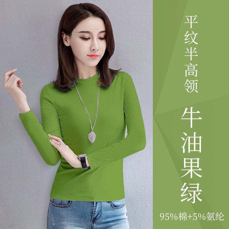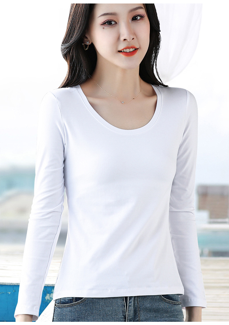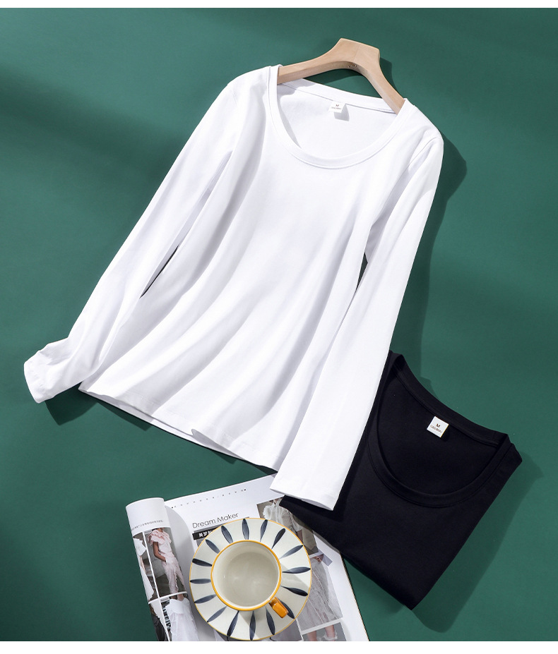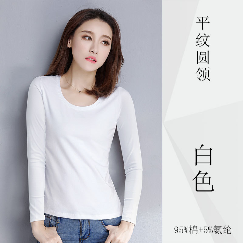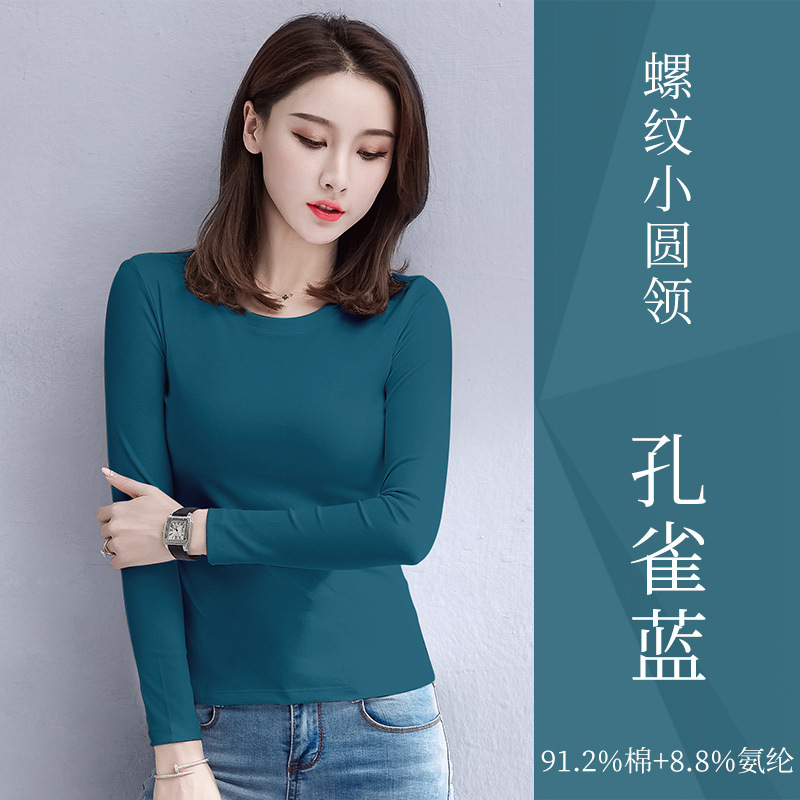 검은 색 면 긴 소매 티셔츠베이스 셔츠 여성용 내부 낮은 둥근 목 슬림 플러스 사이즈 봄과 가을 탄성 티셔츠