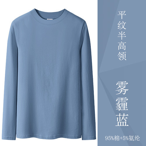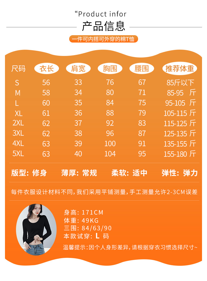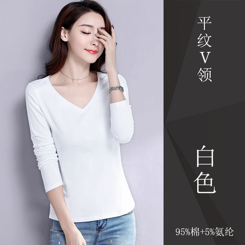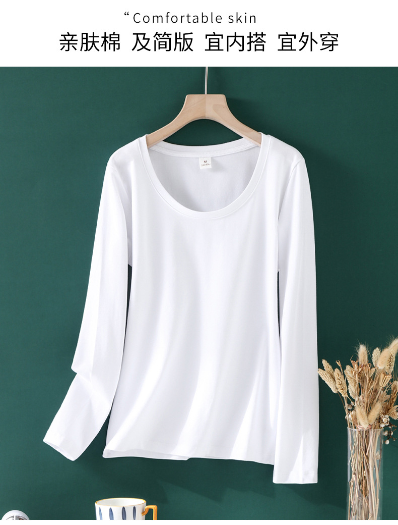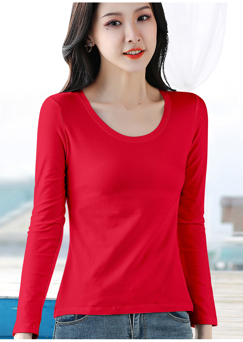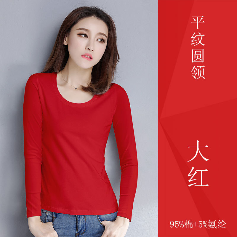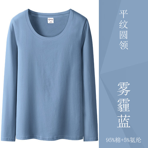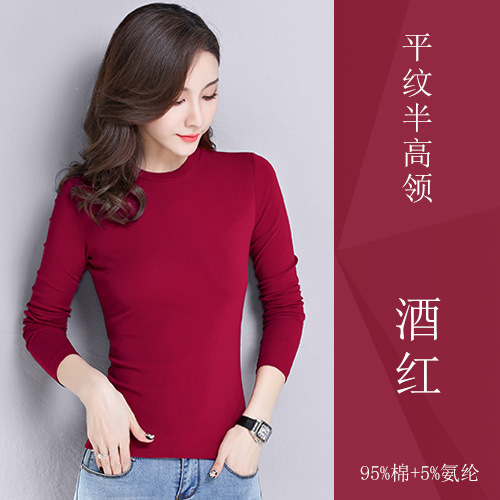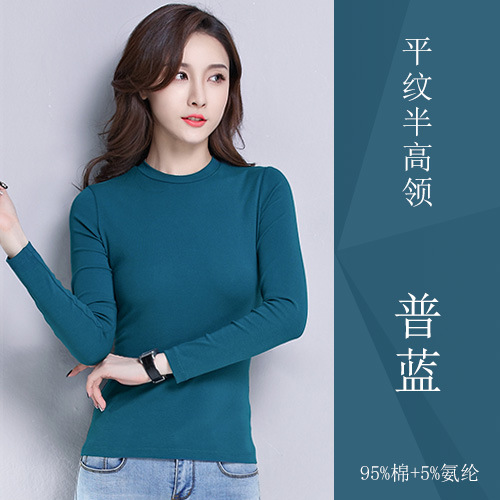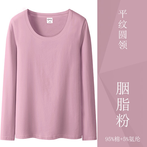 검은 색 면 긴 소매 티셔츠베이스 셔츠 여성용 내부 낮은 둥근 목 슬림 플러스 사이즈 봄과 가을 탄성 티셔츠