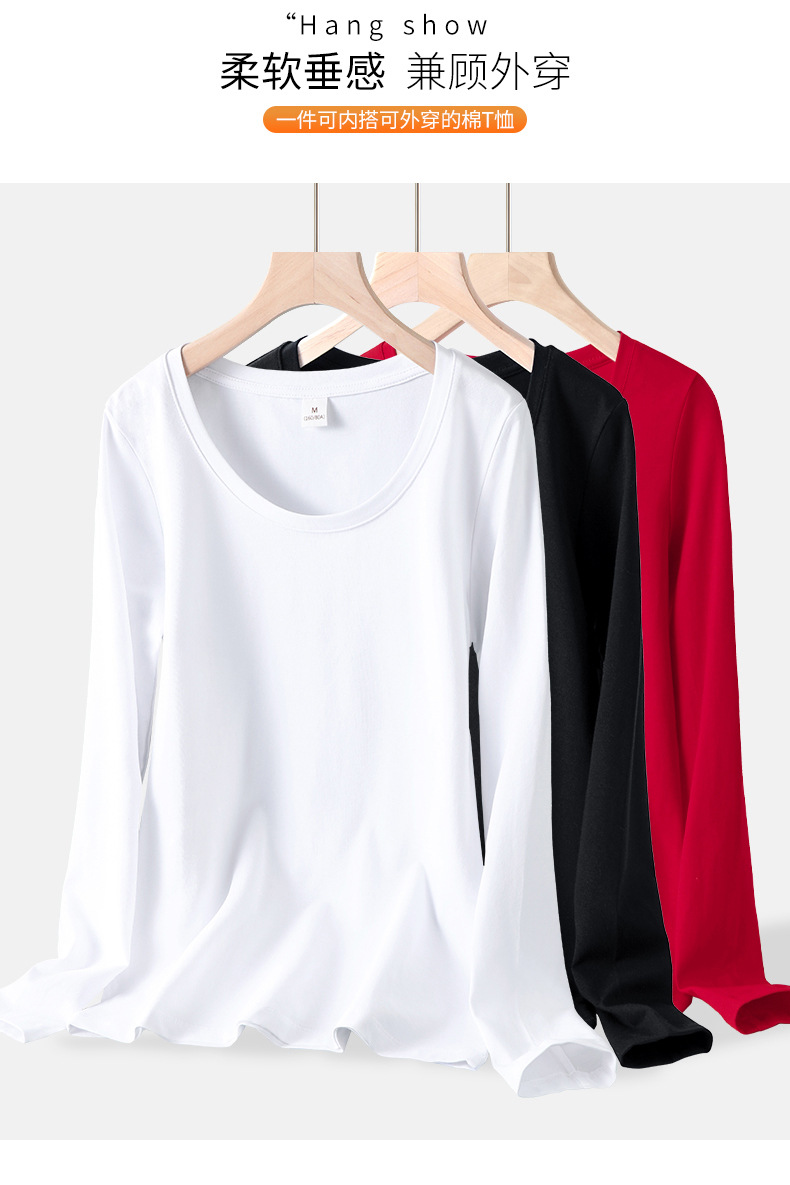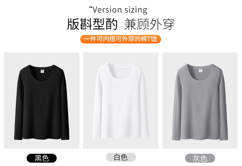 검은 색 면 긴 소매 티셔츠베이스 셔츠 여성용 내부 낮은 둥근 목 슬림 플러스 사이즈 봄과 가을 탄성 티셔츠스토어 가기