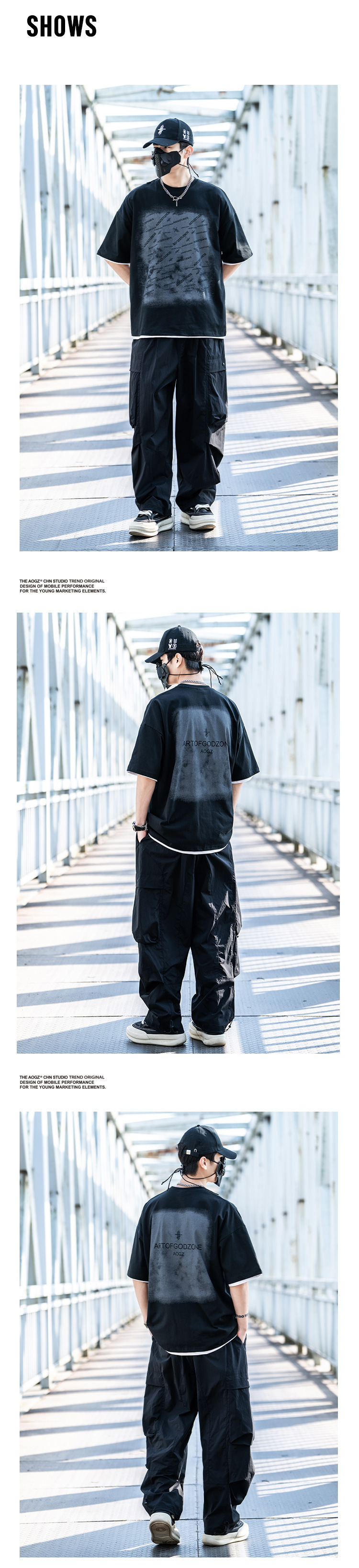 AOGZ 전국 패션 브랜드 점진적 변경 편지 인쇄 티셔츠 남성과 여성의 여름 무거운 무게 내베이스 연인 태양 보호 짧은 소매