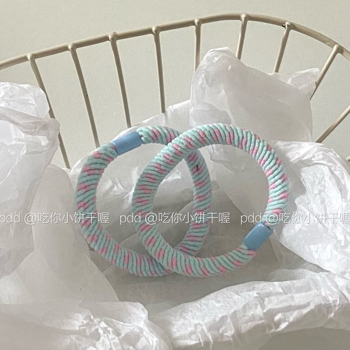 트위스트 소녀의 심장 ~ 도파민 봄 제한 색상 일본과 한국 신선하고 튼튼한 머리 밧줄 대비 색상 고무 텐든 머리 넥타이