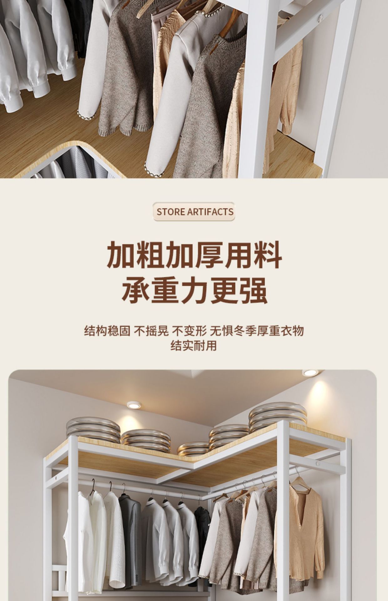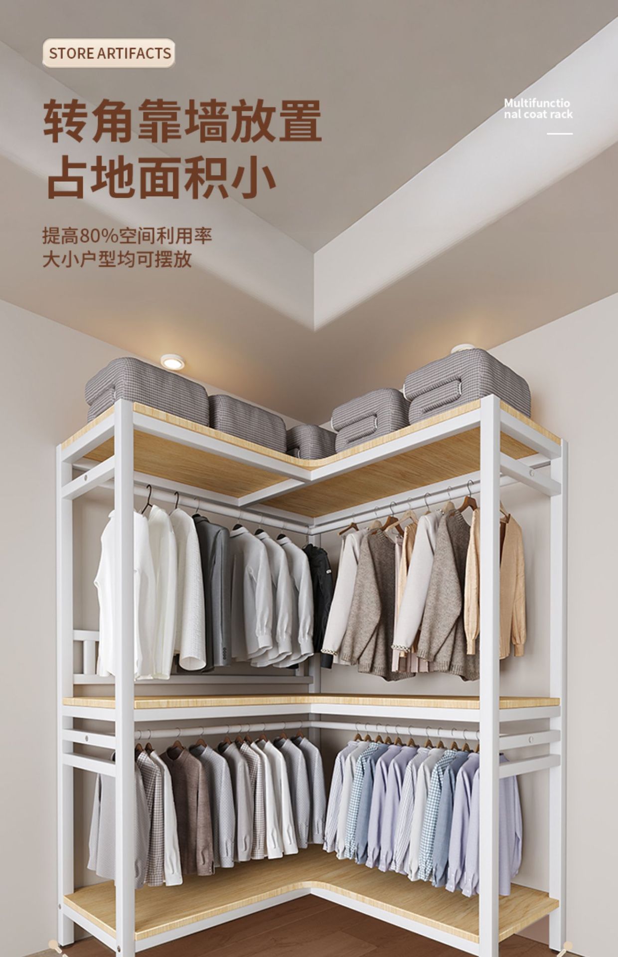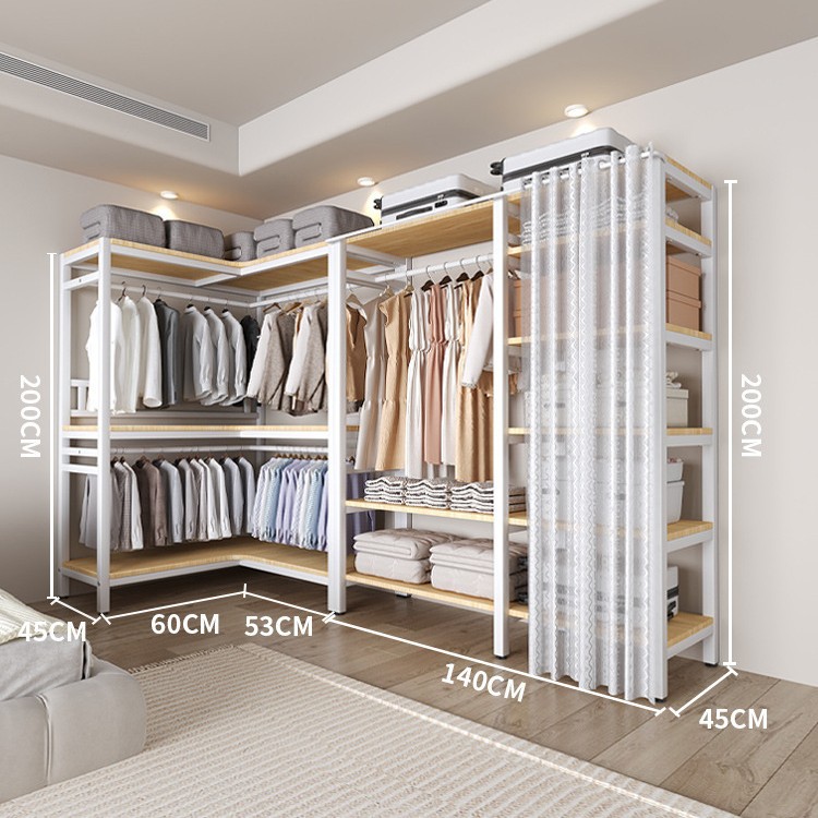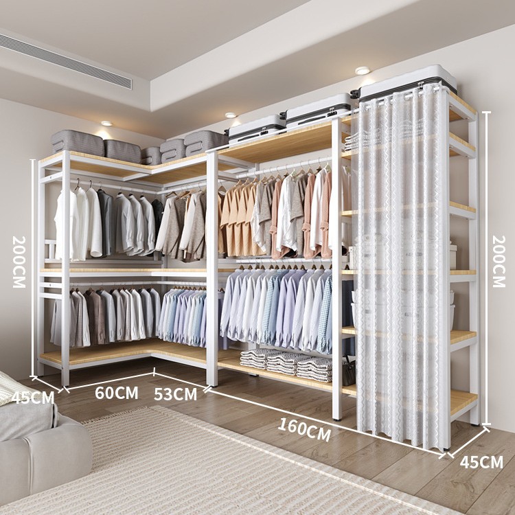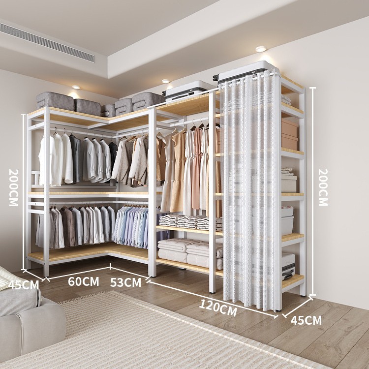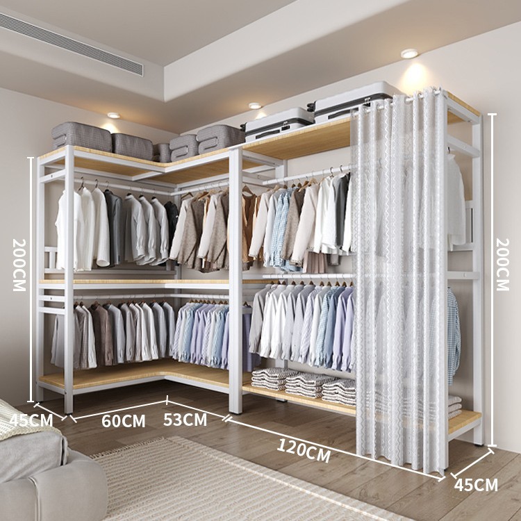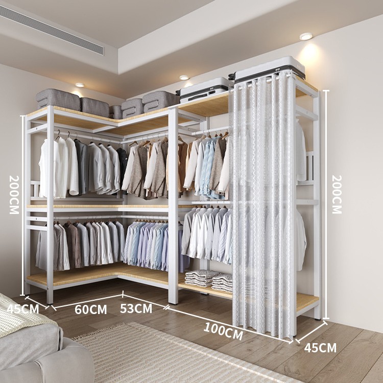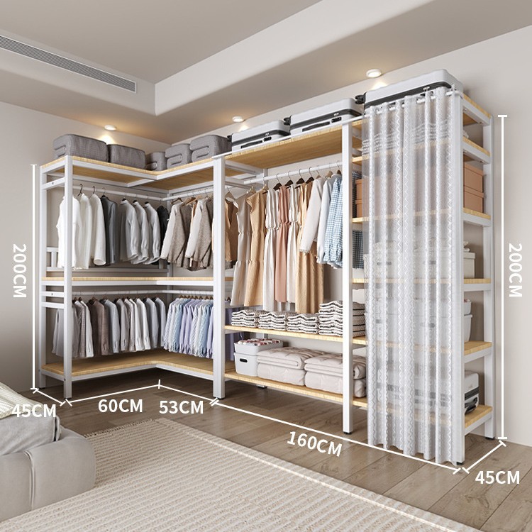 코너 옷장 가정용 침실 간단한 옷장 강력하고 튼튼한 코너 오픈 옷장 모든 스틸 프레임 조합 옷장스토어 가기