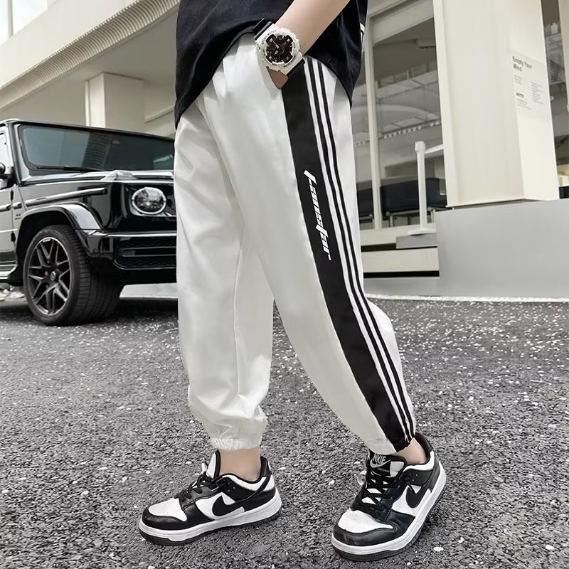 남학생 바지 여름 얇은 2023 새로운 어린이 얼음 실크 빠른 건조 안티 모기 여름 큰 어린이 작업복 스포츠 여름 착용