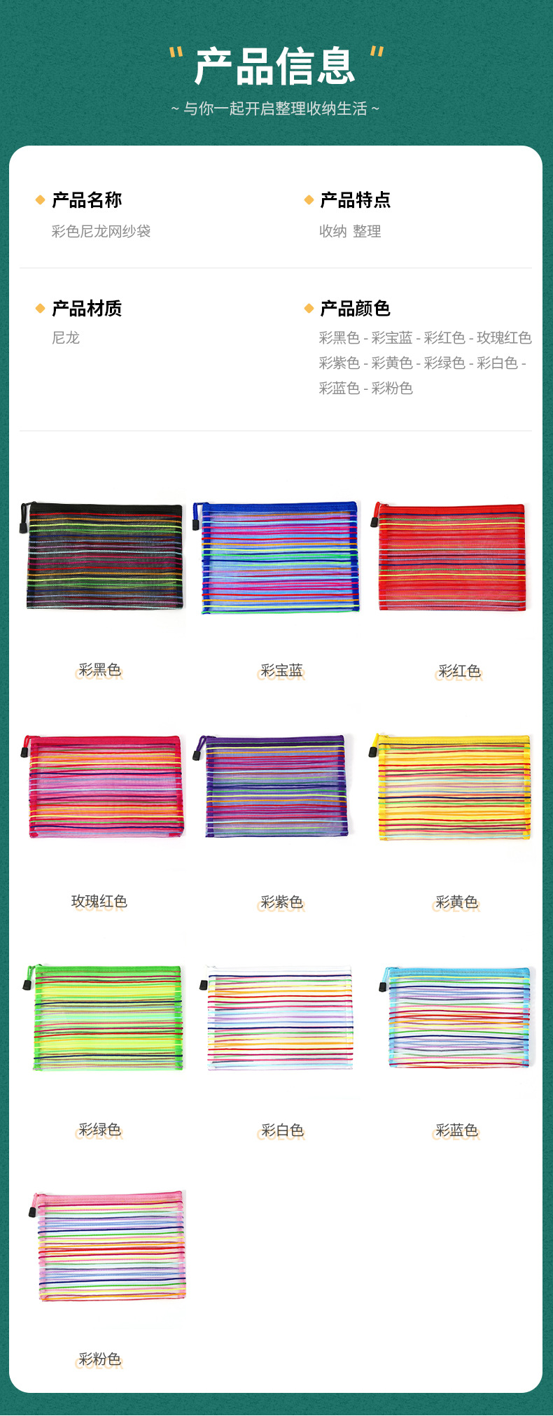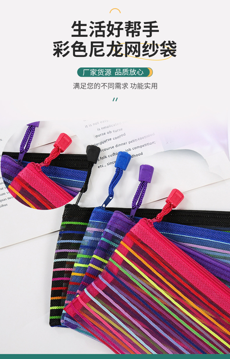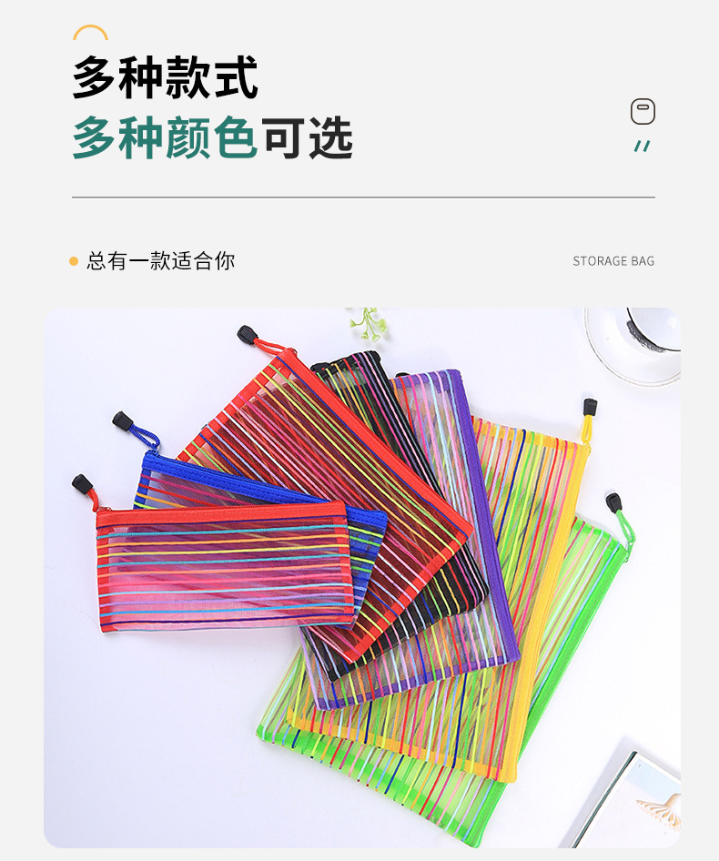 새로운 컬러 투명 23 실크 두꺼운 메쉬 가방 문구 가방 지퍼 파일 가방 사무실 빌 저장 가방