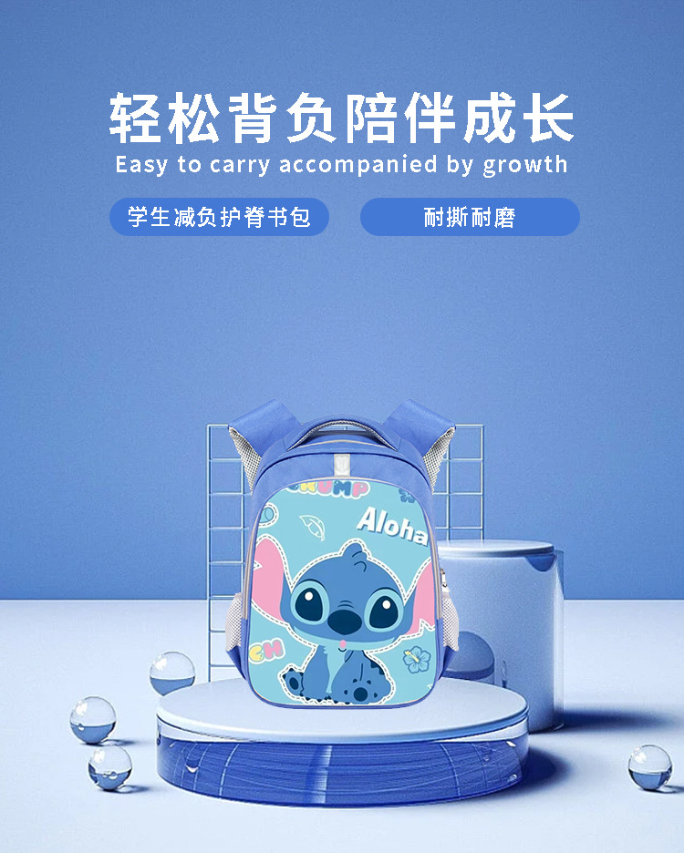 史迪仔学生书包可爱卡通大容量休闲双肩包涤纶高级感背包一件起批
