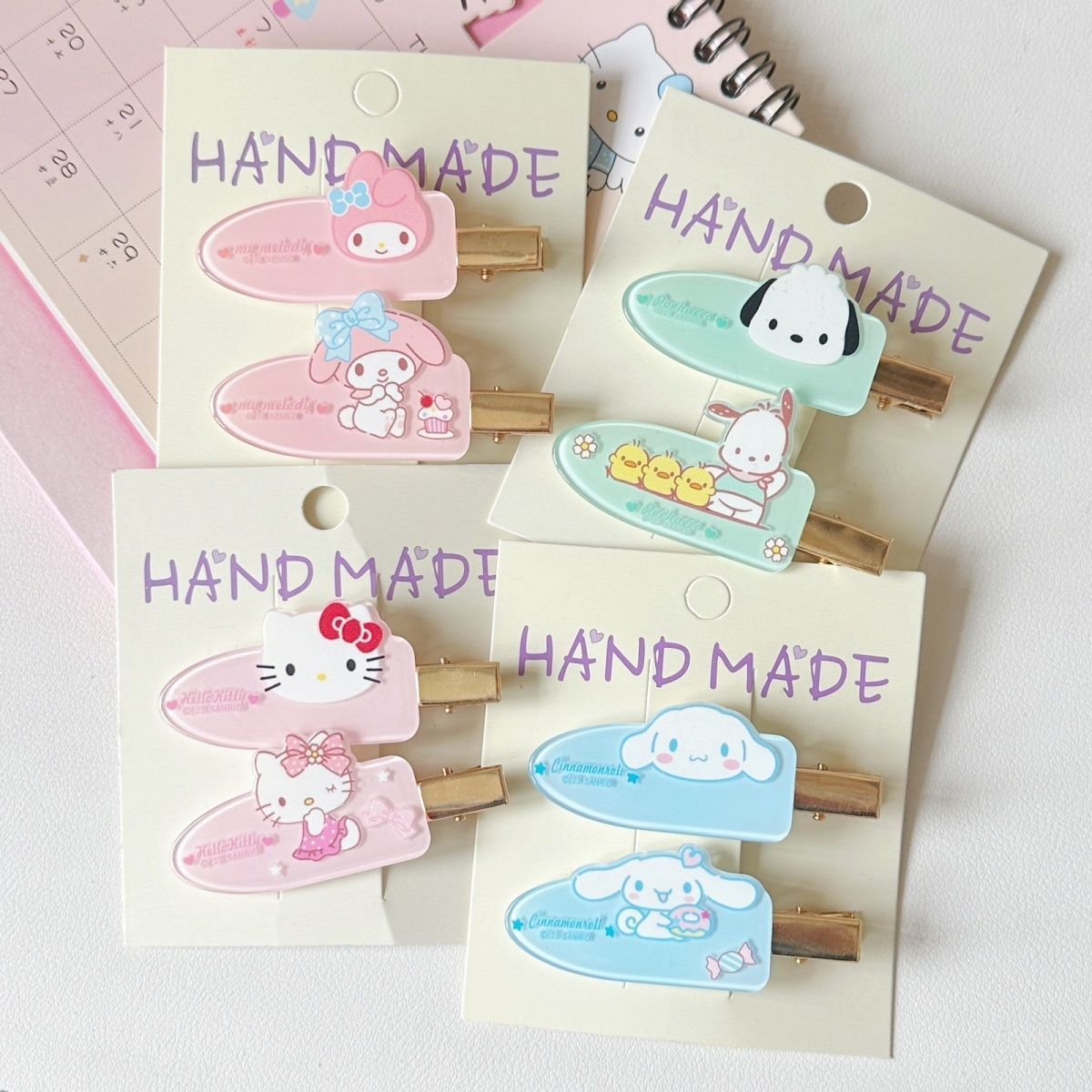 산리오 원활한 클립 헤어핀 귀여운 달콤한 소녀 하트 만화 뱅 사이드 클립 헤드웨어 카드 어린이 덕빌 클립스토어 가기