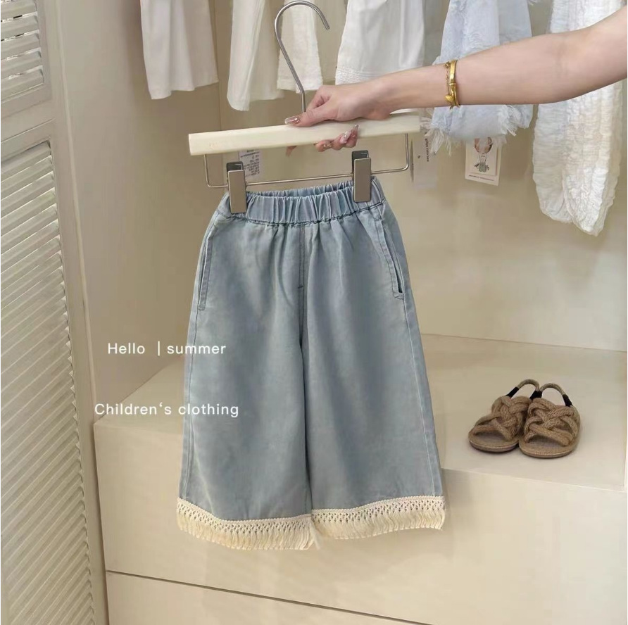 여자 여름 세트 한국 스타일 2024 여름 새로운 어린이 서양식 조끼 데님 넓은 다리 바지 투피스 세트 유행스토어 가기