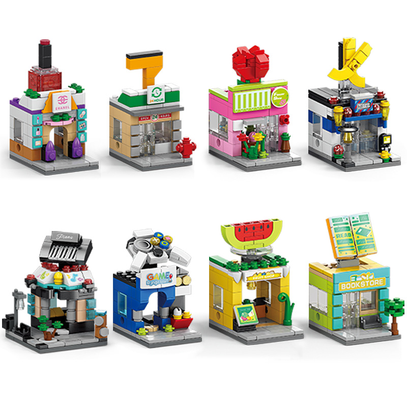 작은 입자 변수 거리보기 레고 조립 된 도시 건물 모델 어린이 장난감 도매와 호환되는 건물 블록 조립스토어 가기