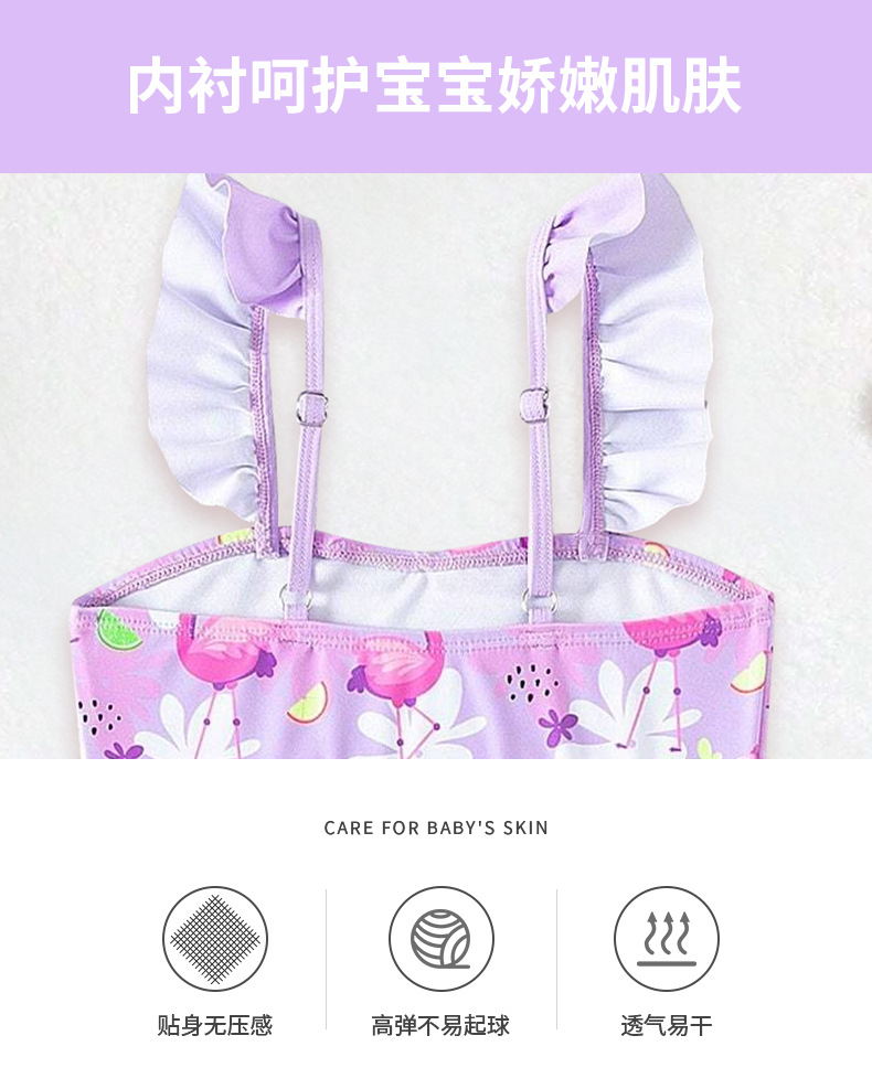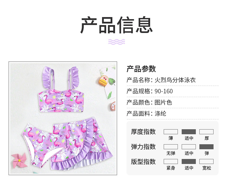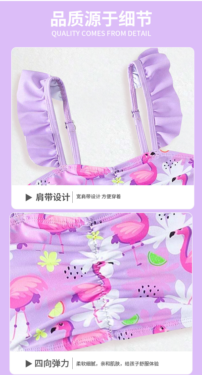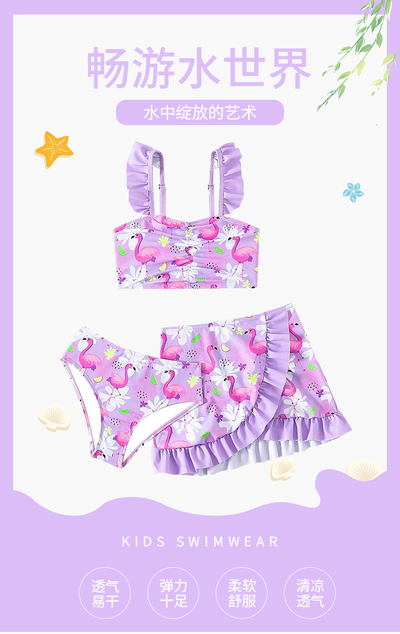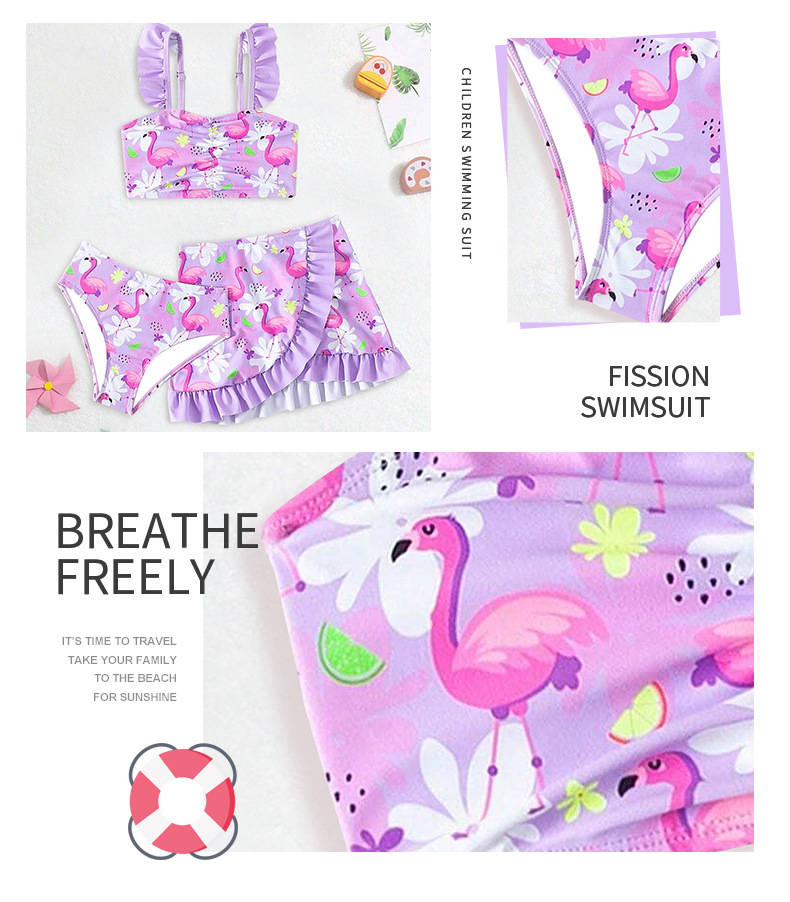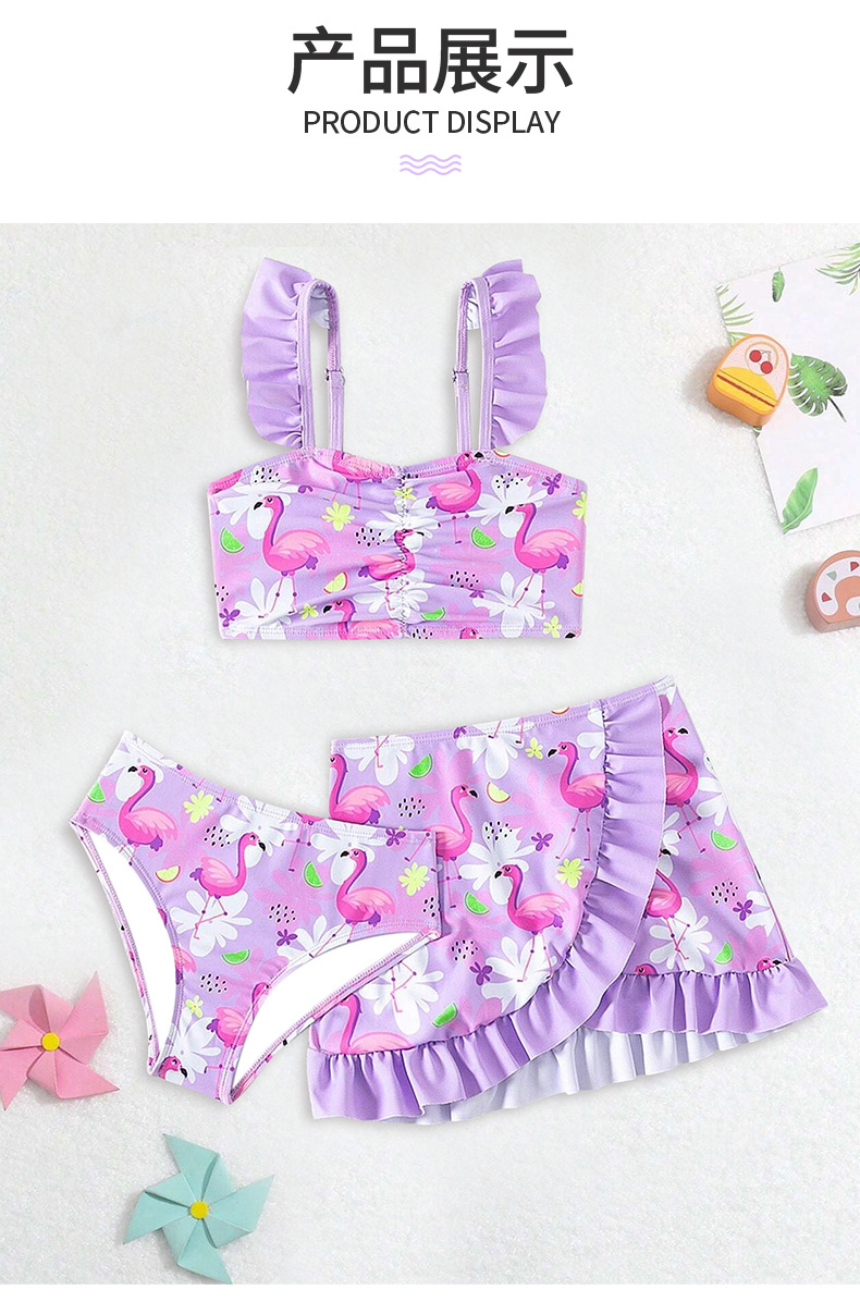 2025년 신상 아동 수영복 3피스 세트 여아 분리형 수영복 중소 아동용 크로스보더 퍼플 수영복 수출용스토어 가기